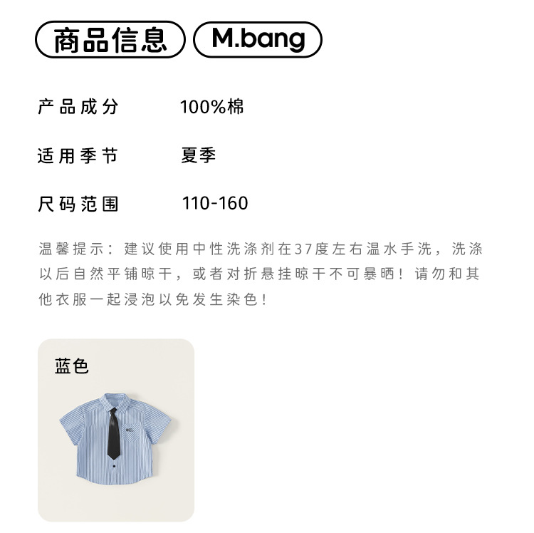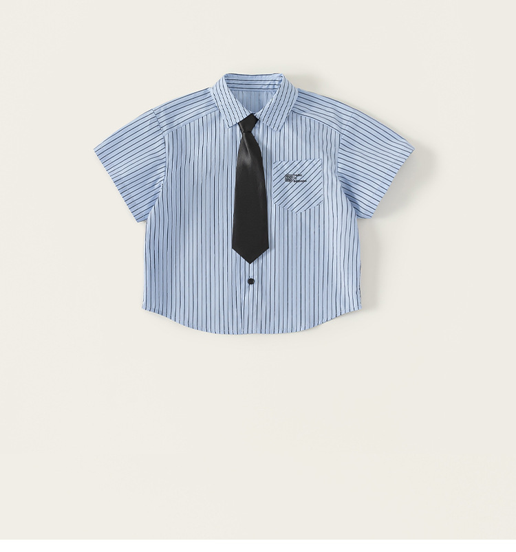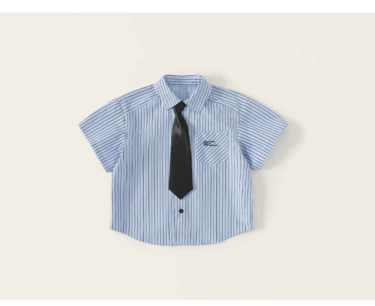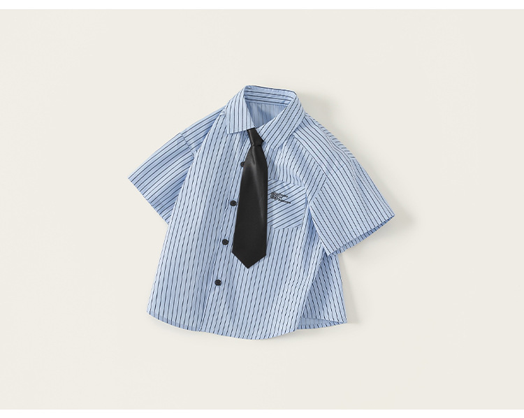 Youbao ropa para niños camisa para niños verano nuevo estilo universitario niño grande simple casual rayas corbata niños manga corta
