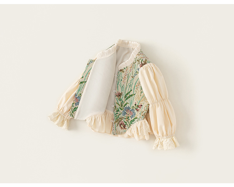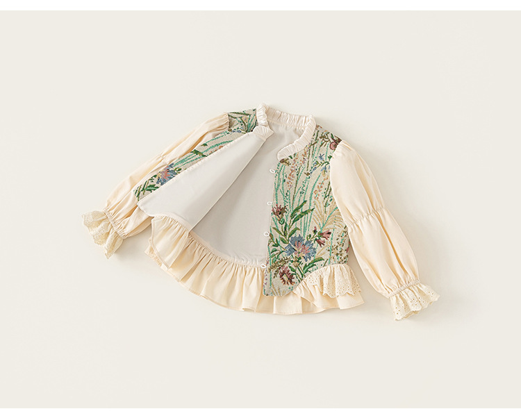 Youbao ropa de otoño para niños niñas bordadas retro falsas dos camisas de manga larga de niñas estilo nacional ropa china para niños