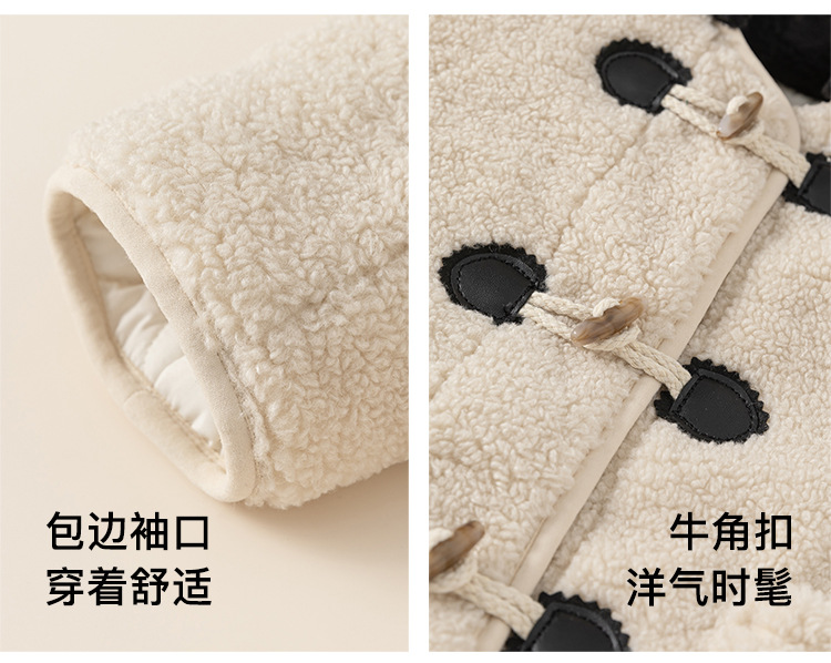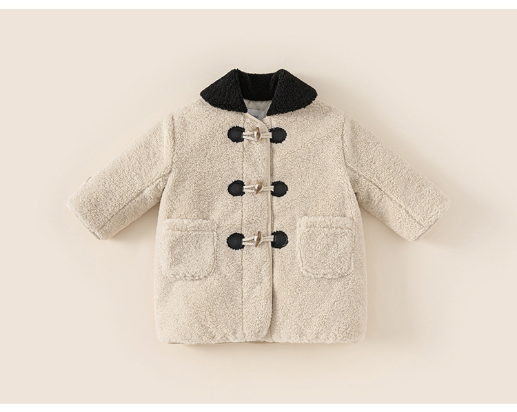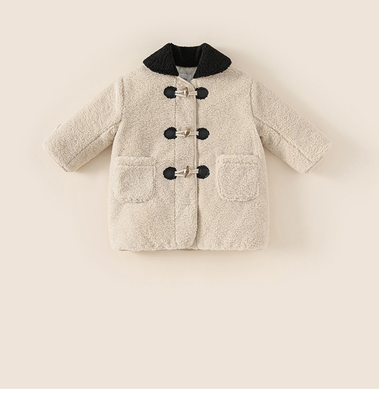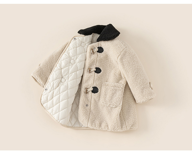 Youbao ropa para niños abrigo de solapa para niñas invierno nuevo estilo niños botones de cuerno niñas abrigo de lana de longitud media engrosado