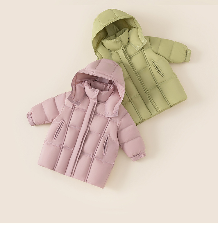 Yubao ropa infantil 2024 nuevo niño chaqueta de pluma larga ropa de invierno de niñas con capuzas tres chaqueta de pluma blanca