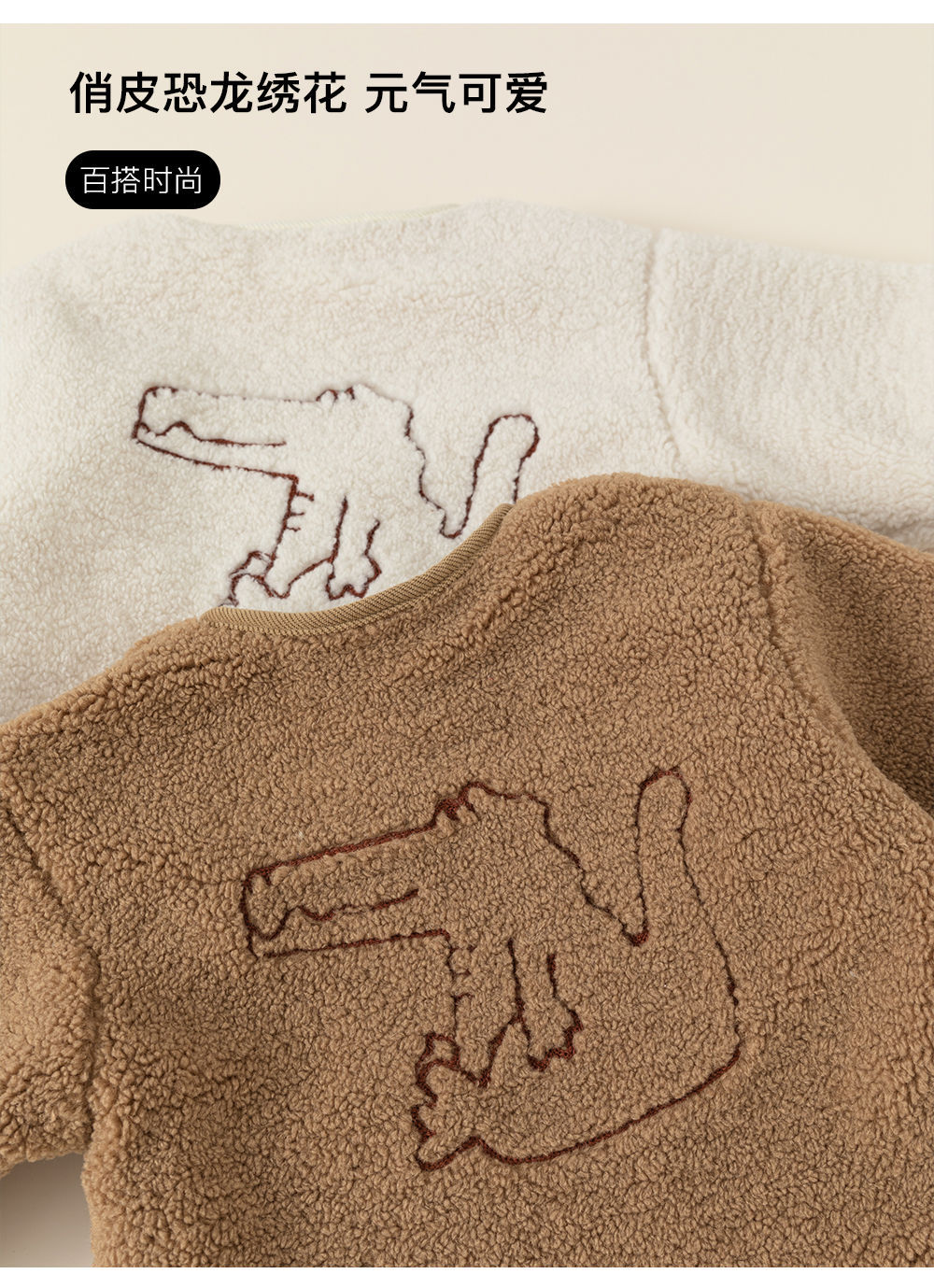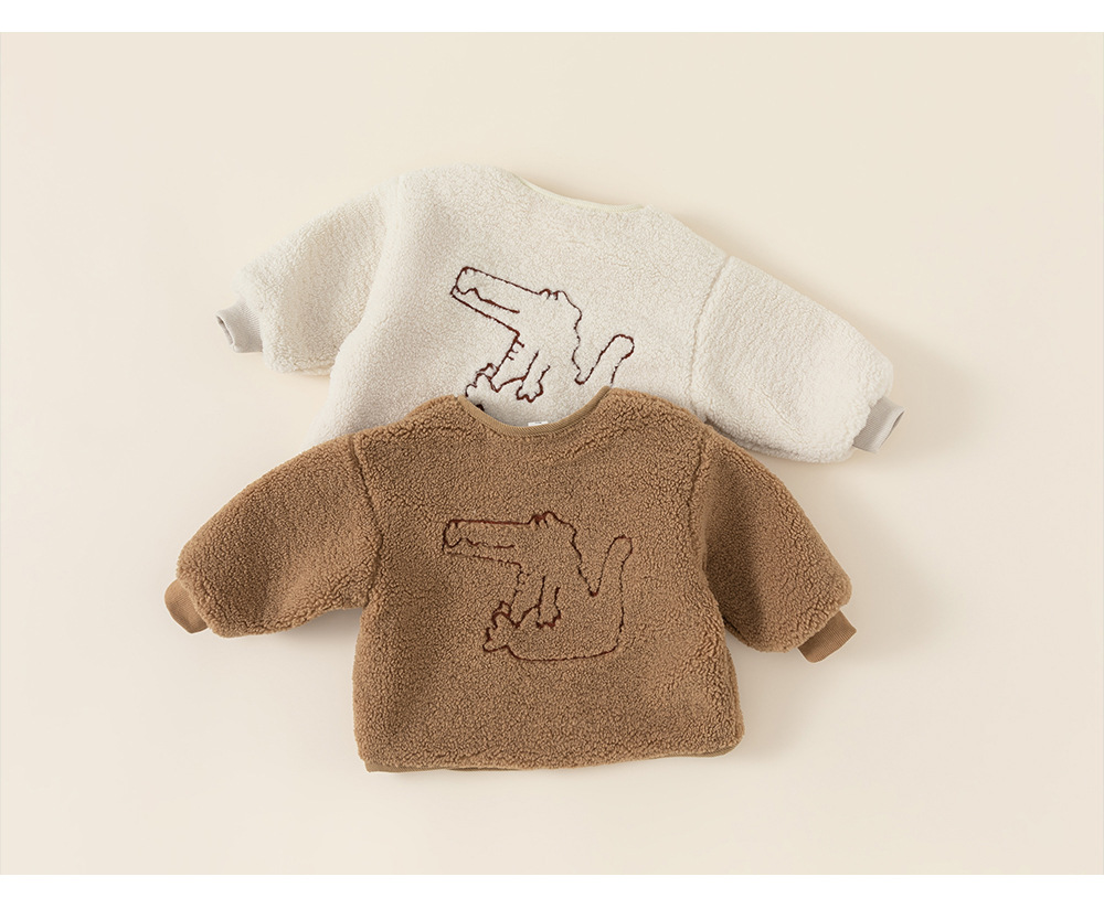 Ropa Infantil Youbao, Chaqueta Infantil con Forro Polar, Top Peludo con Bordado de Dinosaurio en la Espalda para Niños Pequeños, Ropa de Invierno para Niños DY83024