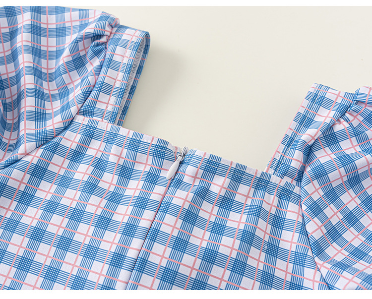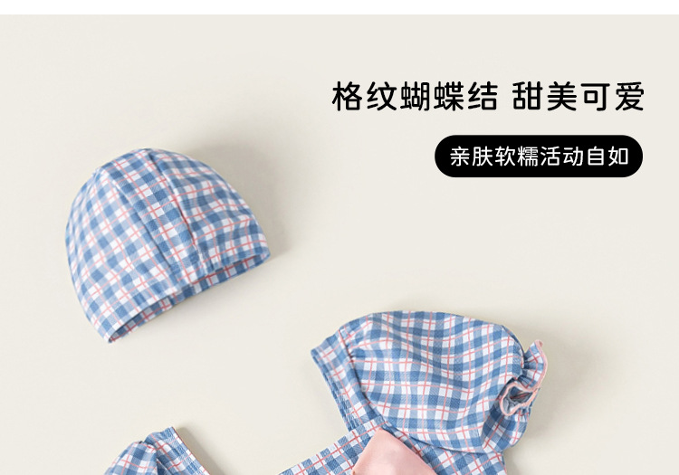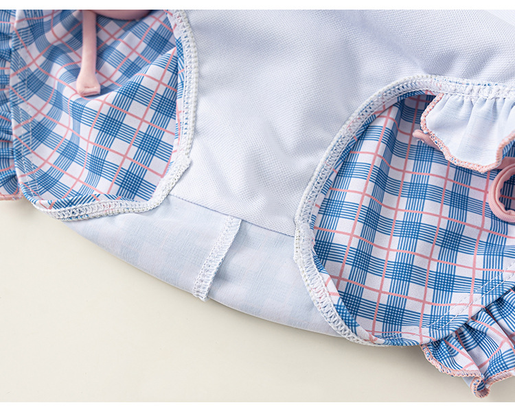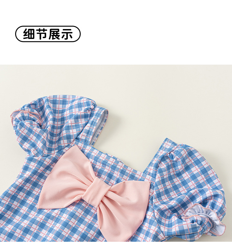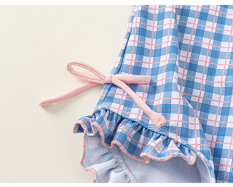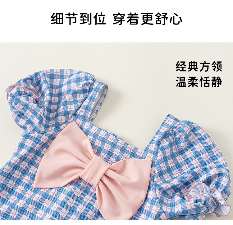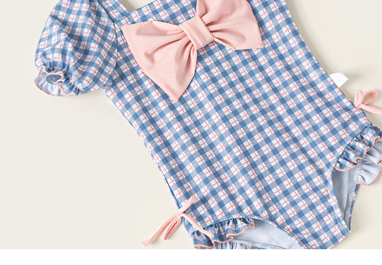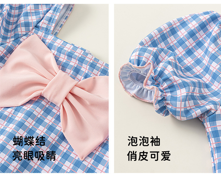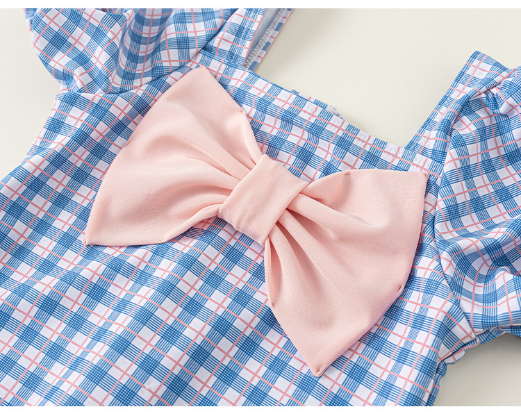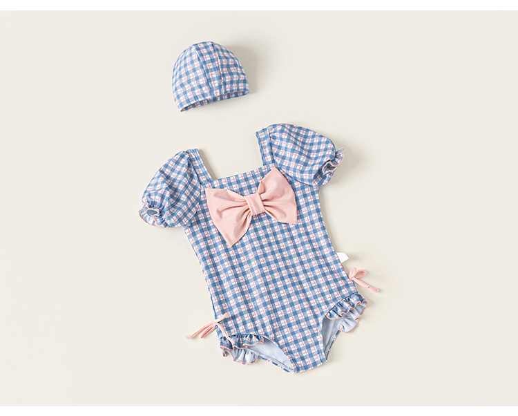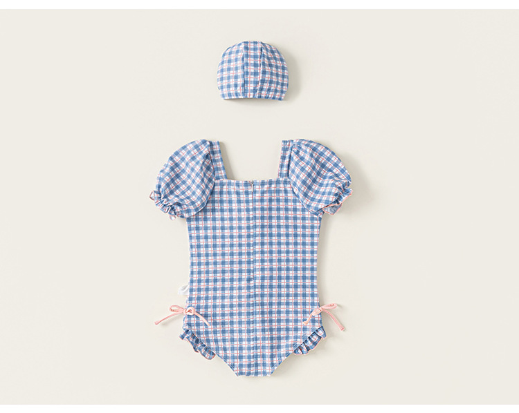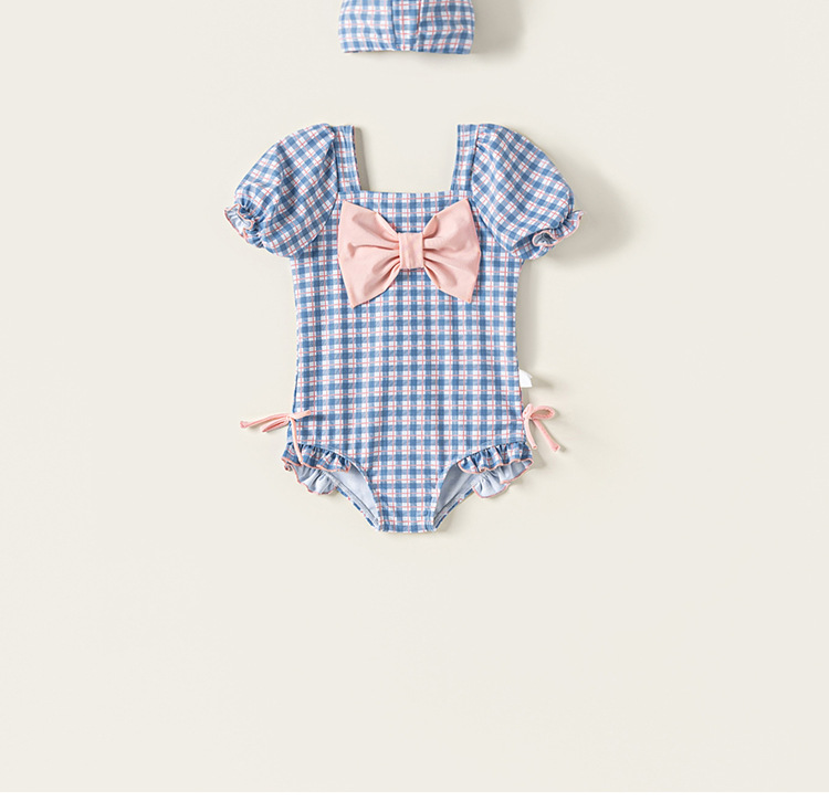 Youbao ropa para niños niñas verano traje de baño de una pieza gorro de baño a cuadros para niños traje de baño de lazo a cuadros con manga abullonada coreana