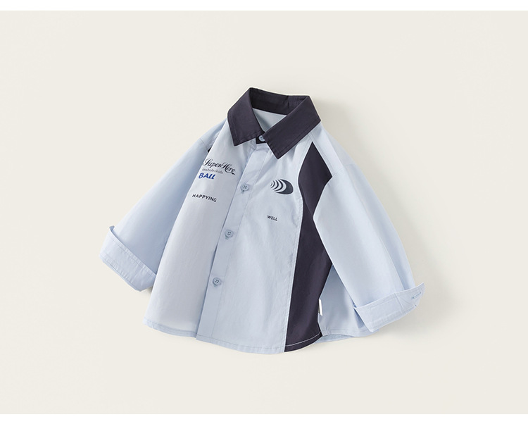 Youbao ropa infantil infantil letras simples con chaqueta de primavera camisa de collar camisa de mangas largas de color contraste para niños