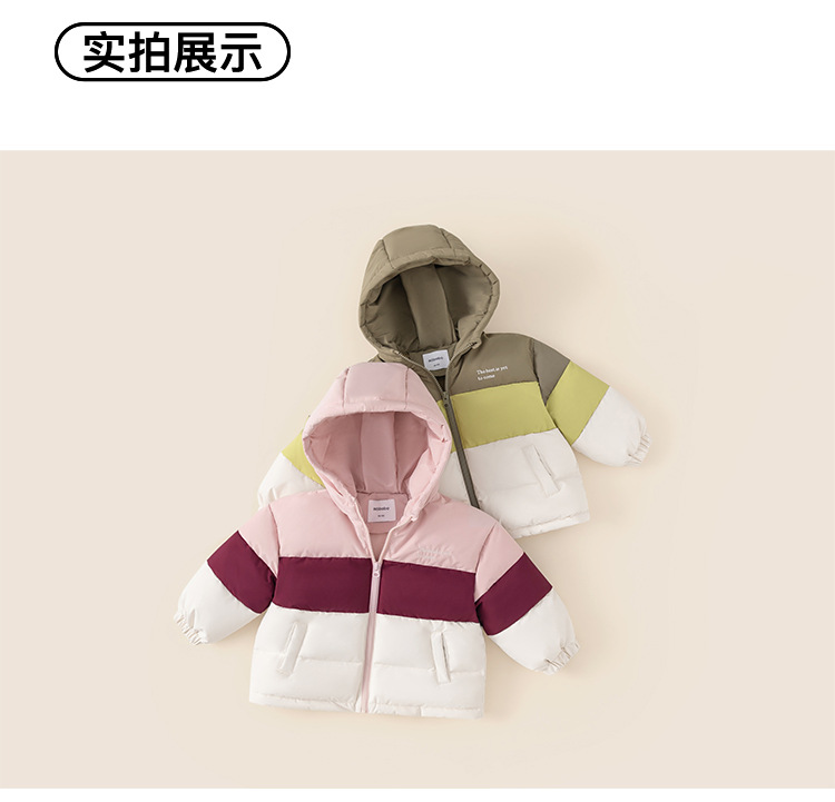 Yubao ropa infantil chaqueta de plumón para niños gruesa y suelta con capuchón blanco para niños de invierno chaqueta de plumón corta de colores