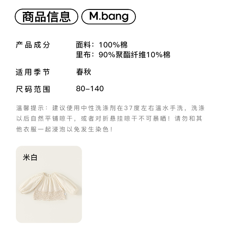 Bangchoan ropa para niños niñas camisas de otoño 2025 nuevo bebé femenino camisa de muñeca bordada hueca de manga larga para niños