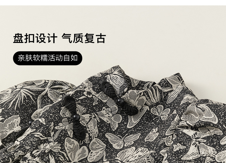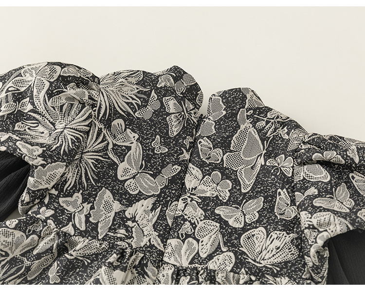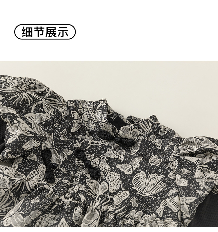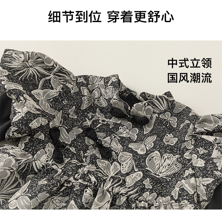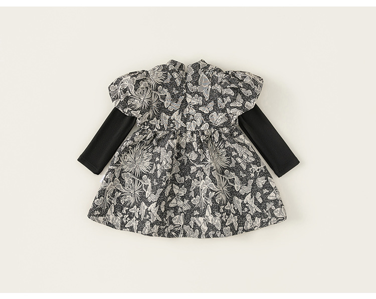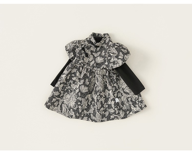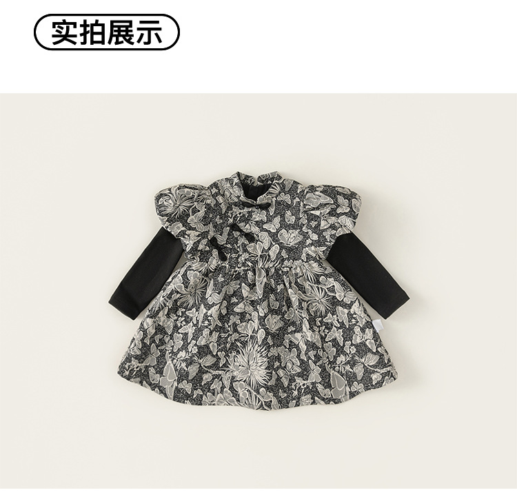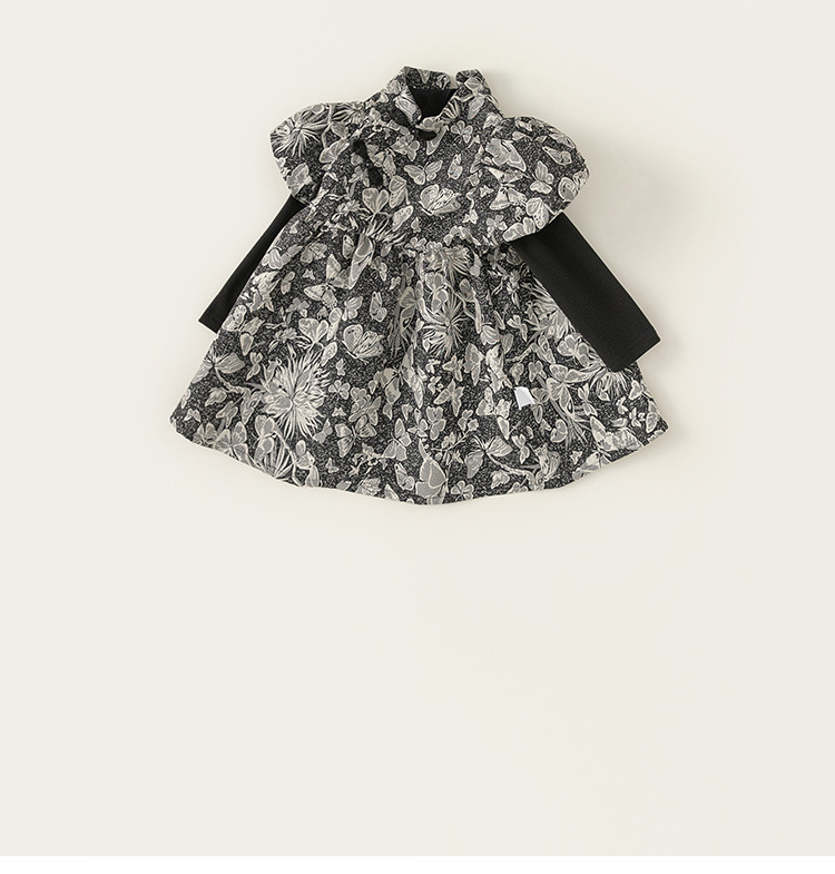Yubao ropa infantil de niñas vestidos de manga de burbuja falsos dos piezas de falda de flores de contraste de otoño de estilo chino falda de estilo nacional