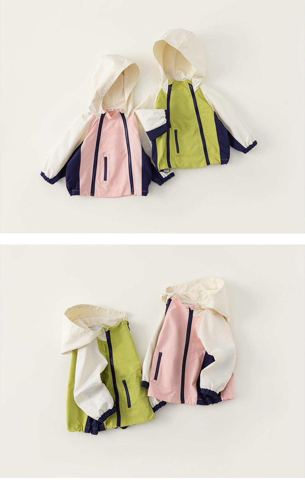 D procesamiento personalizado chaqueta de niño 2025 primavera y otoño casual chaqueta de contraste de color para niños con capuz cardigan a prueba de viento