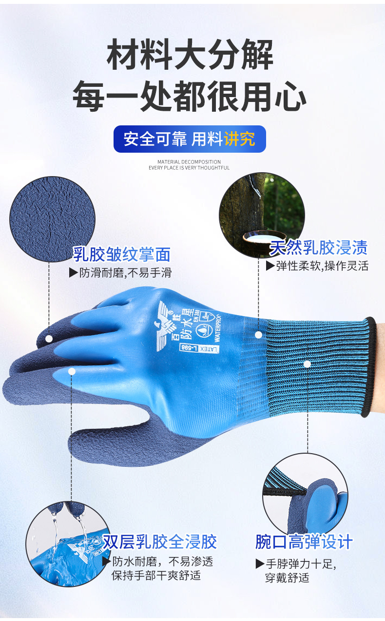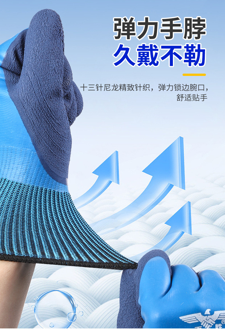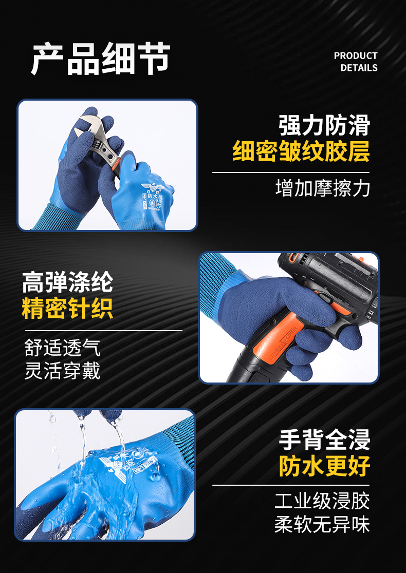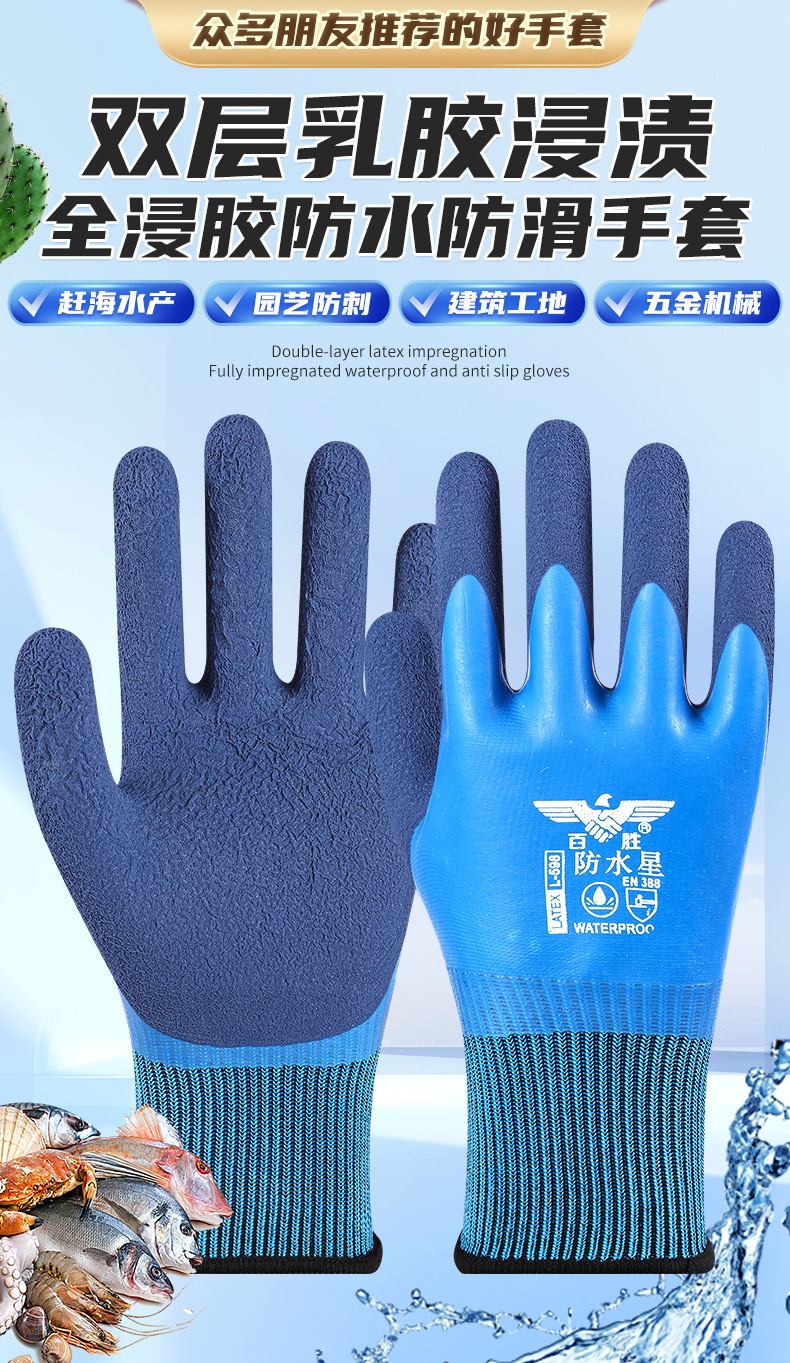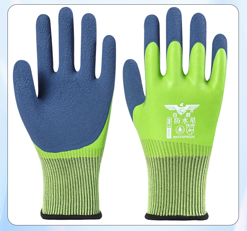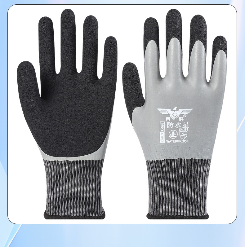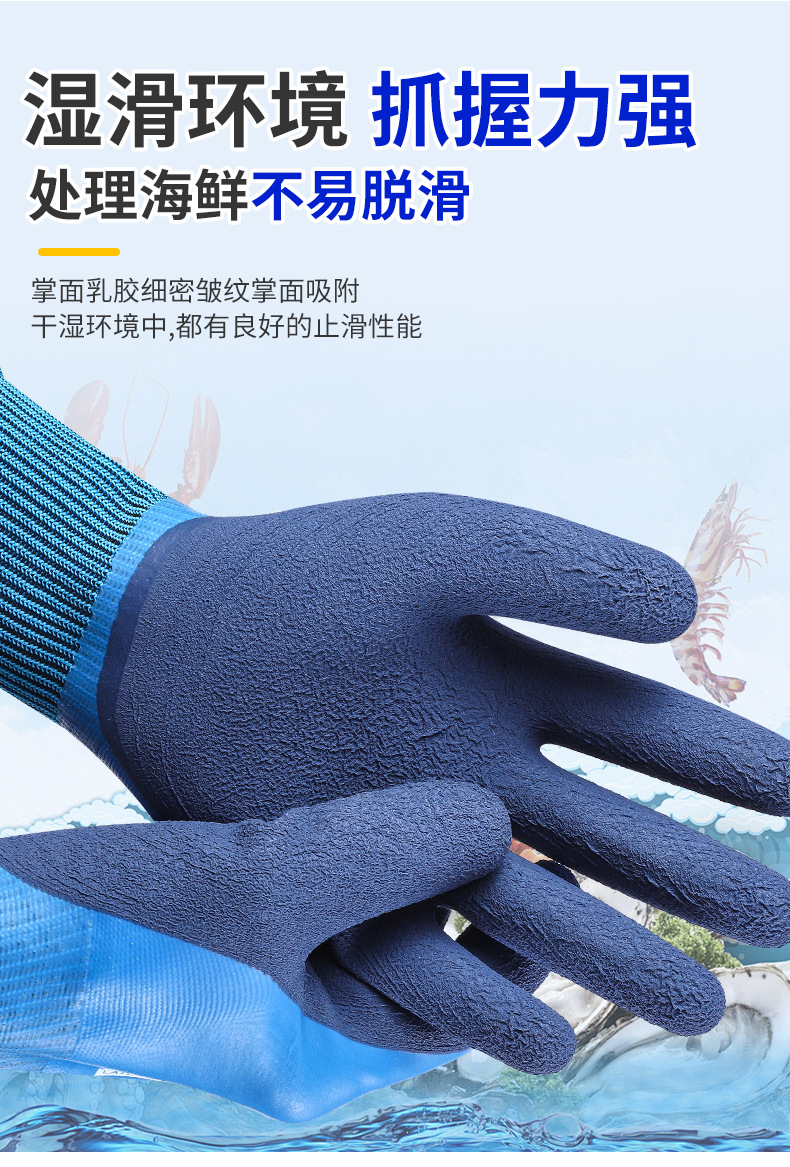 Guantes de protección laboral, trabajo en el sitio de construcción, guantes impermeables resistentes al desgaste, guantes gruesos y duraderos de goma de látex para matar peces