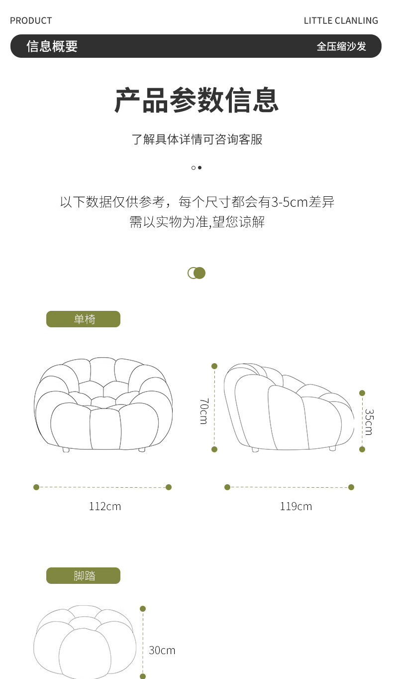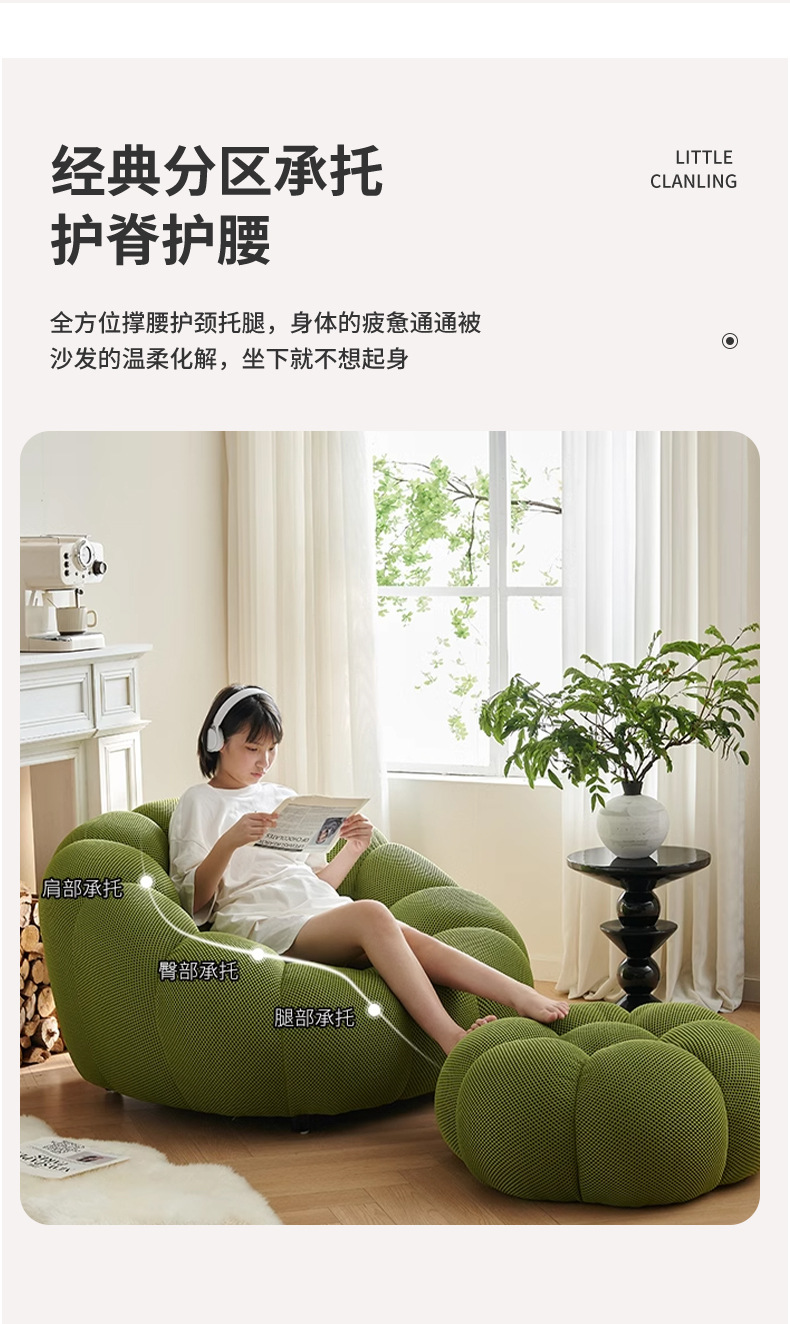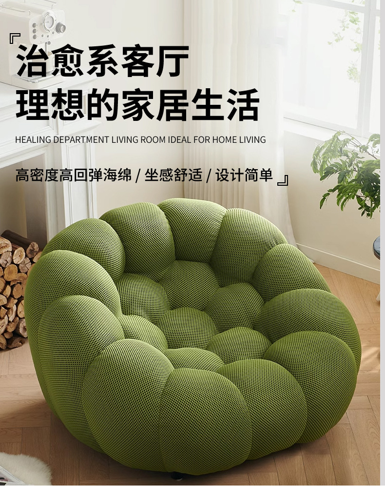 Sofá de compresión al vacío suave Sofá de calabaza de apartamento pequeño francés Sofá perezoso de tela simple y moderno para una sola persona