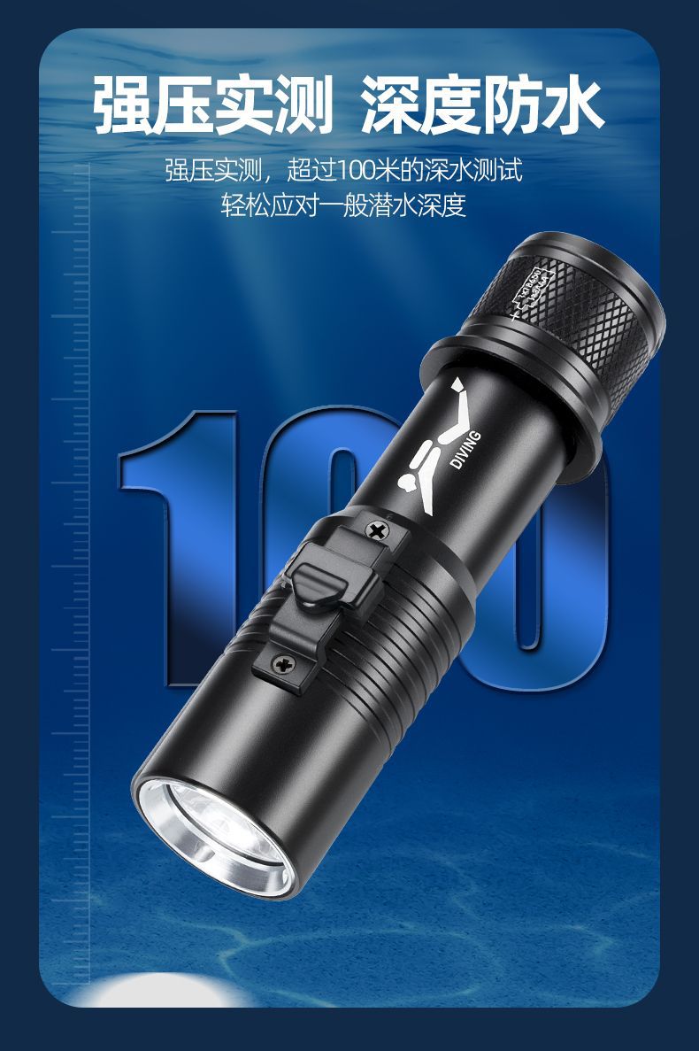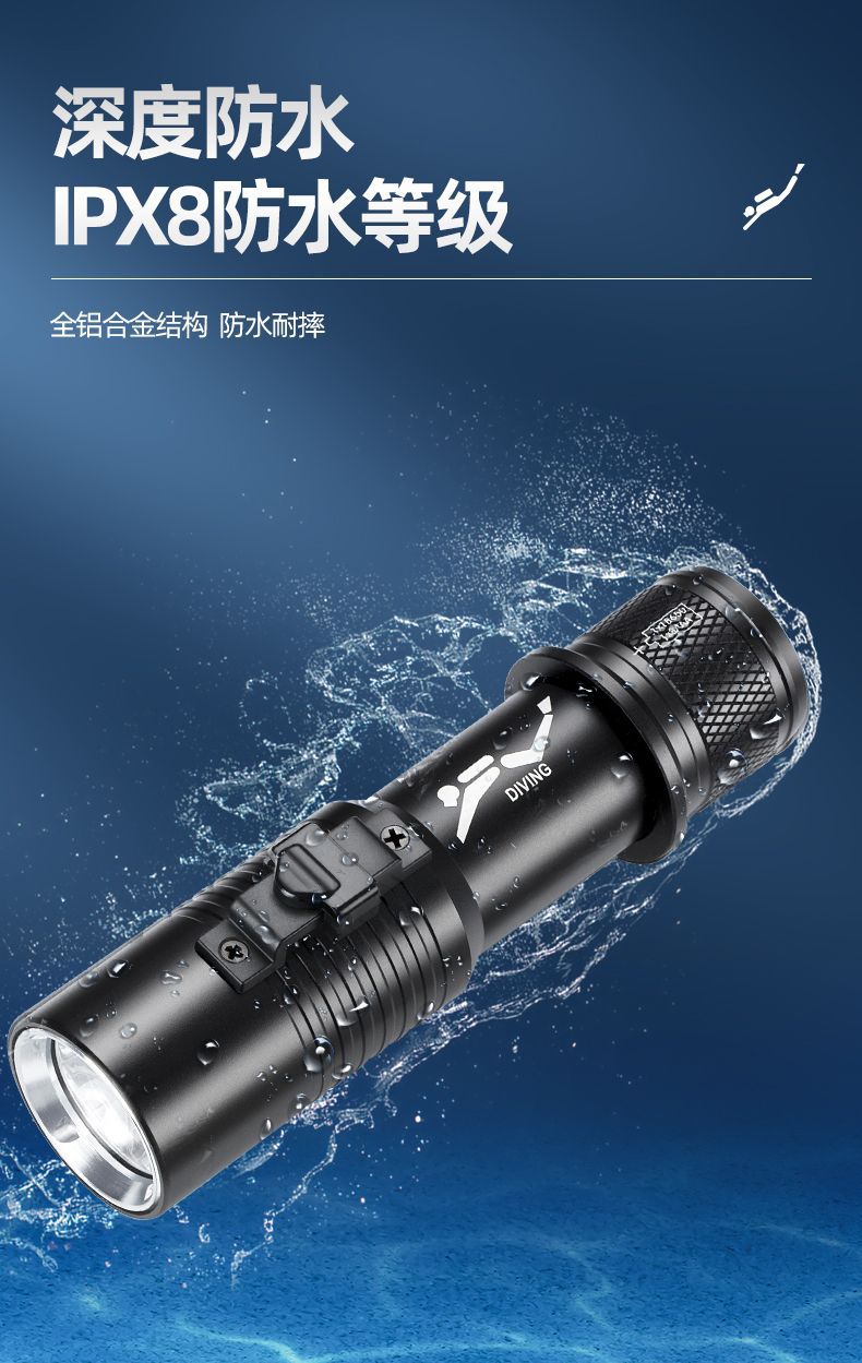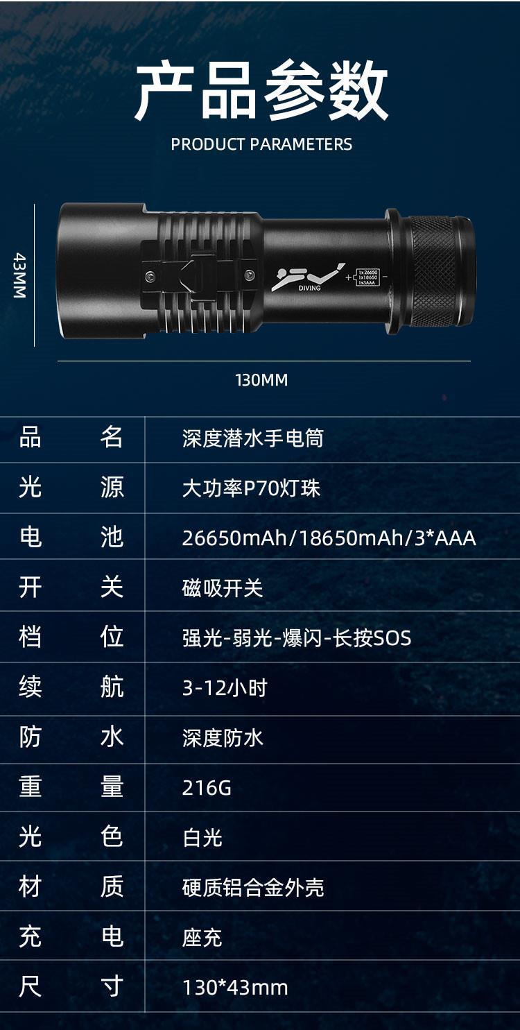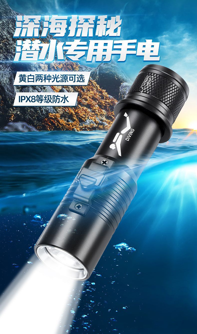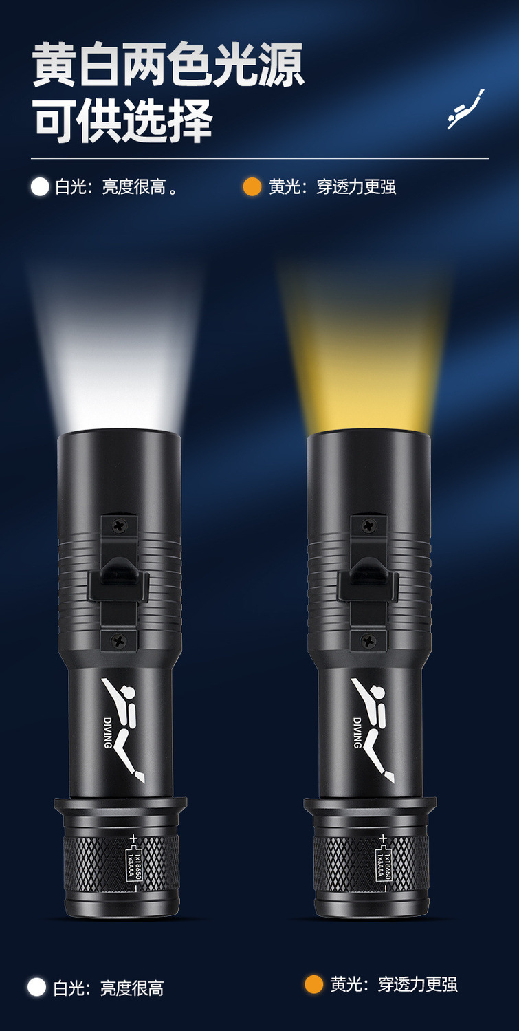 P70 linterna de buceo de cuatro núcleos luz blanca luz amarilla doble fuente de luz alta luz al aire libre superbrillante carga 26650 bajo el agua