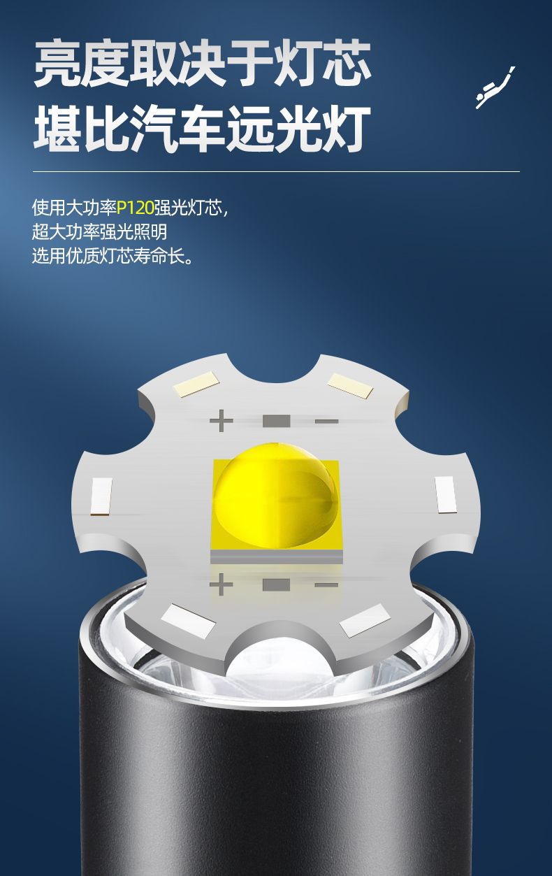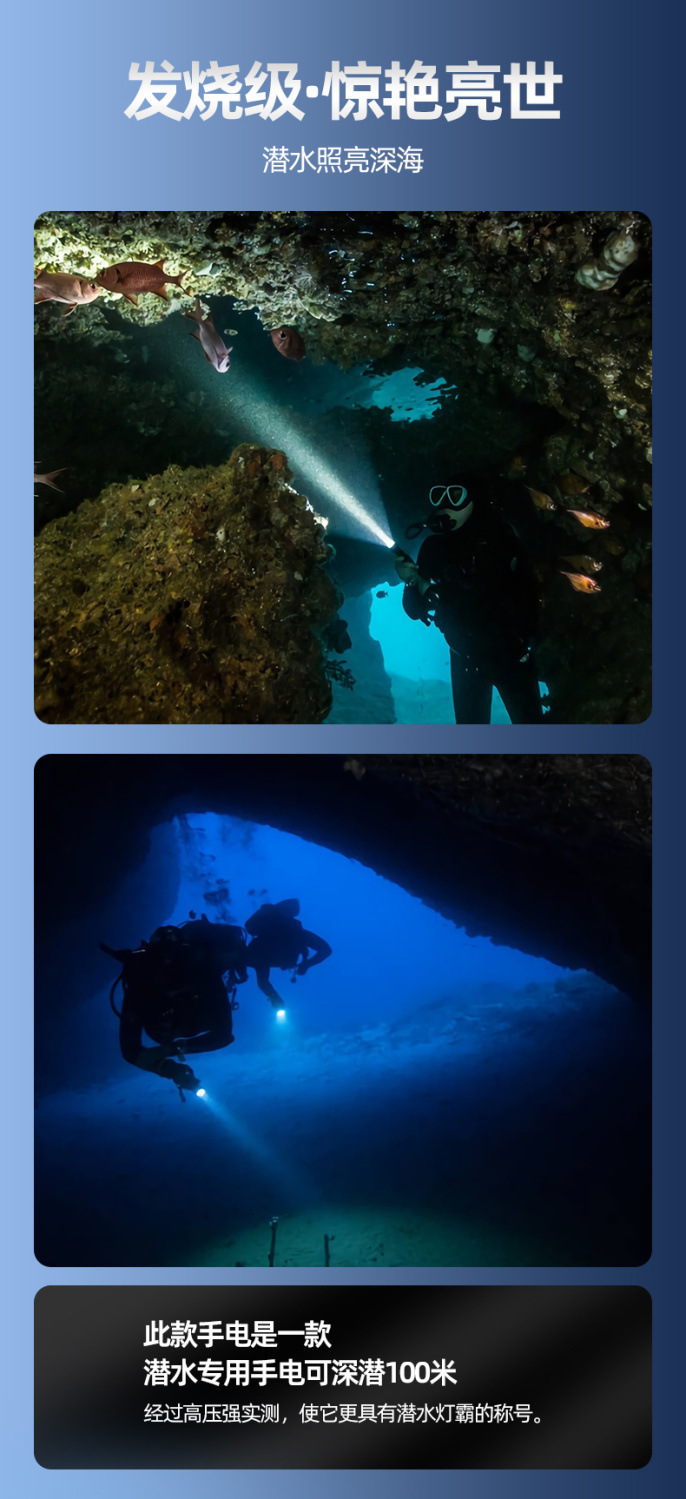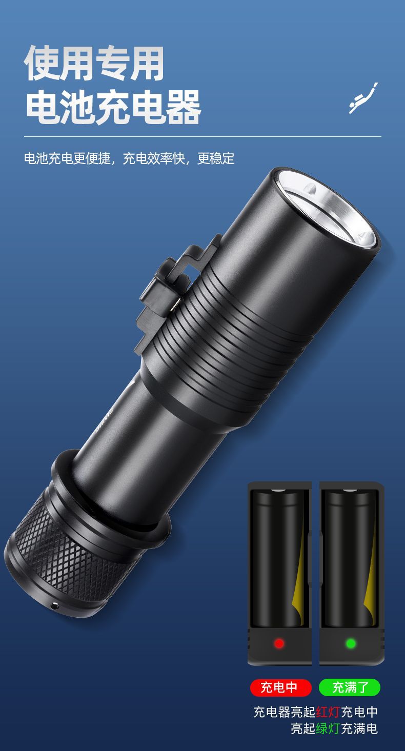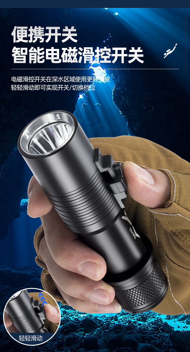 P70 linterna de buceo de cuatro núcleos luz blanca luz amarilla doble fuente de luz alta luz al aire libre superbrillante carga 26650 bajo el agua