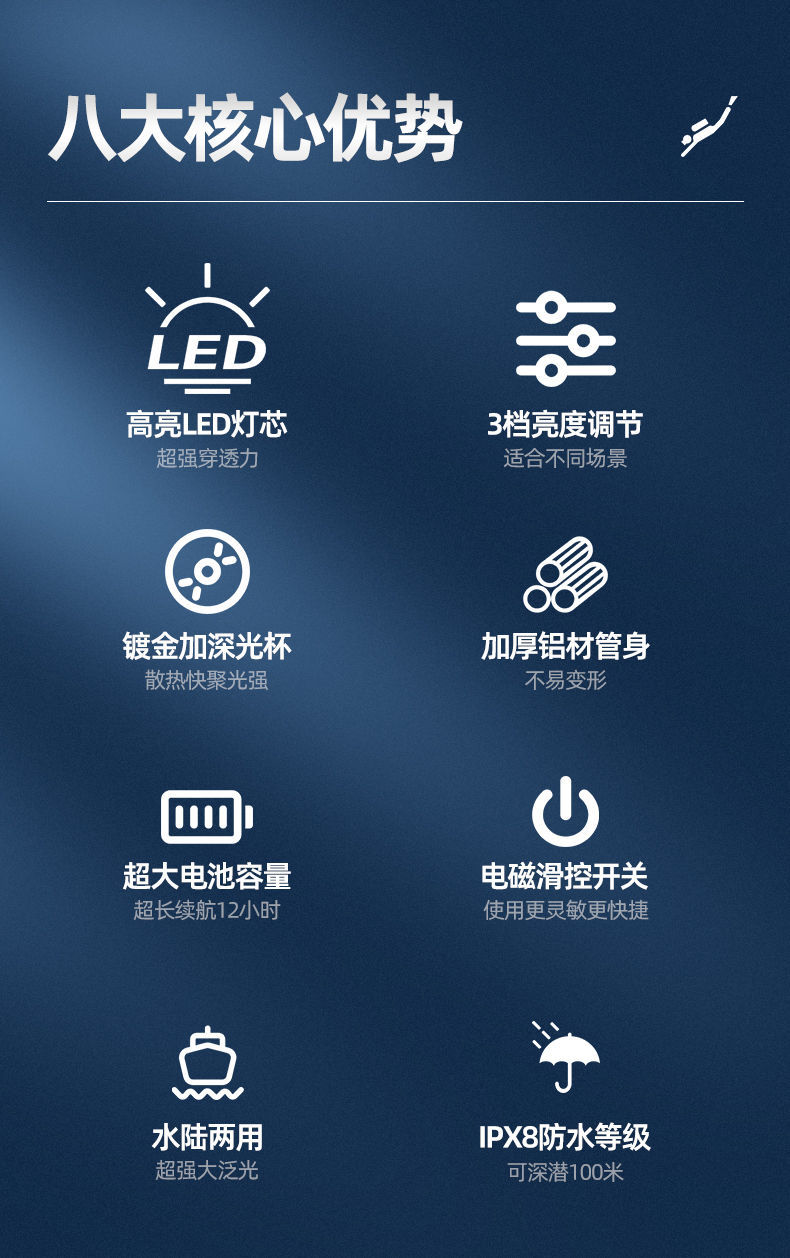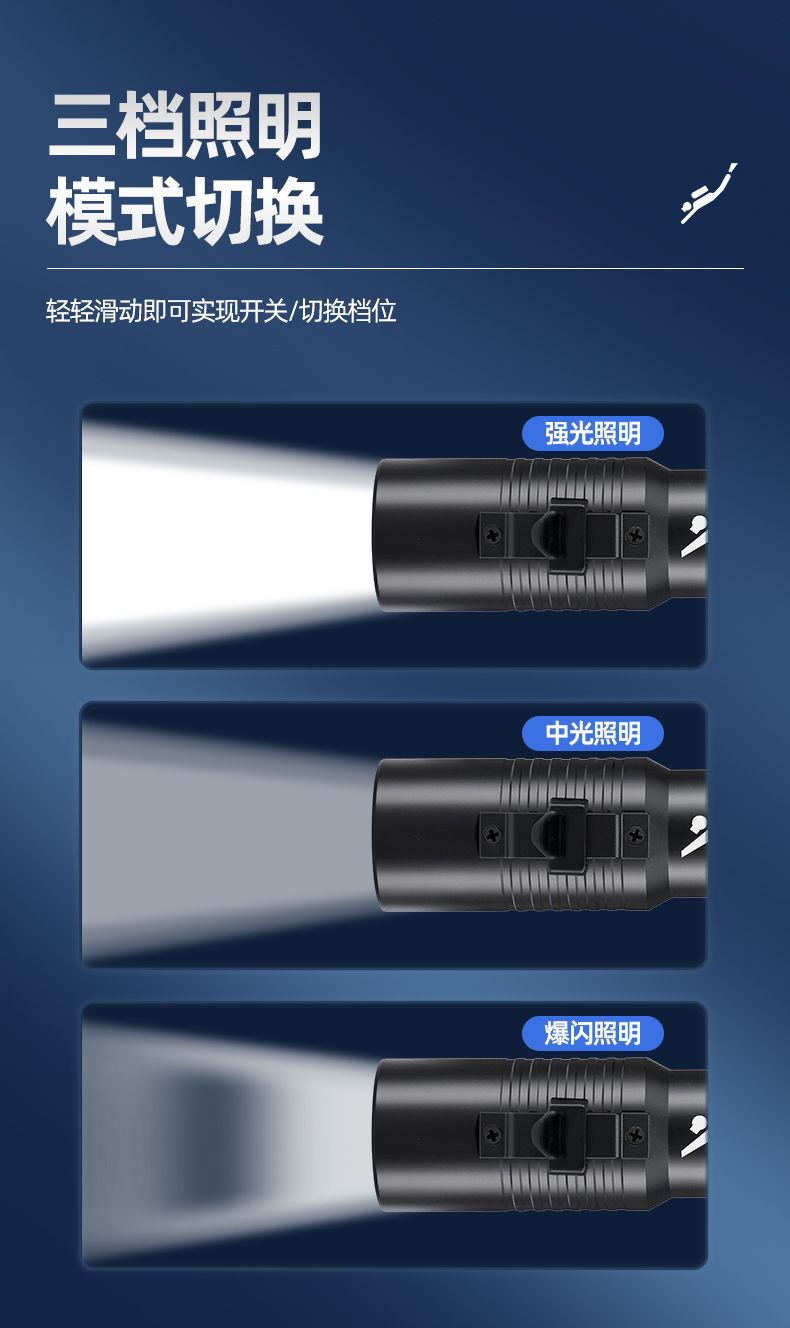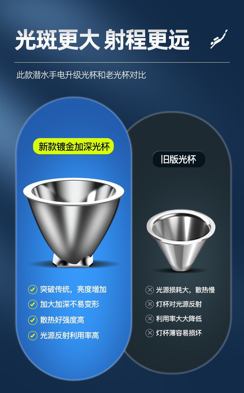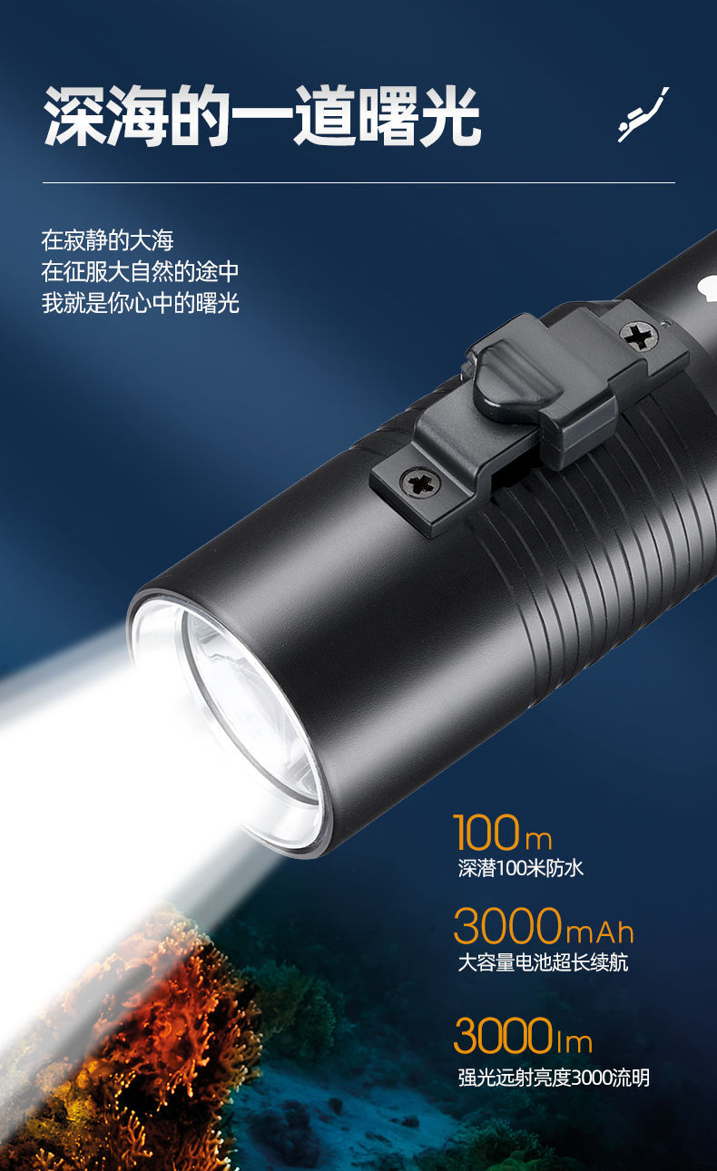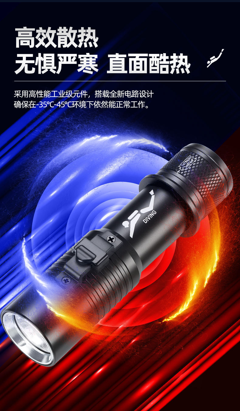 P70 linterna de buceo de cuatro núcleos luz blanca luz amarilla doble fuente de luz alta luz al aire libre superbrillante carga 26650 bajo el agua