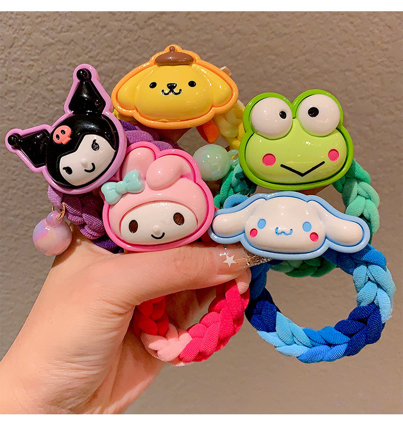 Sanrio colorido tejido de otoño e invierno para niños cuerda de pelo de dibujos animados linda chica banda de goma tocado alto elástico diadema duradera