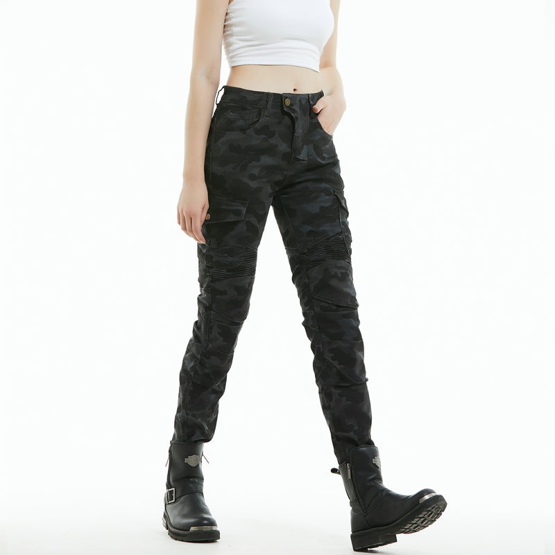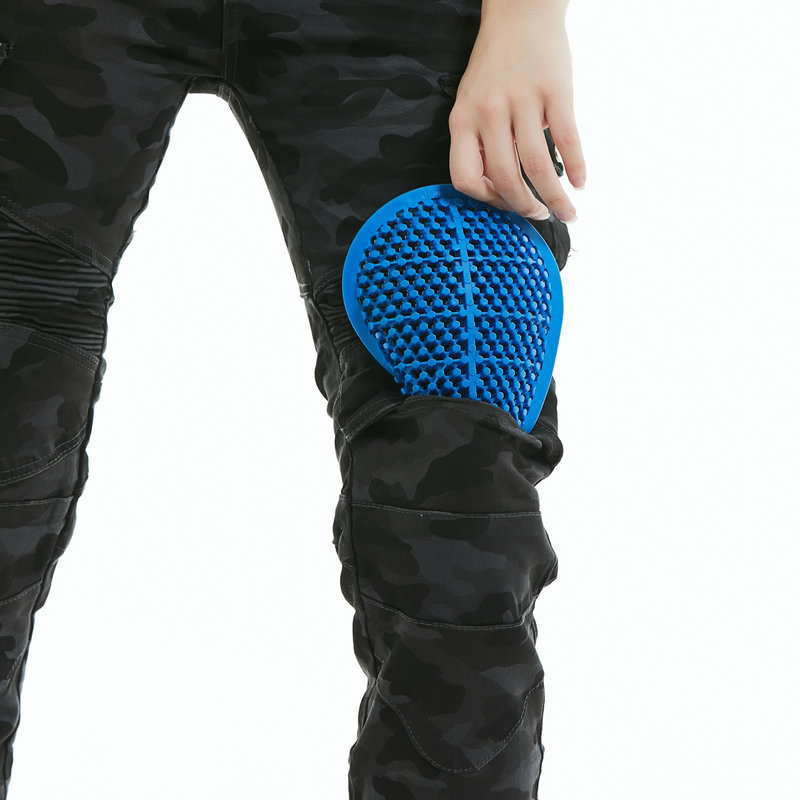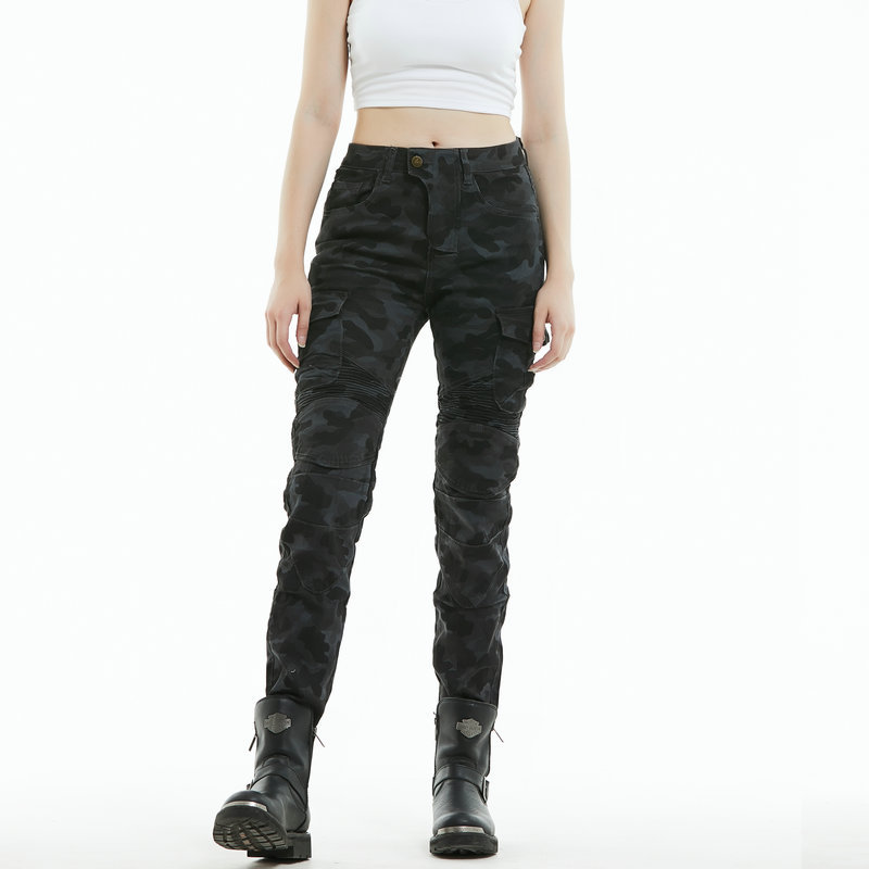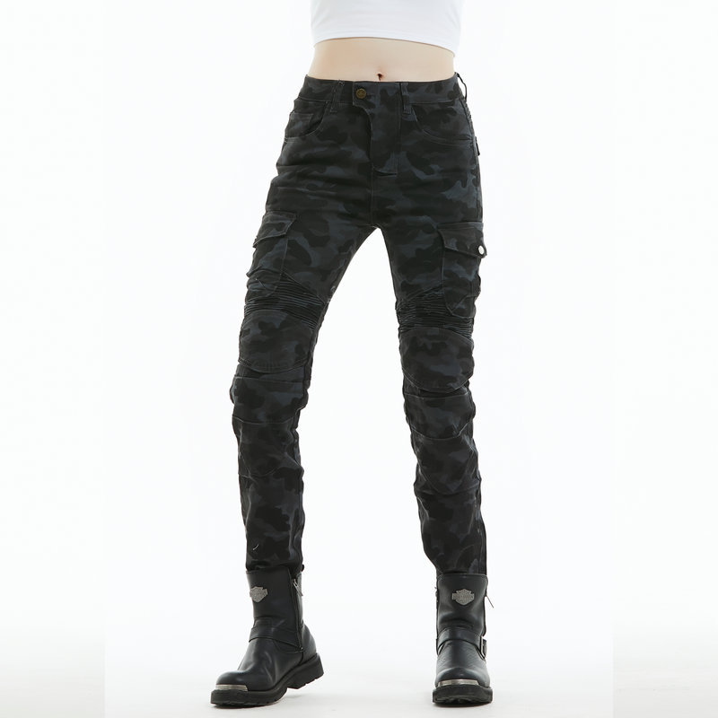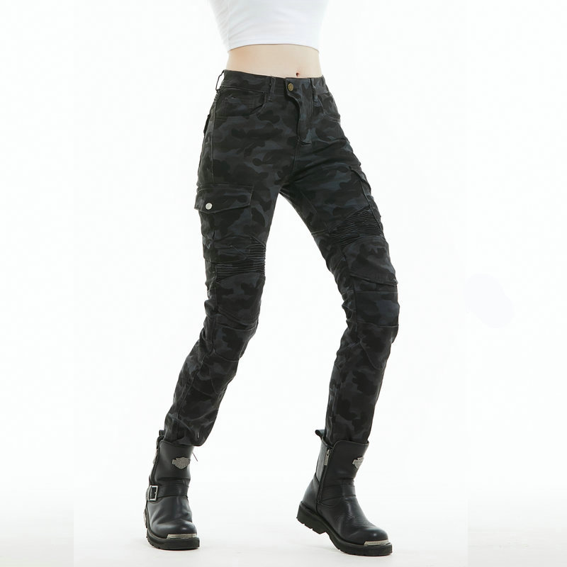 VOLERO pantalones de montar a caballo de la motocicleta Caballero de las mujeres pantalones elásticos anti-caída ocasional de la motocicleta multi-Bolsa de camuflaje azul monos