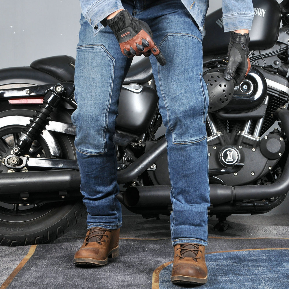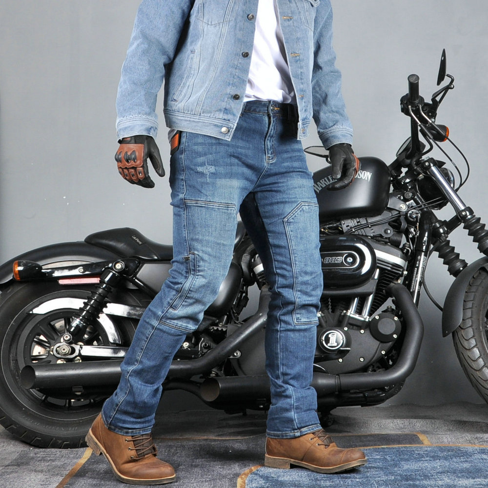 VOLERO jeans de motocicleta hombres y mujeres herramientas americanas ociosas locomotora elástica retro paseo a través de la carretera pantalones anticaídas