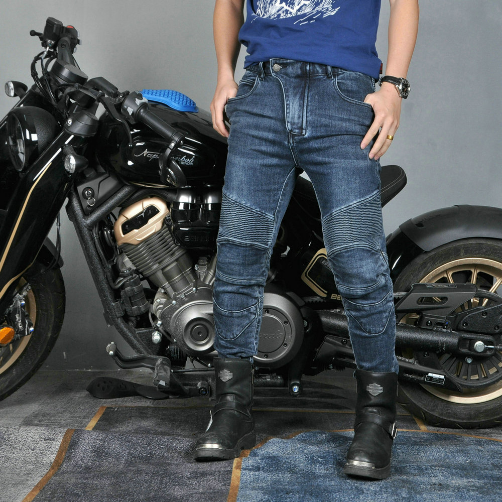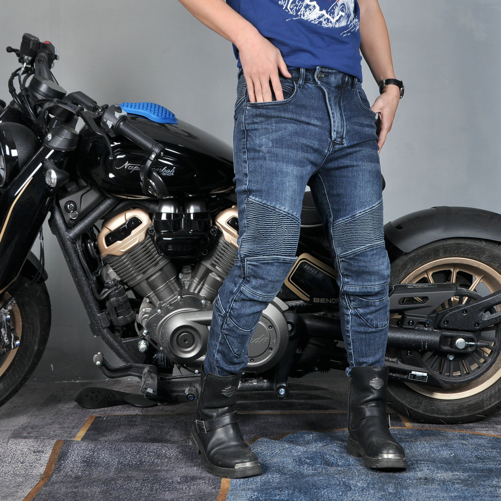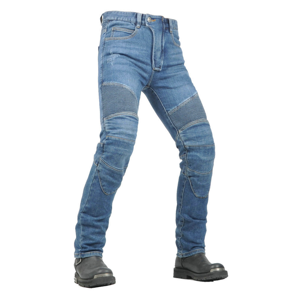 VOLERO Wo Lei Gong Pantalones de ciclismo de motocicleta Hombres y mujeres Pantalones de mezclilla Harley de motocicleta anti-caída de cuatro estaciones para protección de silicona