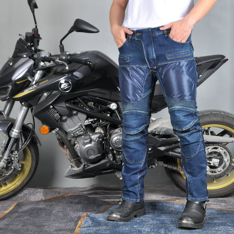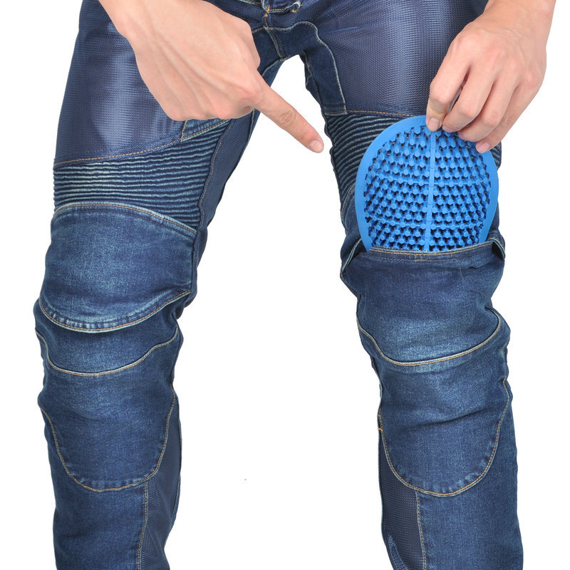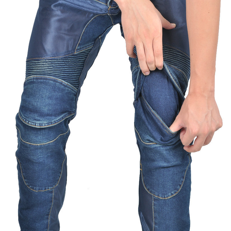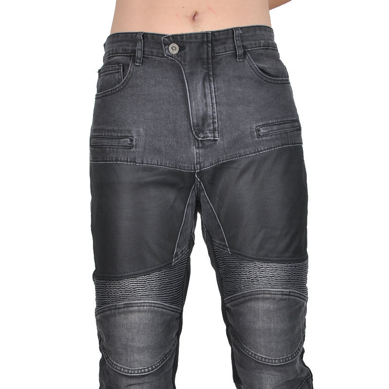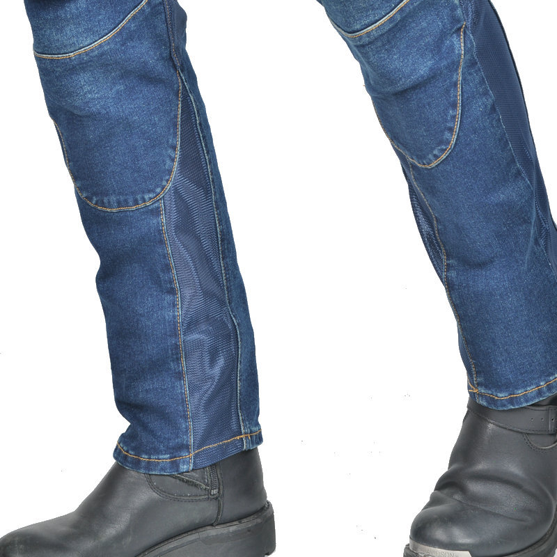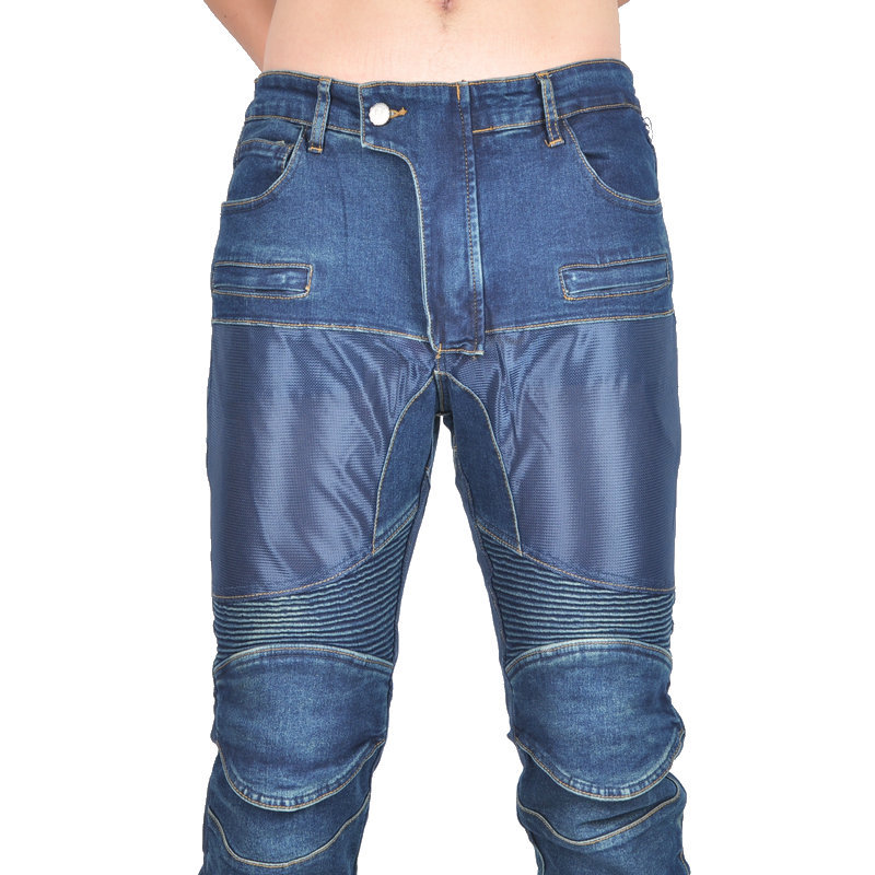 Jeans de motocicleta para hombres y mujeres verano malla transpirable locomotora elástica resistente al desgaste montar pantalones anticaídas protector de silicona