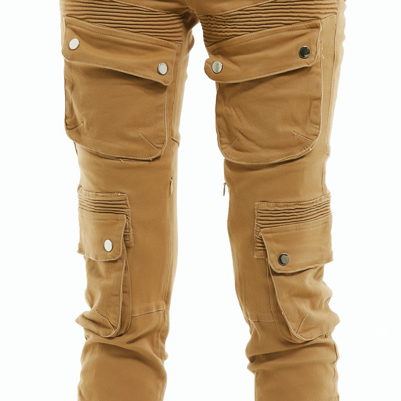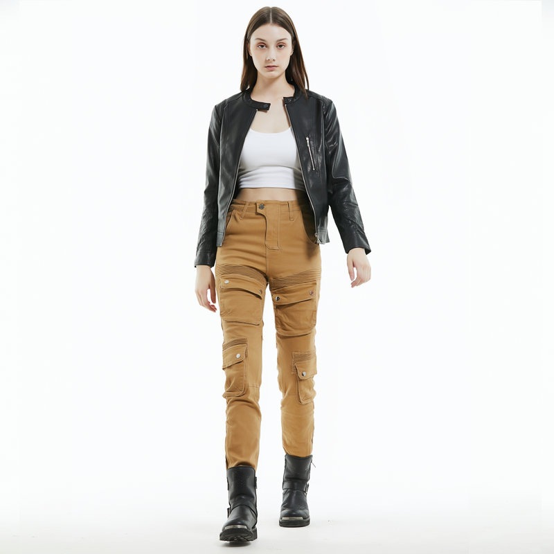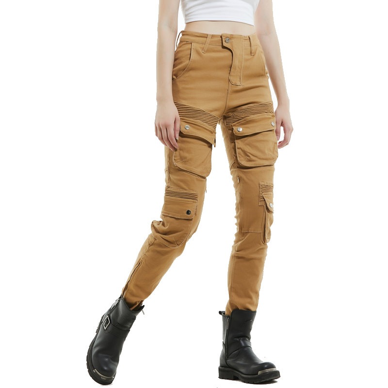 Loong biker motocicleta equitación pantalones de las mujeres Caballero retro casual multi-bolsa motocicleta monos de color caqui