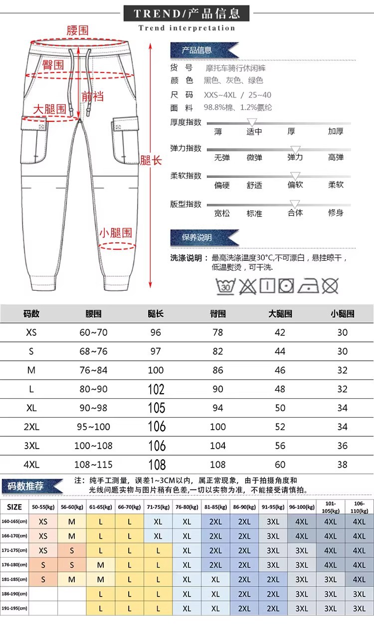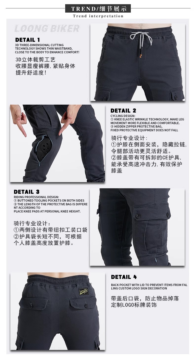 LOONG BIKER motocicleta Caballero monos de los hombres ocasionales ligeros cómodos resistentes al desgaste de la motocicleta montando pantalones anti-caída