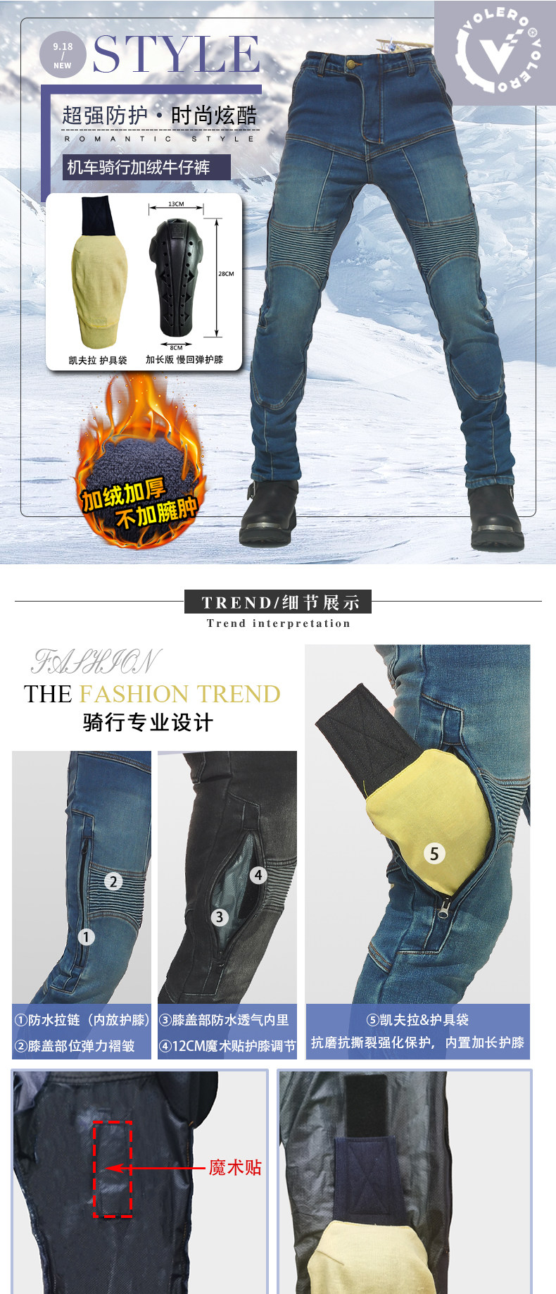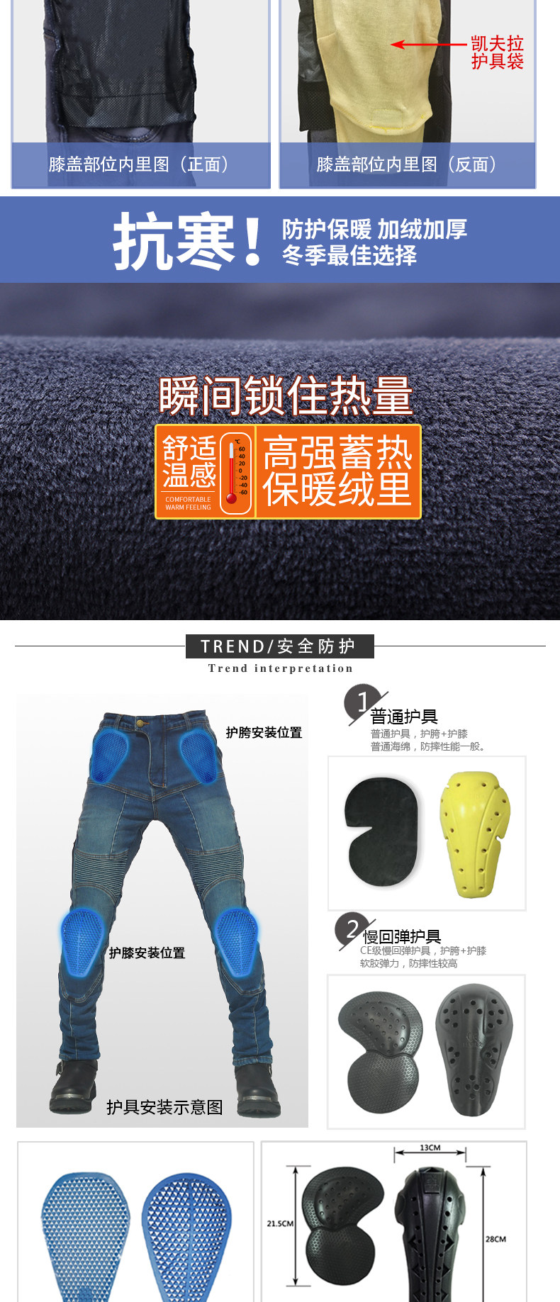 Pantalones vaqueros de la motocicleta de los hombres pantalones de montar de la motocicleta de vellón forrado impermeable anti-caída de los pantalones de Kevlar rodilleras arriba y abajo
