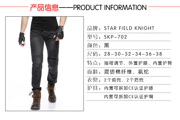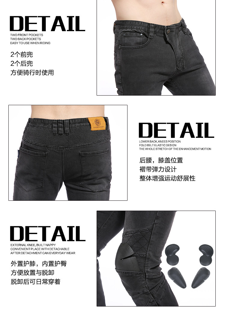 Motocicleta jeans motocicleta pantalones vaqueros de alta protección de alta elasticidad resistente a la caída resistente al desgaste carretera locomotora SKP702