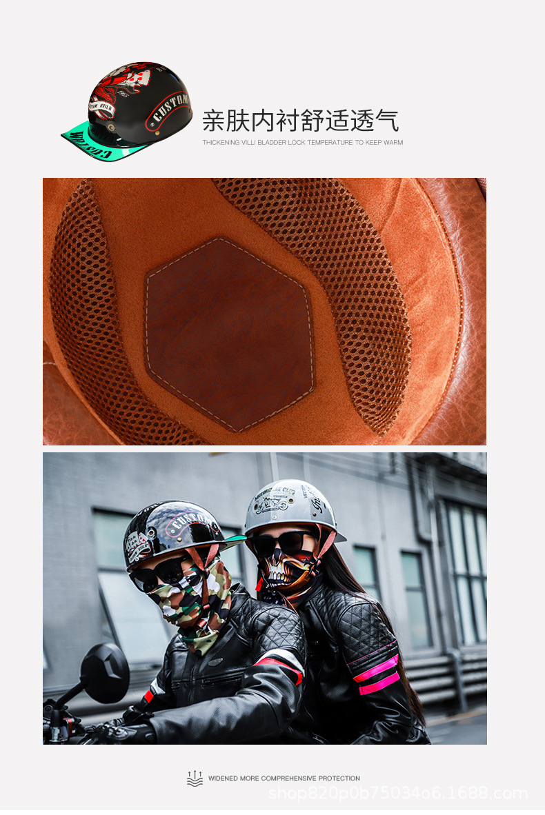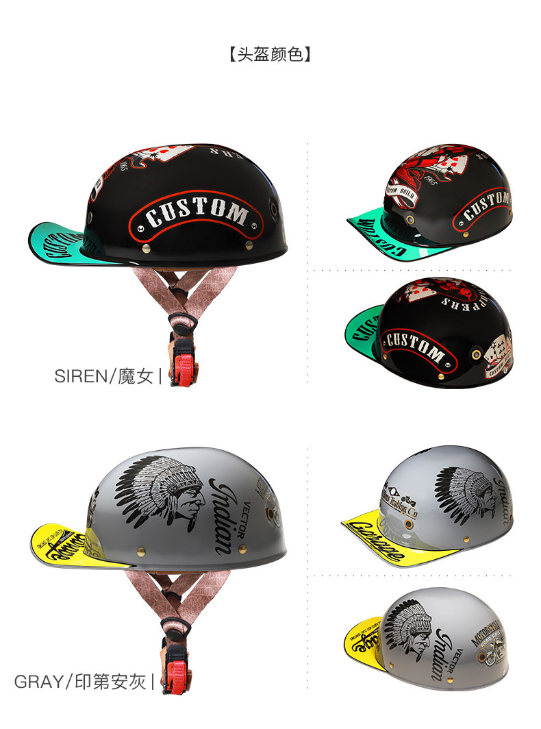 Al por mayor casco de motocicleta medio casco verano hombres y mujeres retro Harley motocicleta eléctrica gorra de béisbol primicia casco fabricante