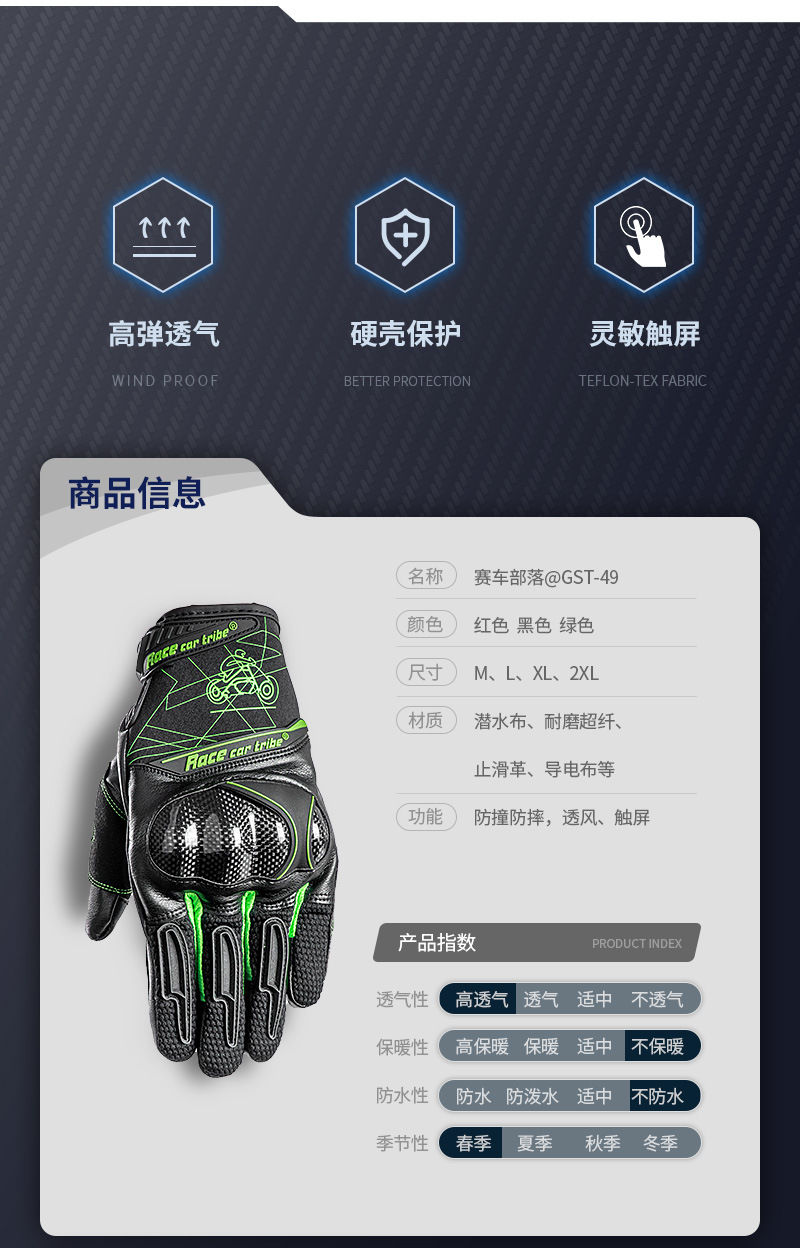 Racing tribu guantes de montar en motocicleta primavera y otoño hombres y mujeres de fibra de carbono dedo completo equipo de protección motocicleta resistente a la caída GST49
