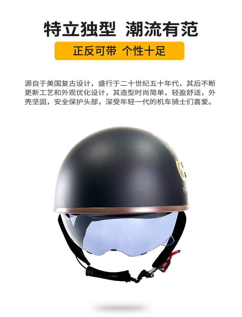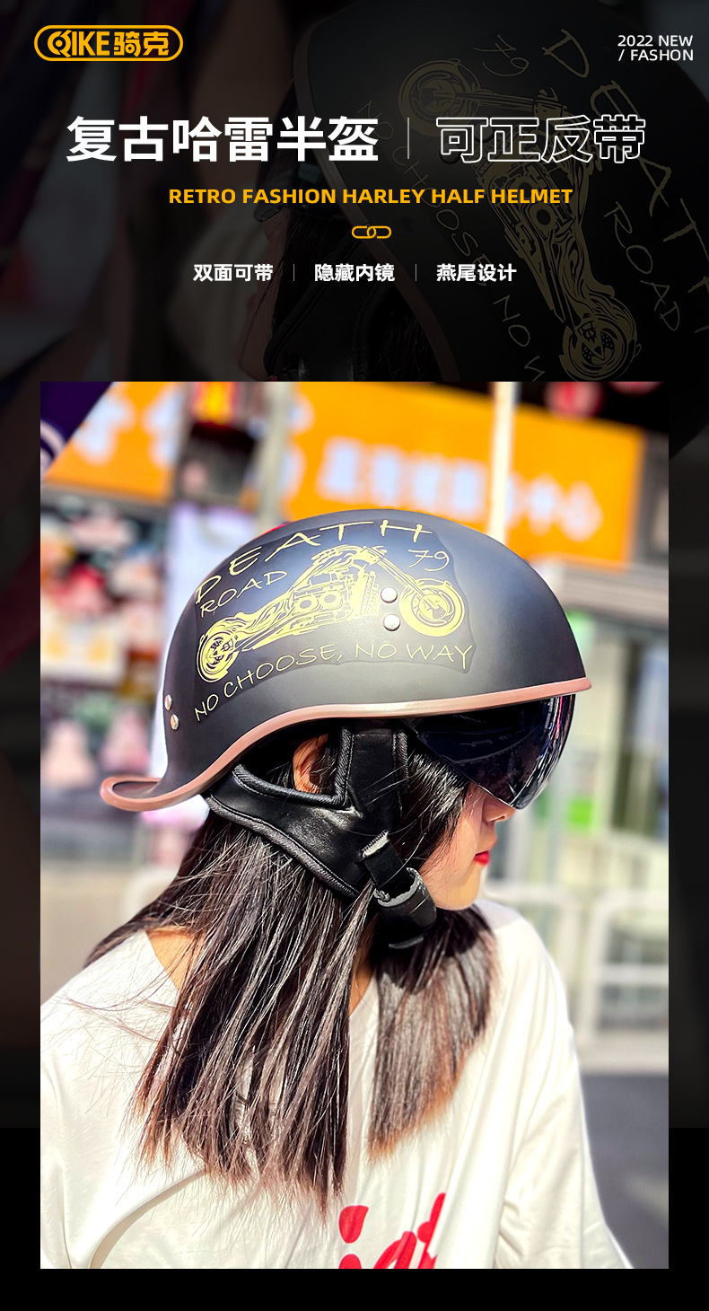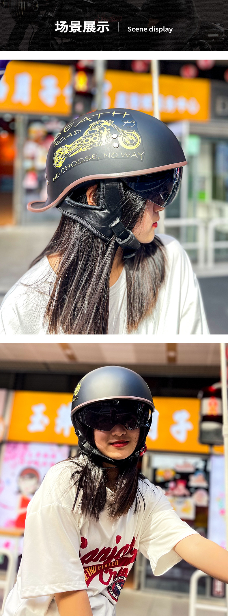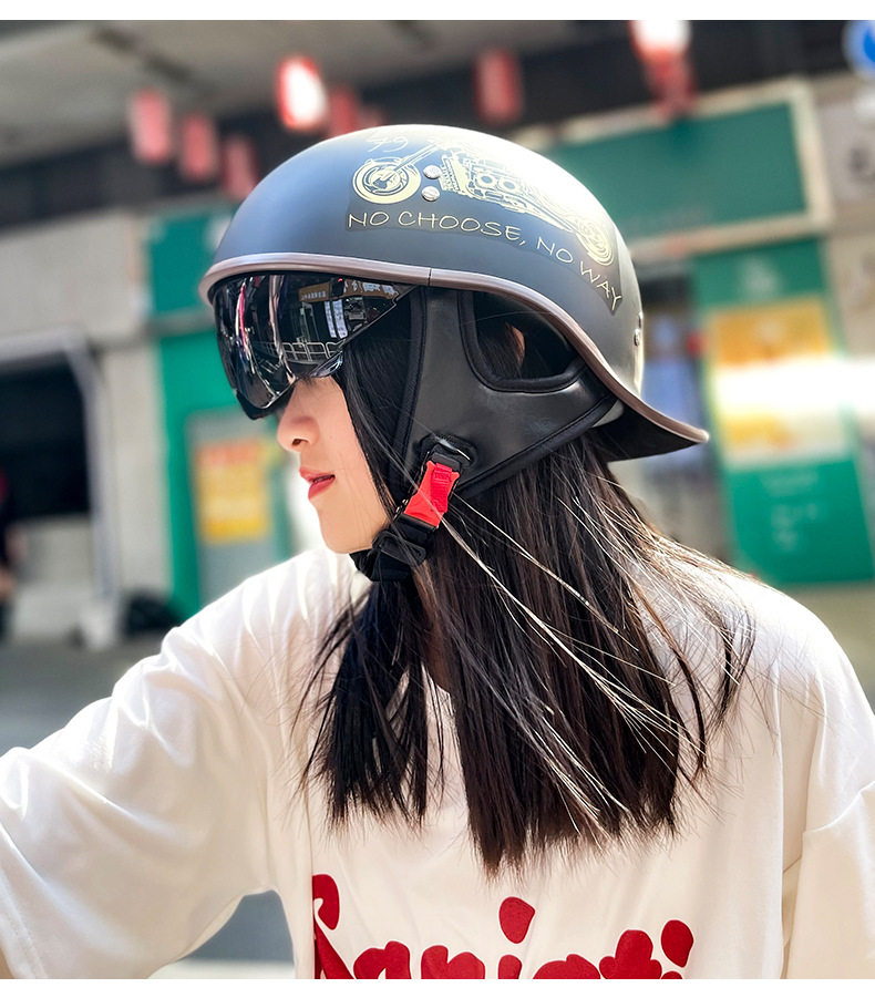 Casco de motocicleta eléctrica de verano retrógrado casco de cola de mitad casco masculino y masculino casco de casco personalidad casco de seguridad de locomotora de cuatro estaciones