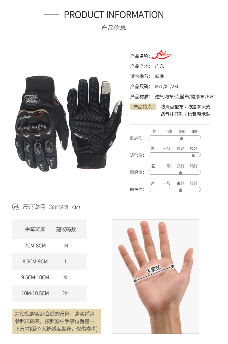 AFAK guantes de montar pantalla táctil carreras al aire libre Knight motocicleta resistente a la caída dedo completo medio dedo guantes de motocicleta para hombres