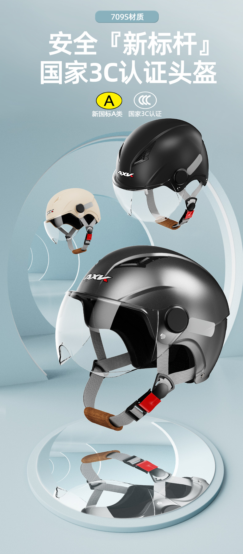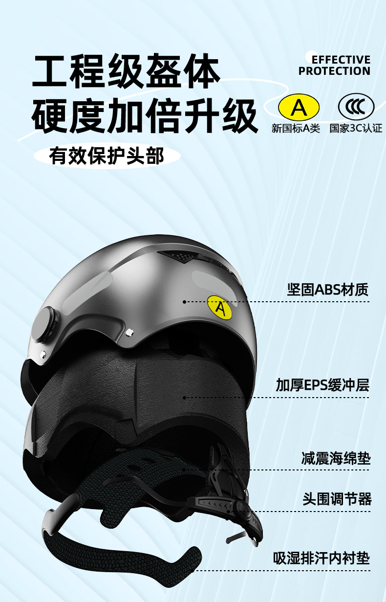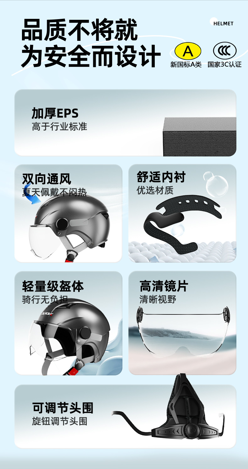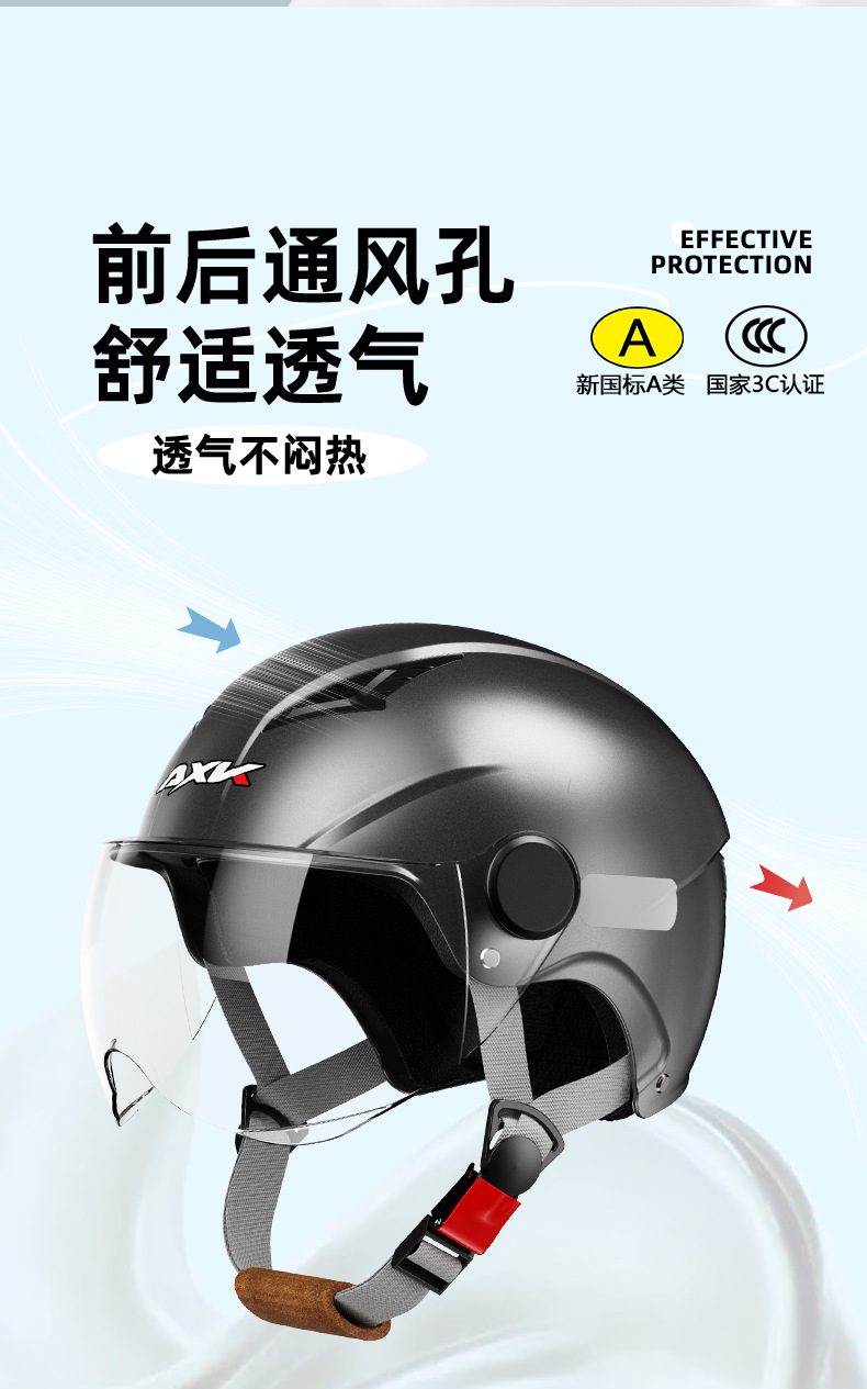 Nuevo estándar nacional 3C certificado casco de motocicleta de verano de los hombres protección solar coche eléctrico medio casco de cuatro estaciones de las mujeres