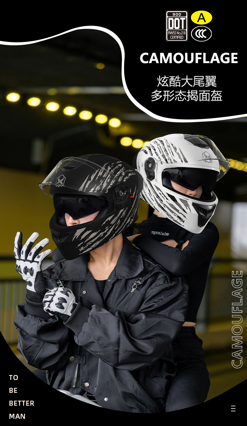 3C / Dot certificado casco de motocicleta masculino cuatro estaciones locomotora universal cool camuflaje casco de seguridad de invierno