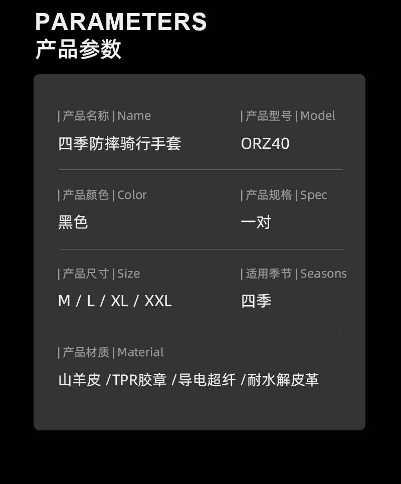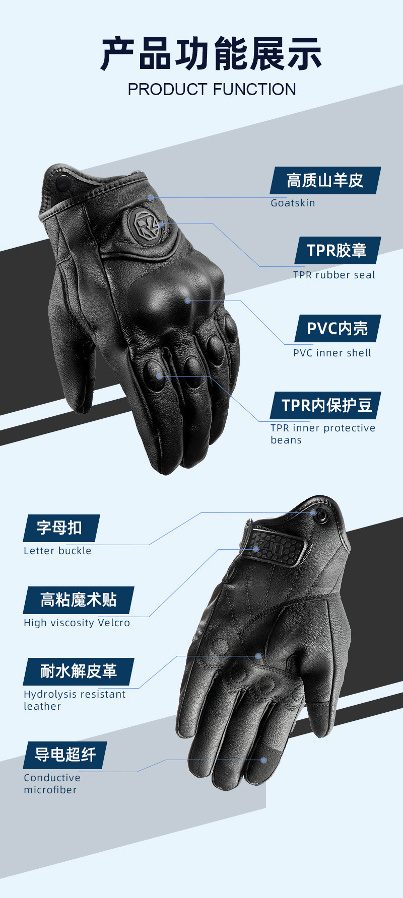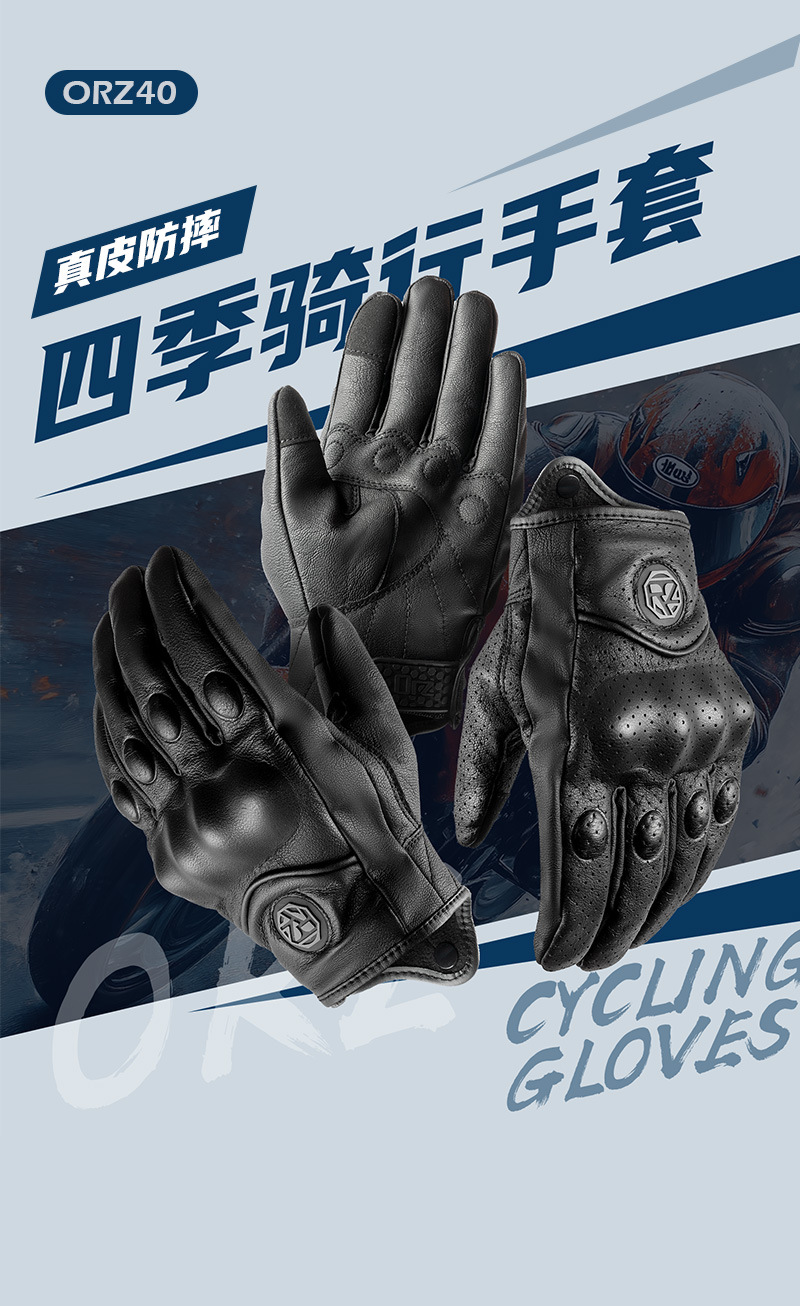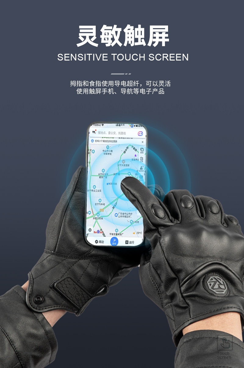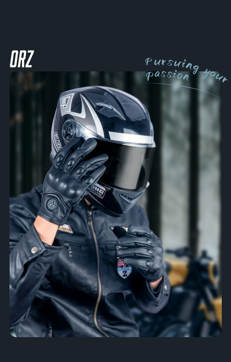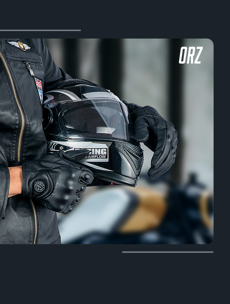 Orz fábrica directa pantalla táctil ícono guantes de piel de cabra motocicleta jinete equipo guantes de locomotora