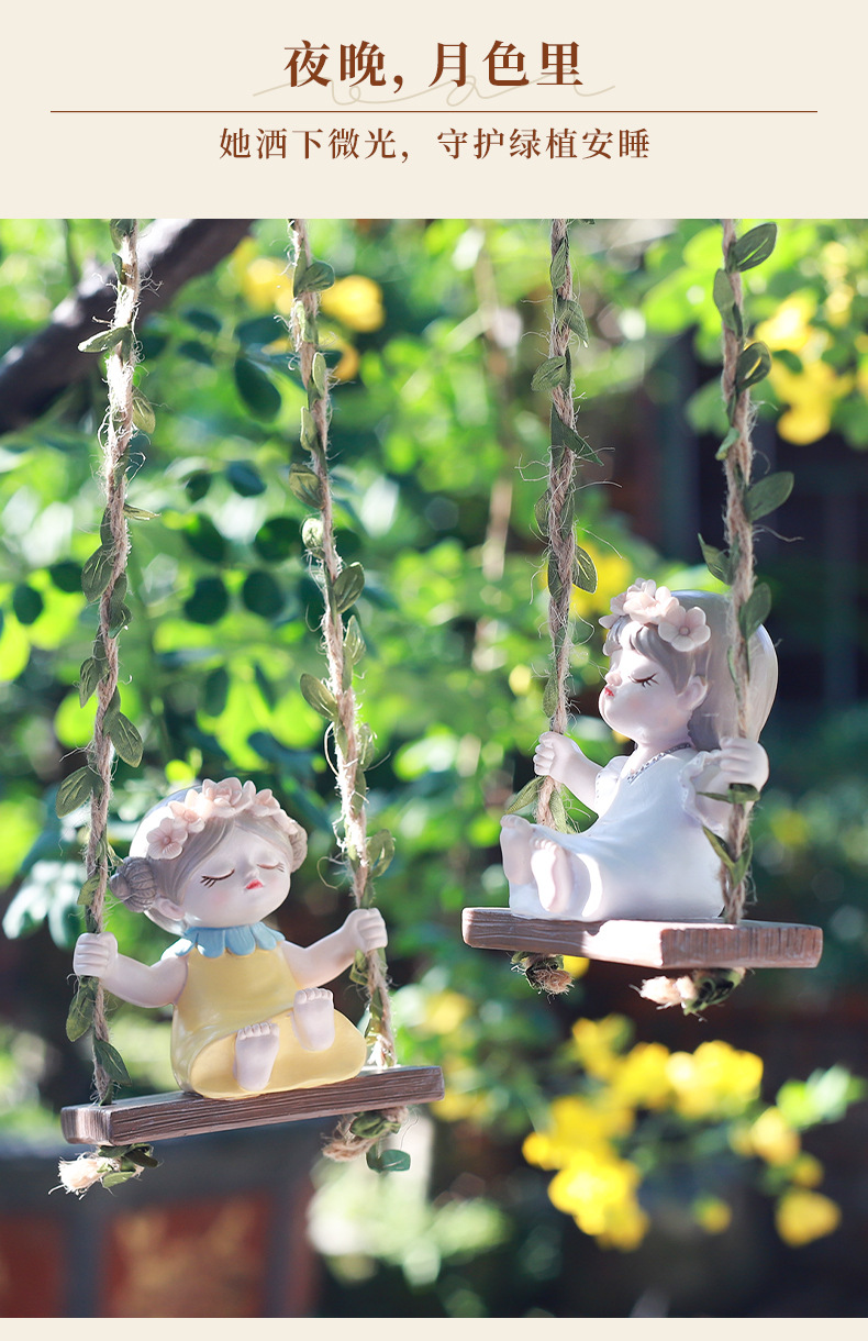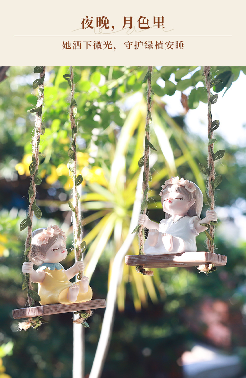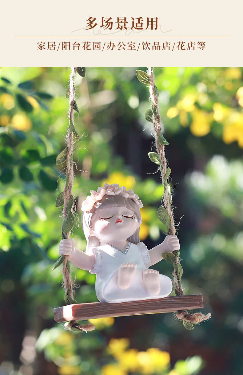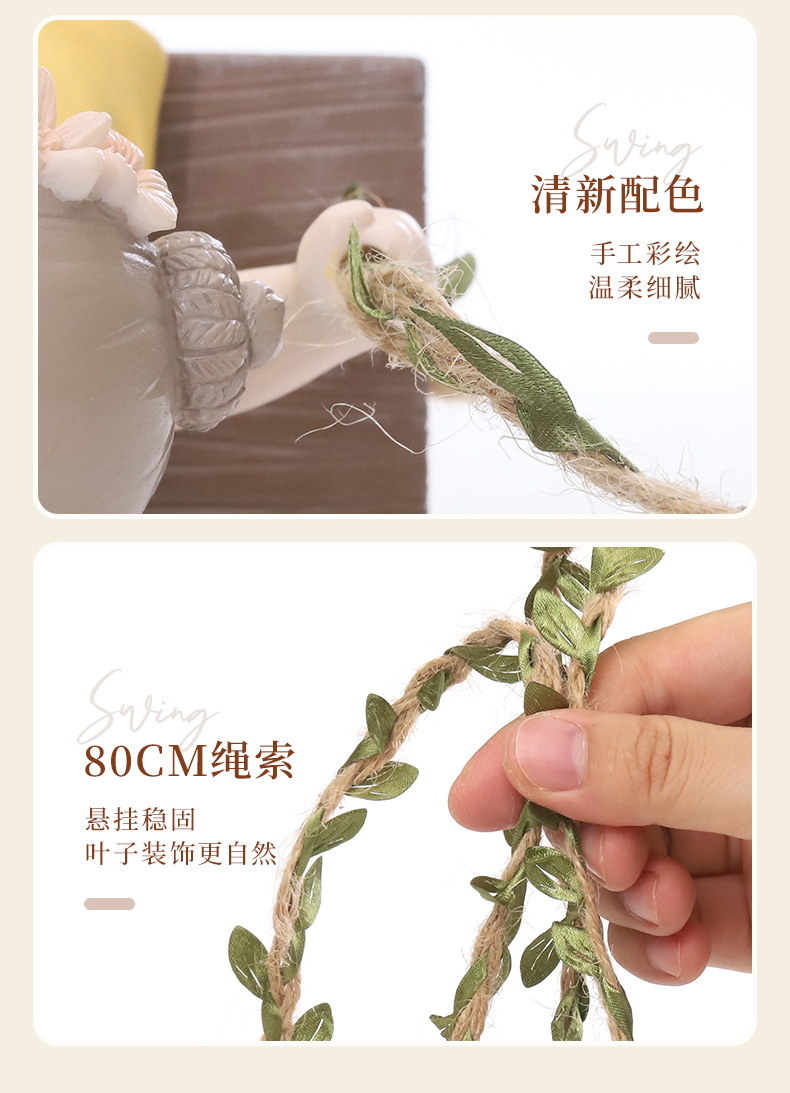 Columpio de jardinería para niñas colgante de decoración de paisaje Jardín patio swing chica interesante lindos colgantes de cuerda de cáñamo