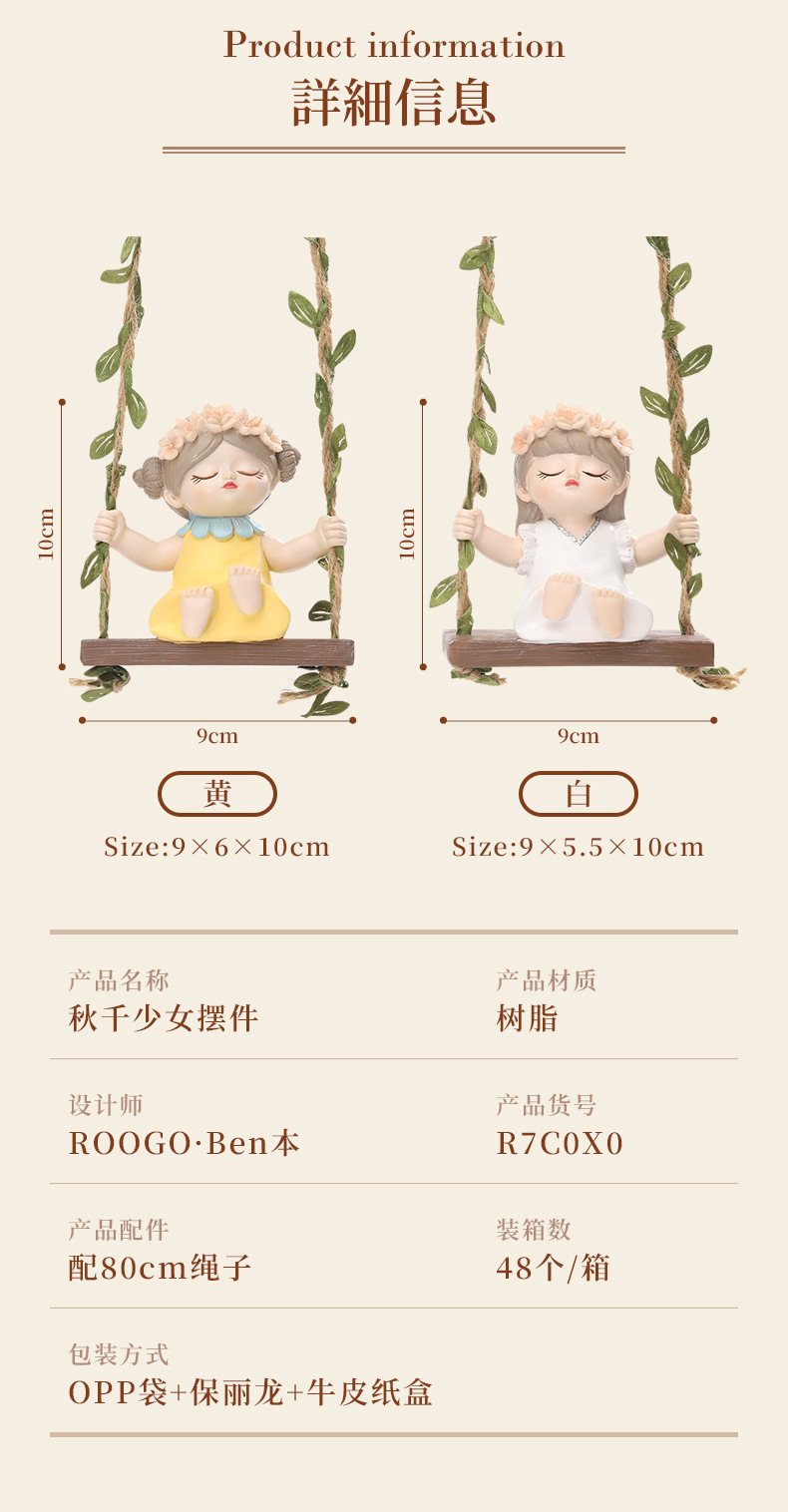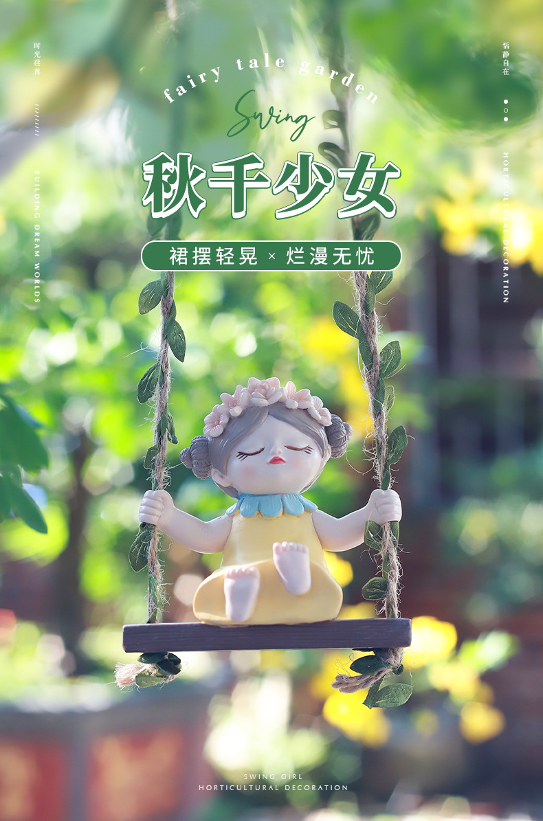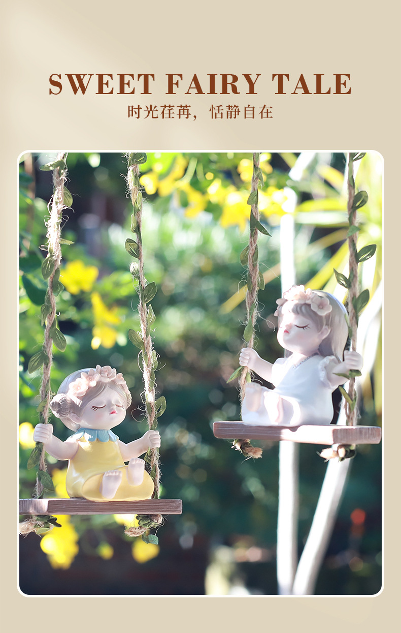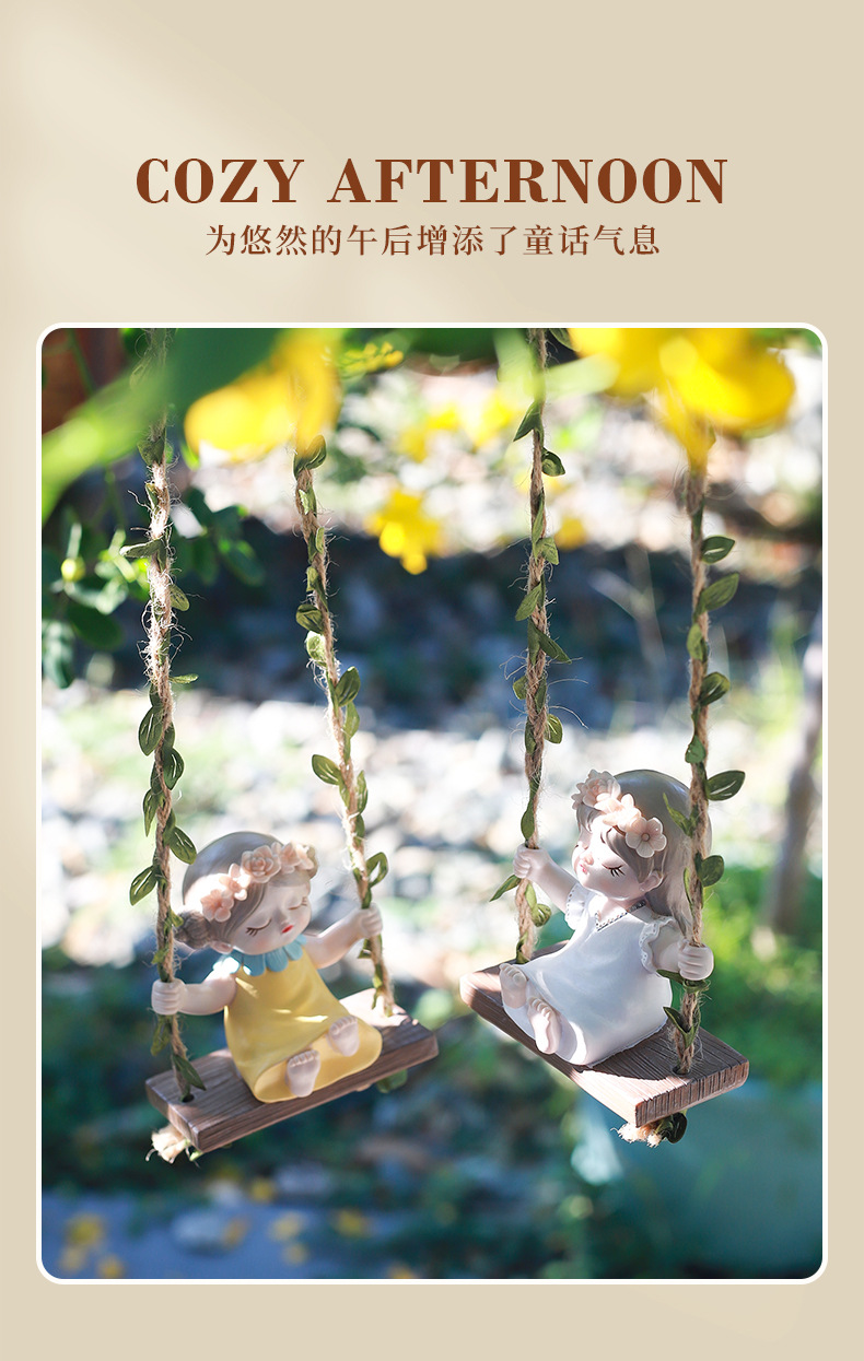 Columpio de jardinería para niñas colgante de decoración de paisaje Jardín patio swing chica interesante lindos colgantes de cuerda de cáñamo
