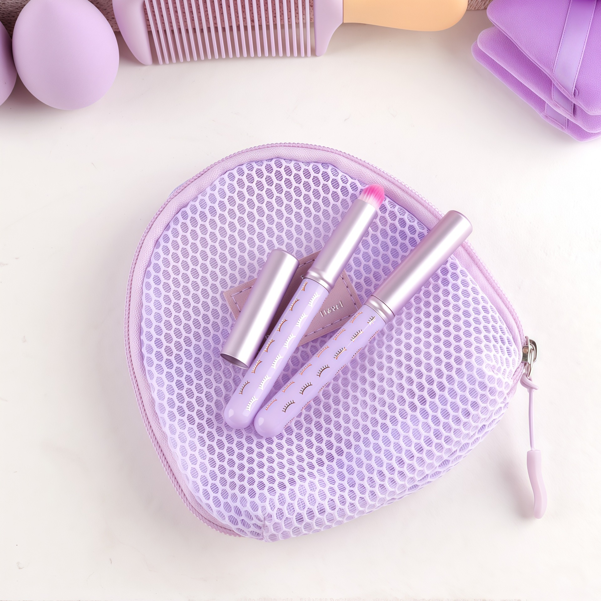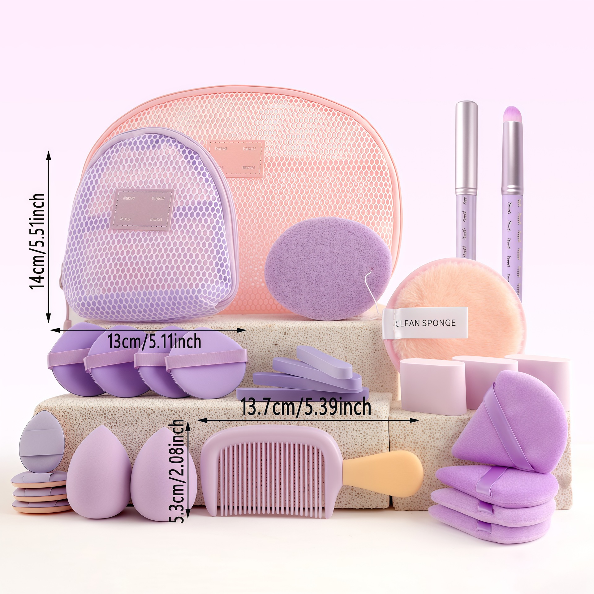 28 nuevos productos transfronterizos, dos bolsas de cosméticos de malla, brocha de maquillaje, maquillaje antes y después del maquillaje, combinación de herramientas de maquillaje