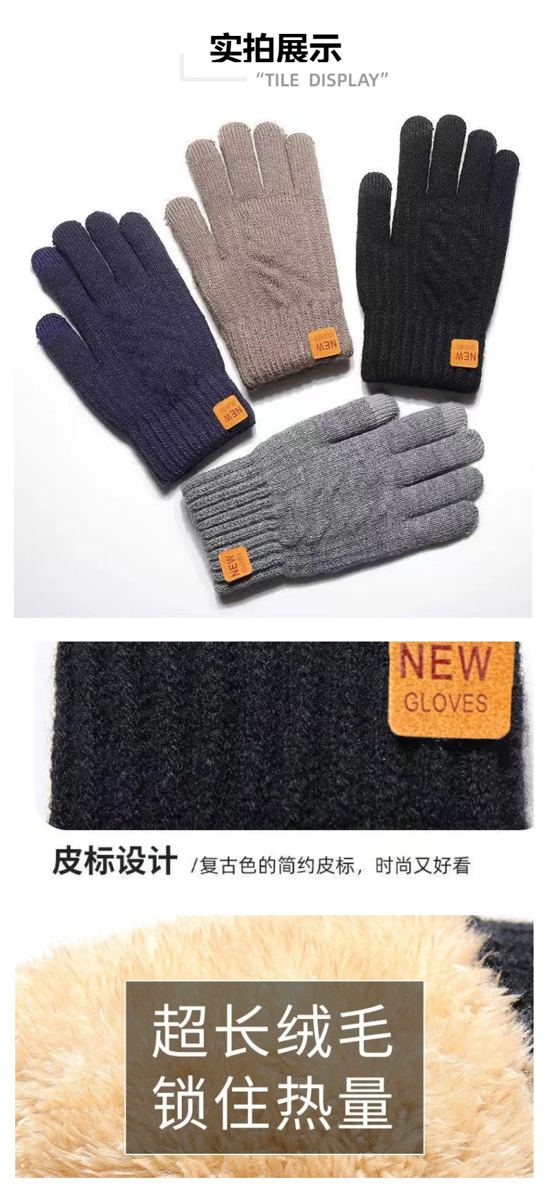 Nuevos guantes de tejido de pantalla táctil de doble capa gruesa invierno al por mayor guantes de terciaria guantes de pantalla táctil calientes para hombres