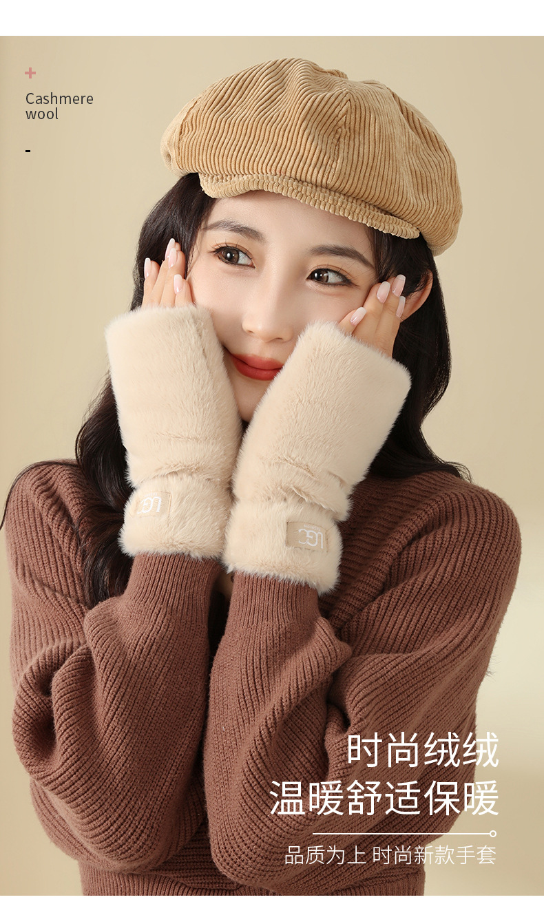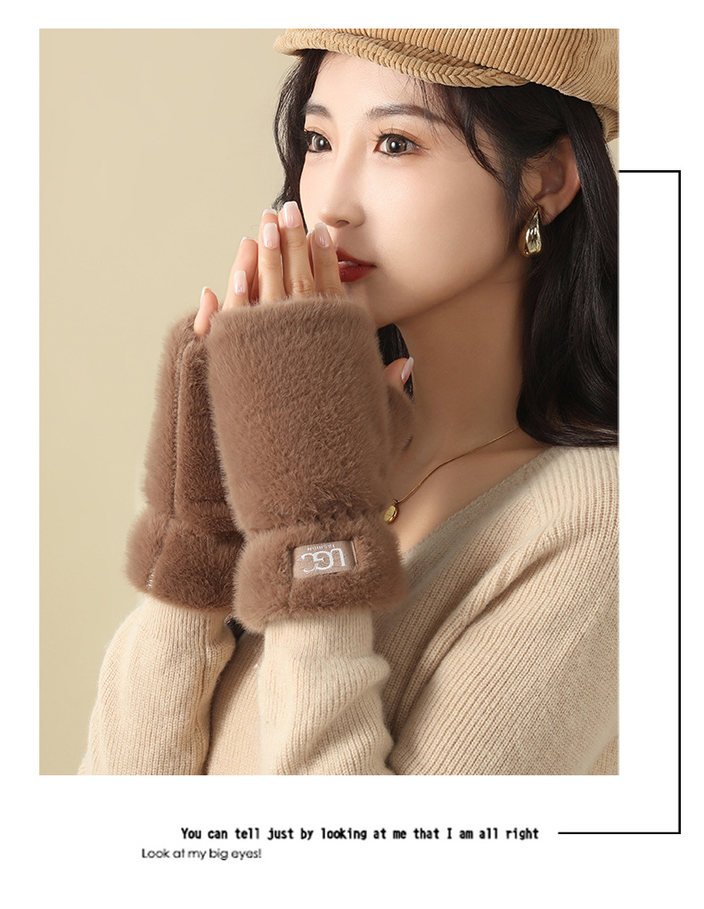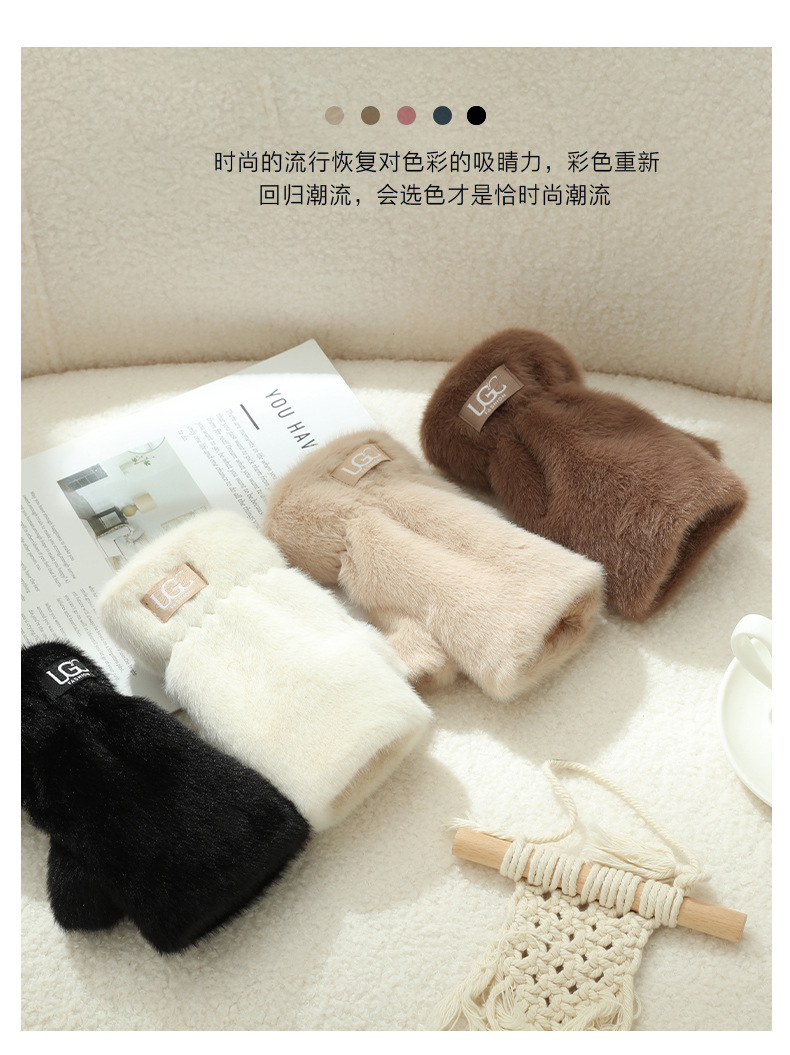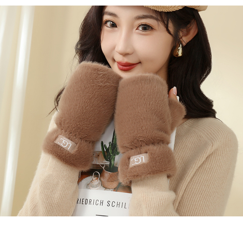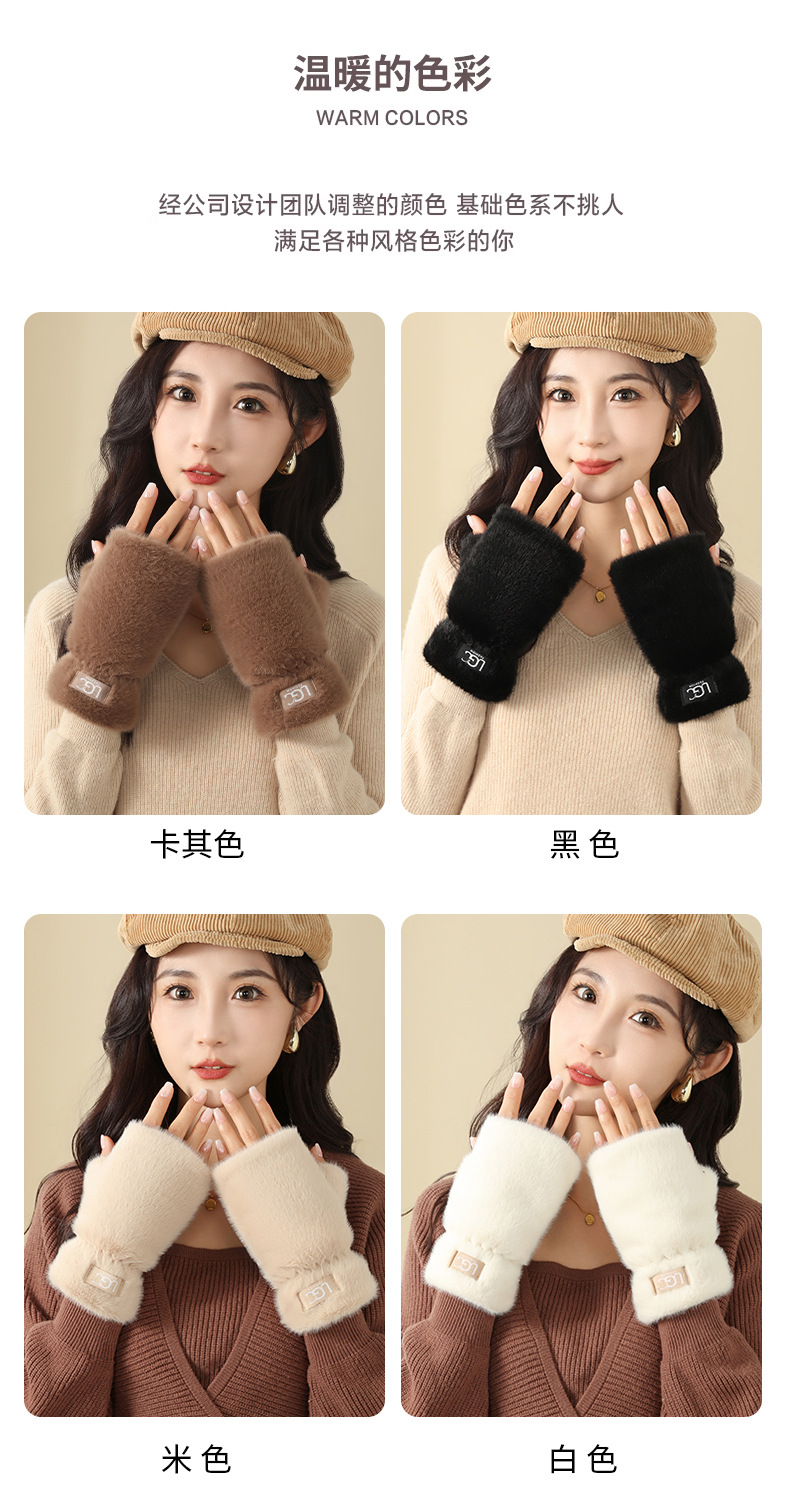 Invierno guantes de pelo de conejo de mitad de dedo femenino de peluche engrosado y veludo para montar calentado a prueba de frío de color sólido sin mangas de dedo