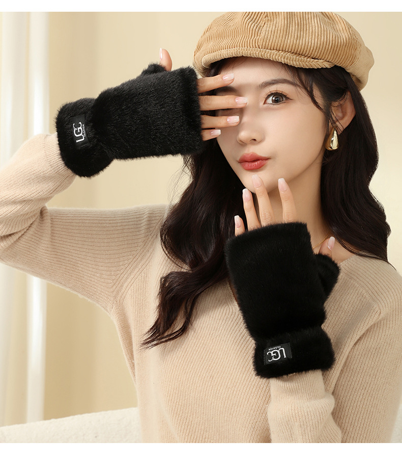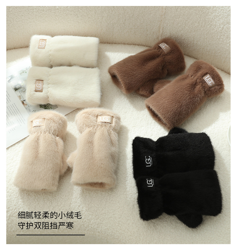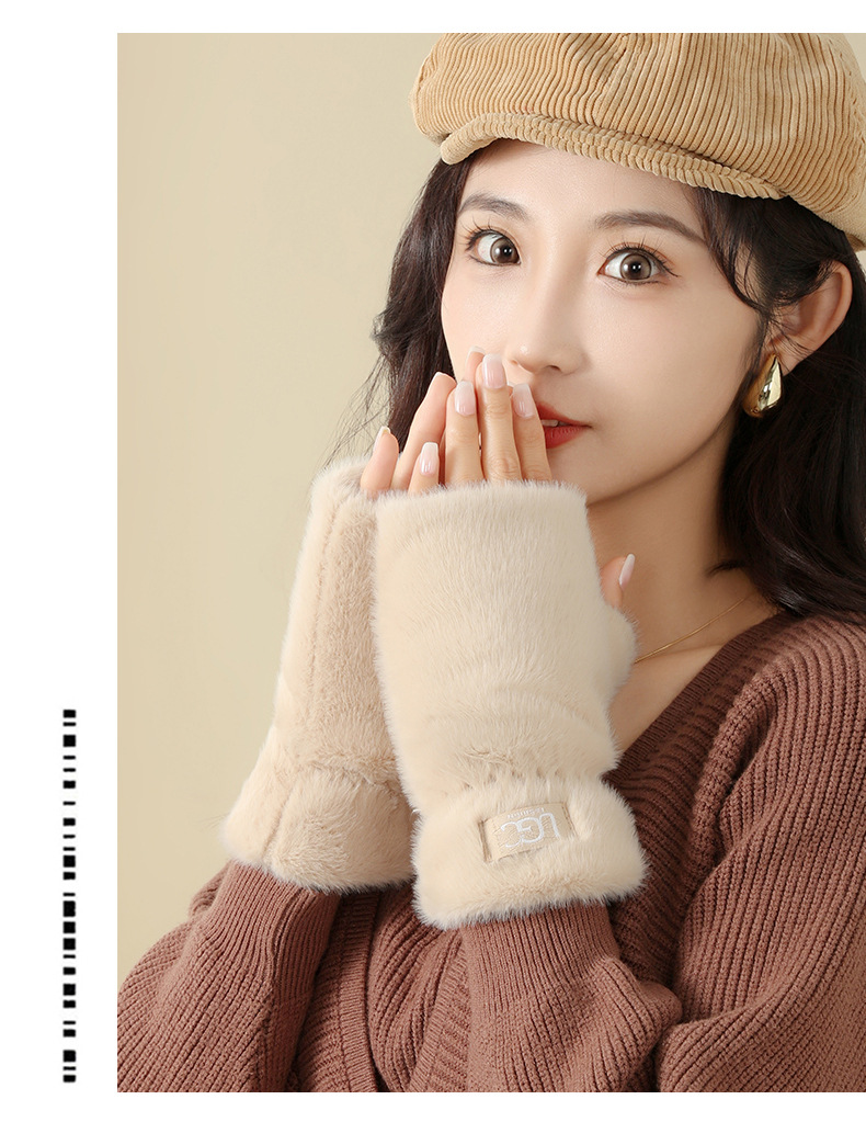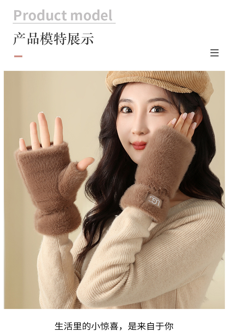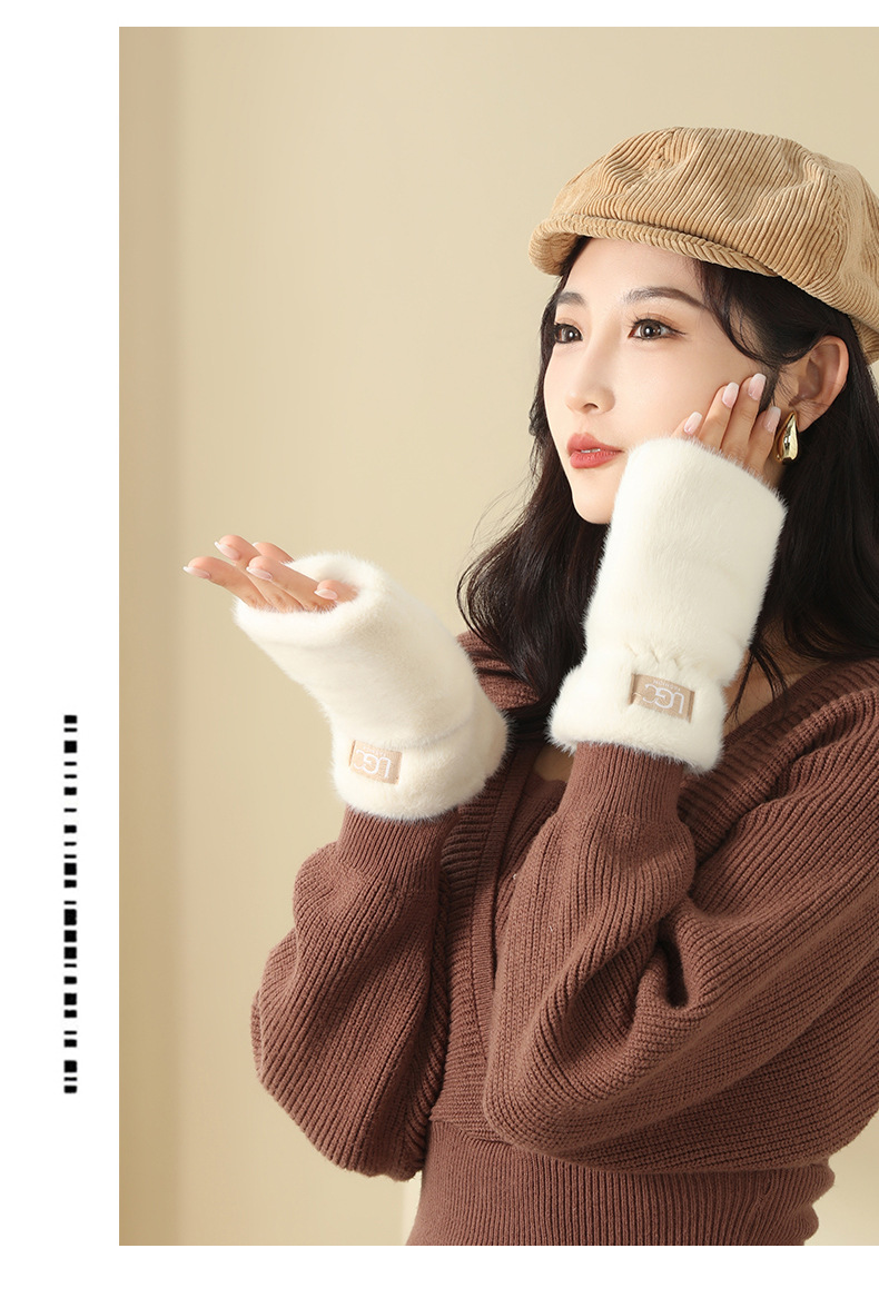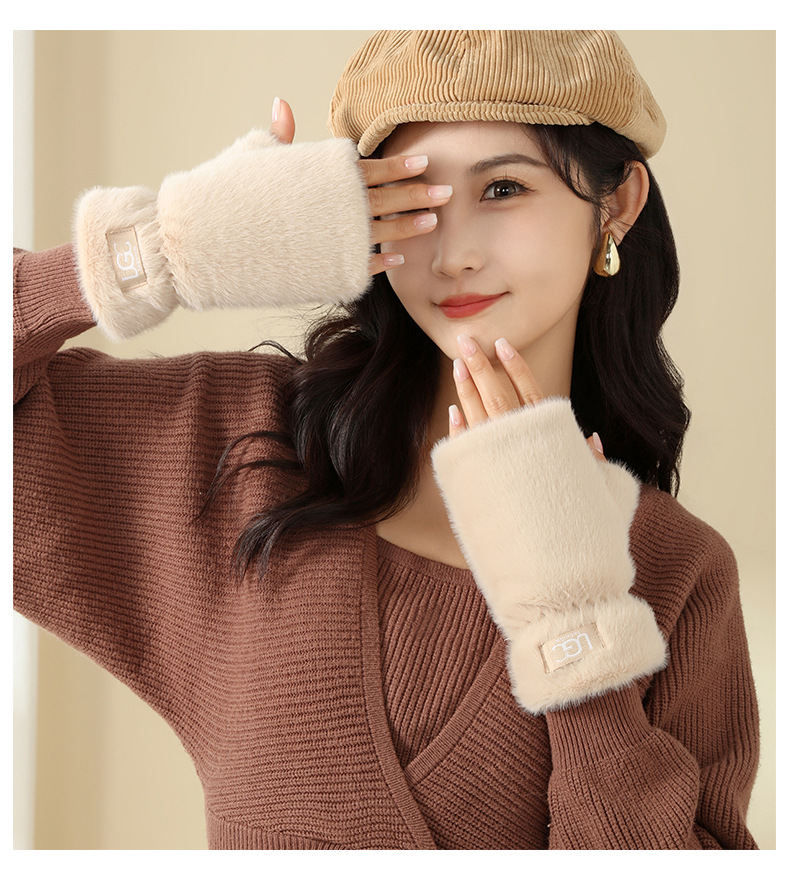 Invierno guantes de pelo de conejo de mitad de dedo femenino de peluche engrosado y veludo para montar calentado a prueba de frío de color sólido sin mangas de dedo