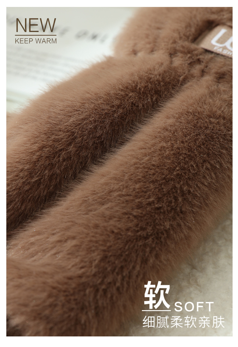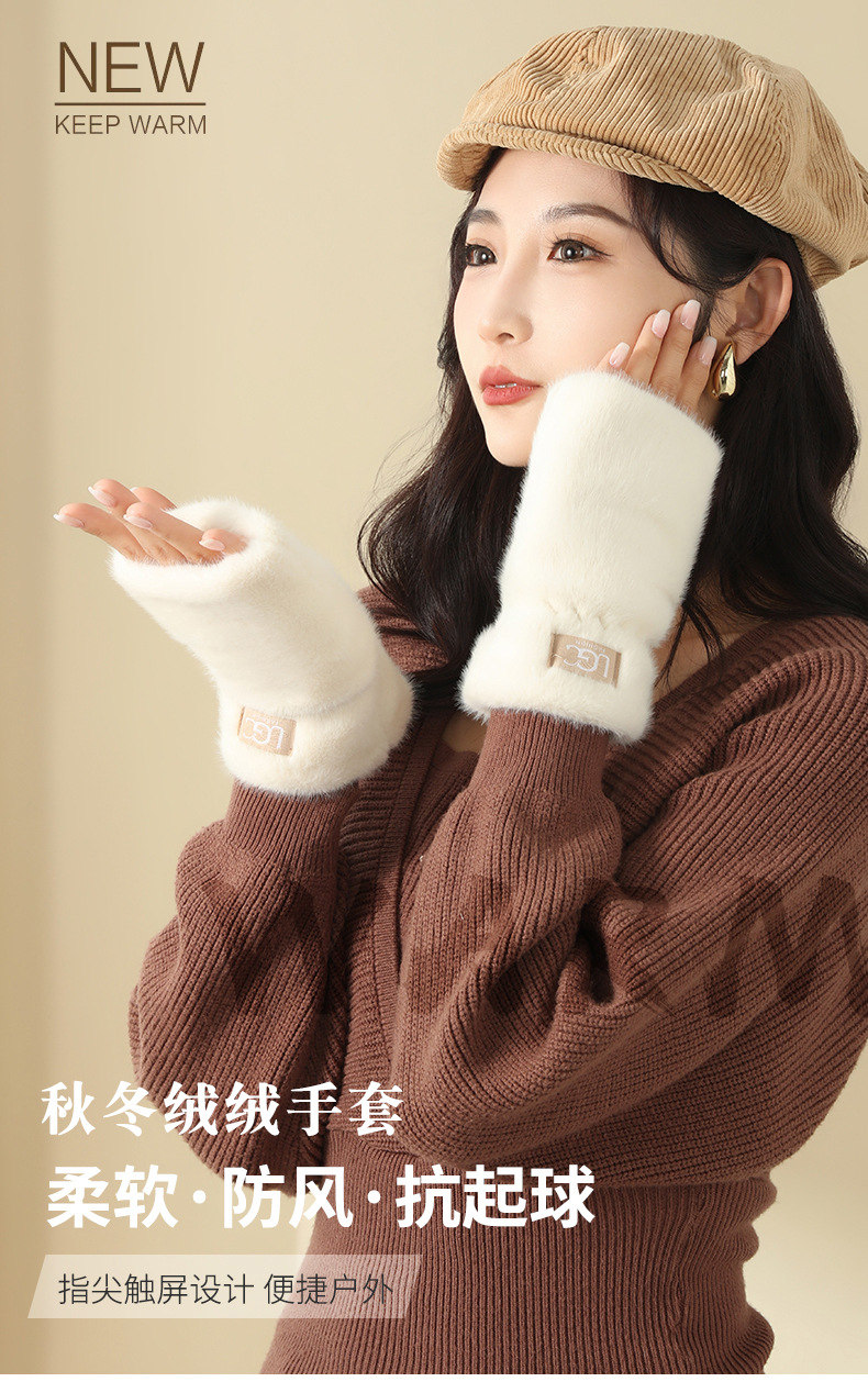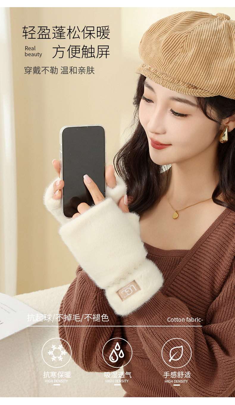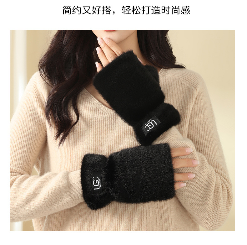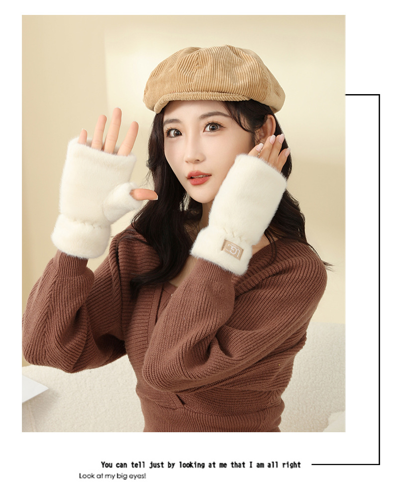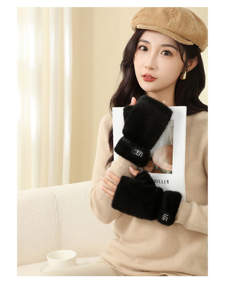 Invierno guantes de pelo de conejo de mitad de dedo femenino de peluche engrosado y veludo para montar calentado a prueba de frío de color sólido sin mangas de dedo