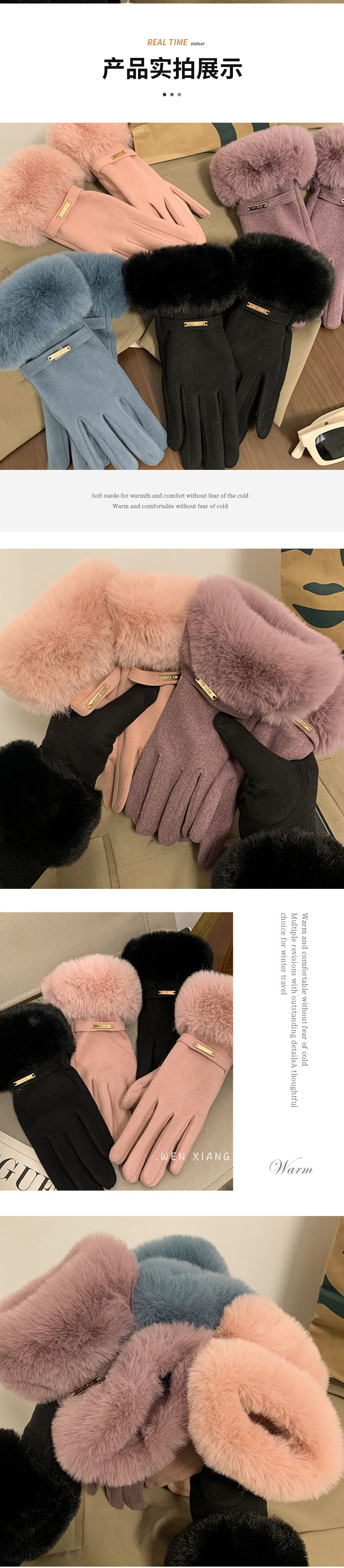 Nuevos guantes de damas de peluche de invierno al aire libre a prueba de viento de peluche grueso guantes de dedo de peluche al por mayor