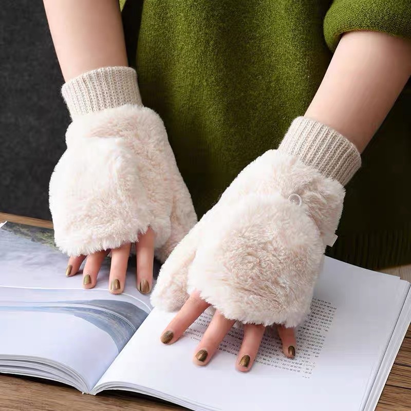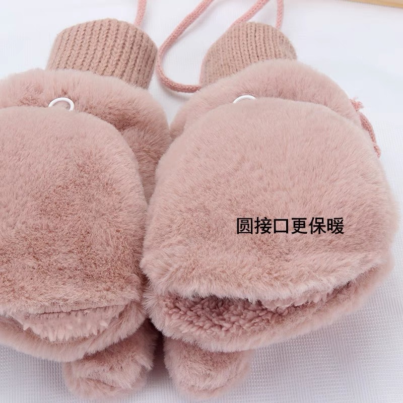 Japonés lindo guantes de felpa Imitación Piel de conejo pelusa Halter mitones guantes de invierno guantes calientes del dedo del bolso femenino al por mayor