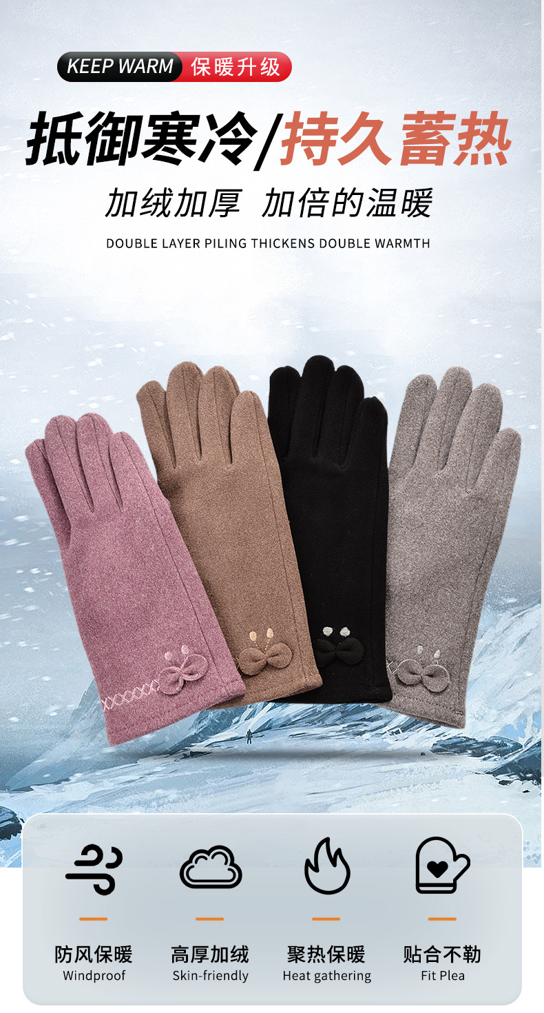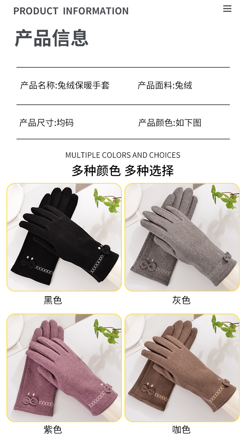 Nuevos guantes cálidos de piel de conejo para mujer, guantes de invierno y otoño, guantes Xinji, a prueba de viento, forrados de lana, a prueba de frío, versión gruesa, venta al por mayor.