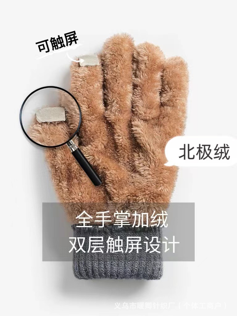 Nuevos guantes para niños más guantes de punto de pantalla táctil de invierno engrosados de terciopelo para ciclismo al aire libre doble protección contra el frío y el calor al por mayor