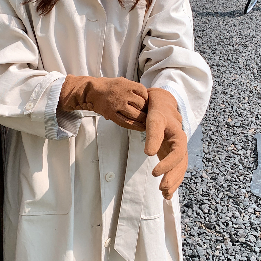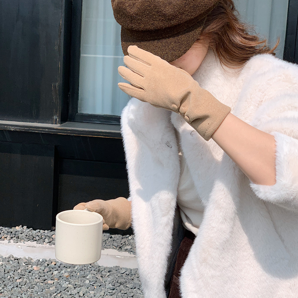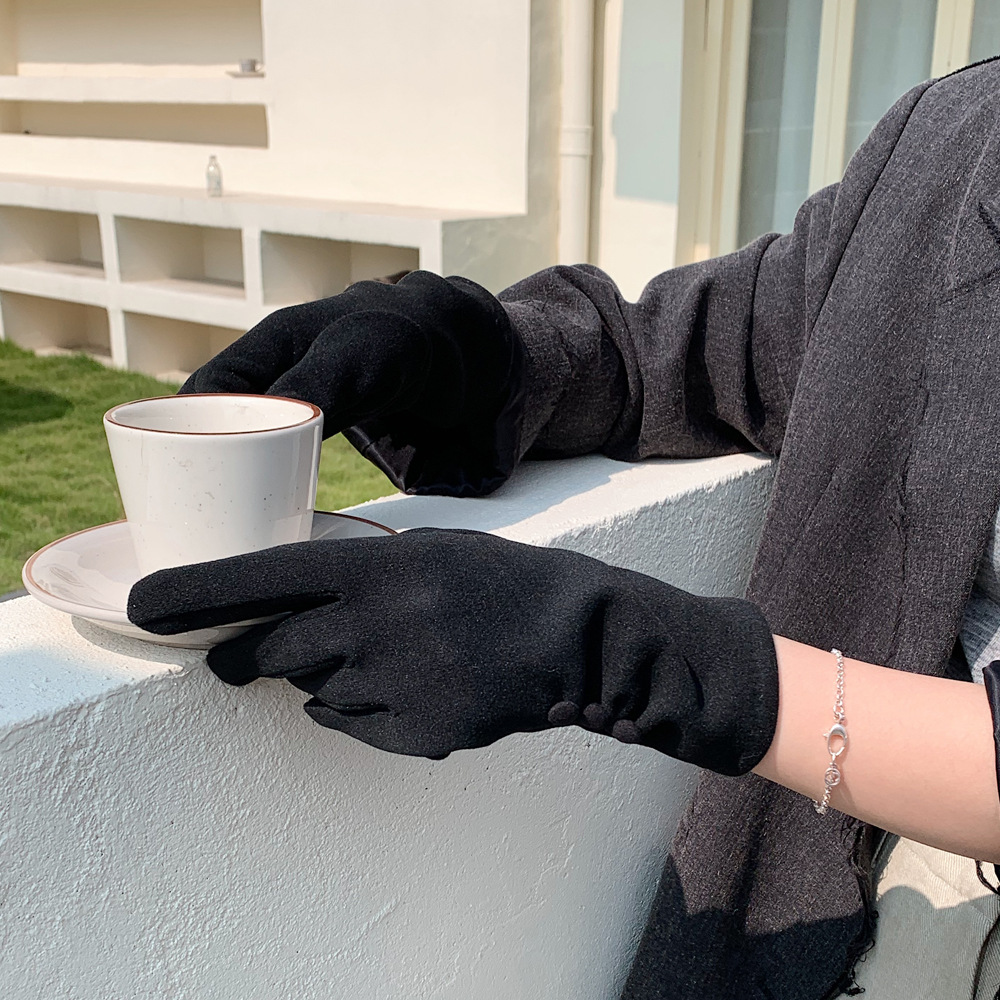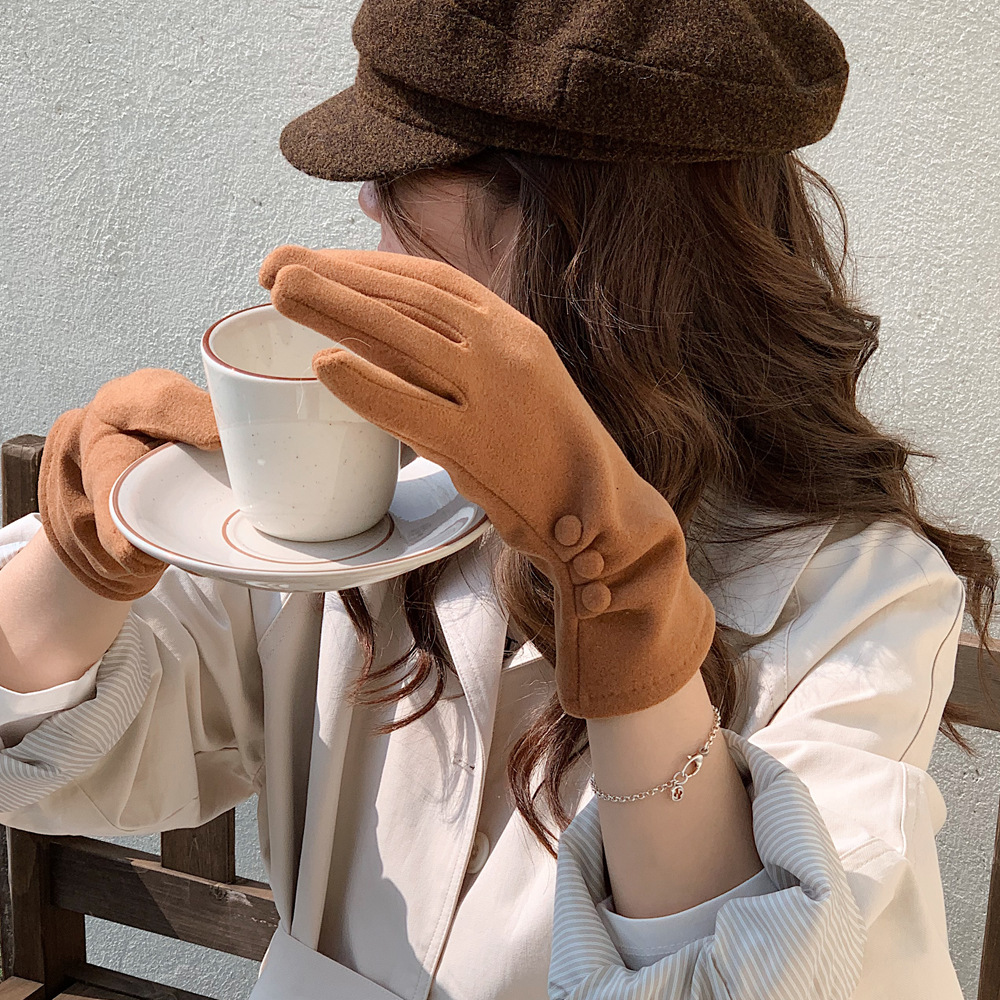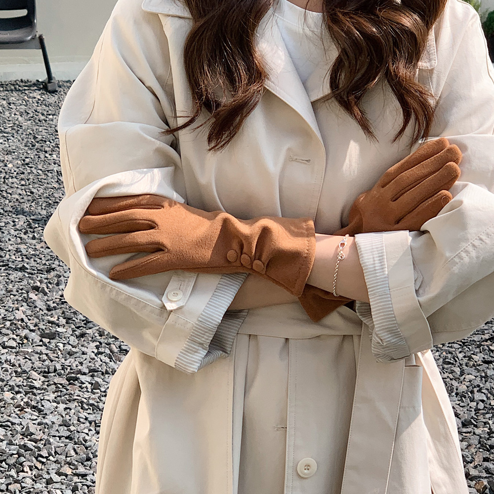 Nuevo botón de color sólido nicho de diseño guantes cálidos de otoño y invierno con guantes de moda al aire libre de dedo largo para ciclismo a prueba de frío
