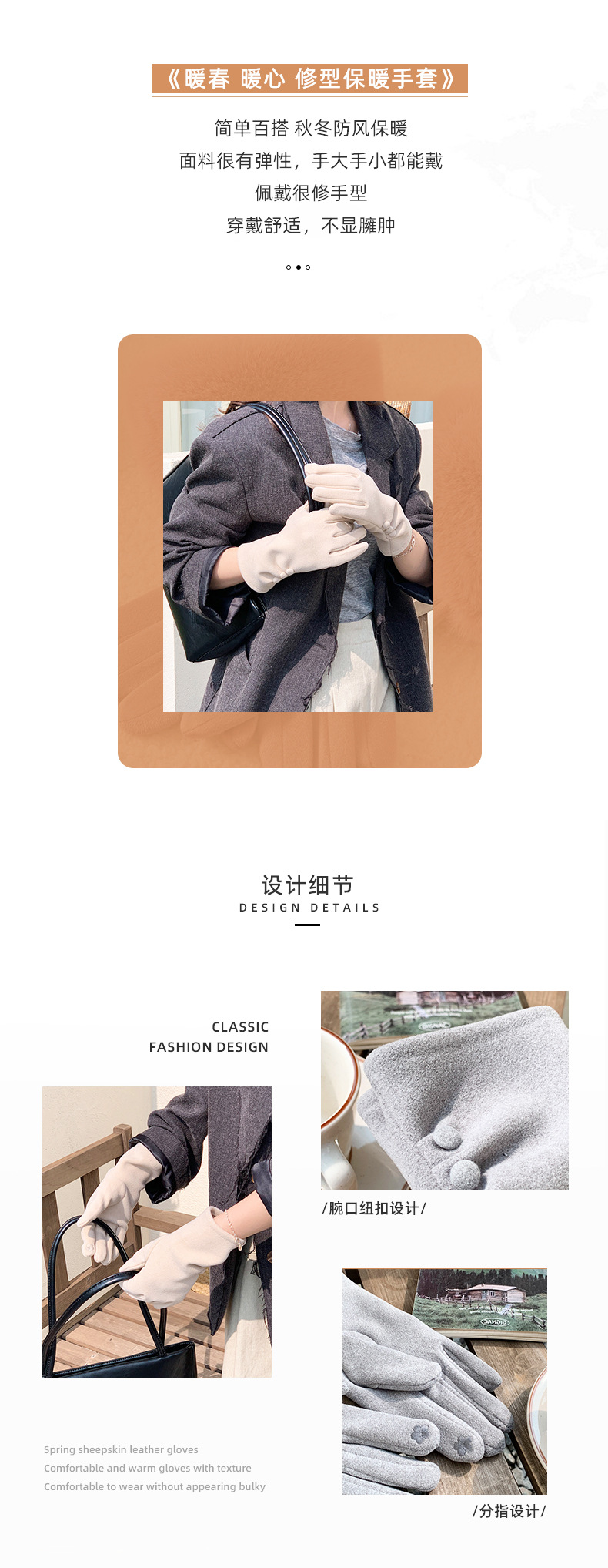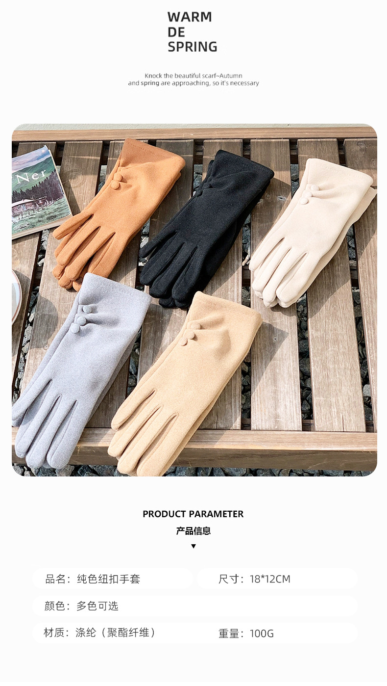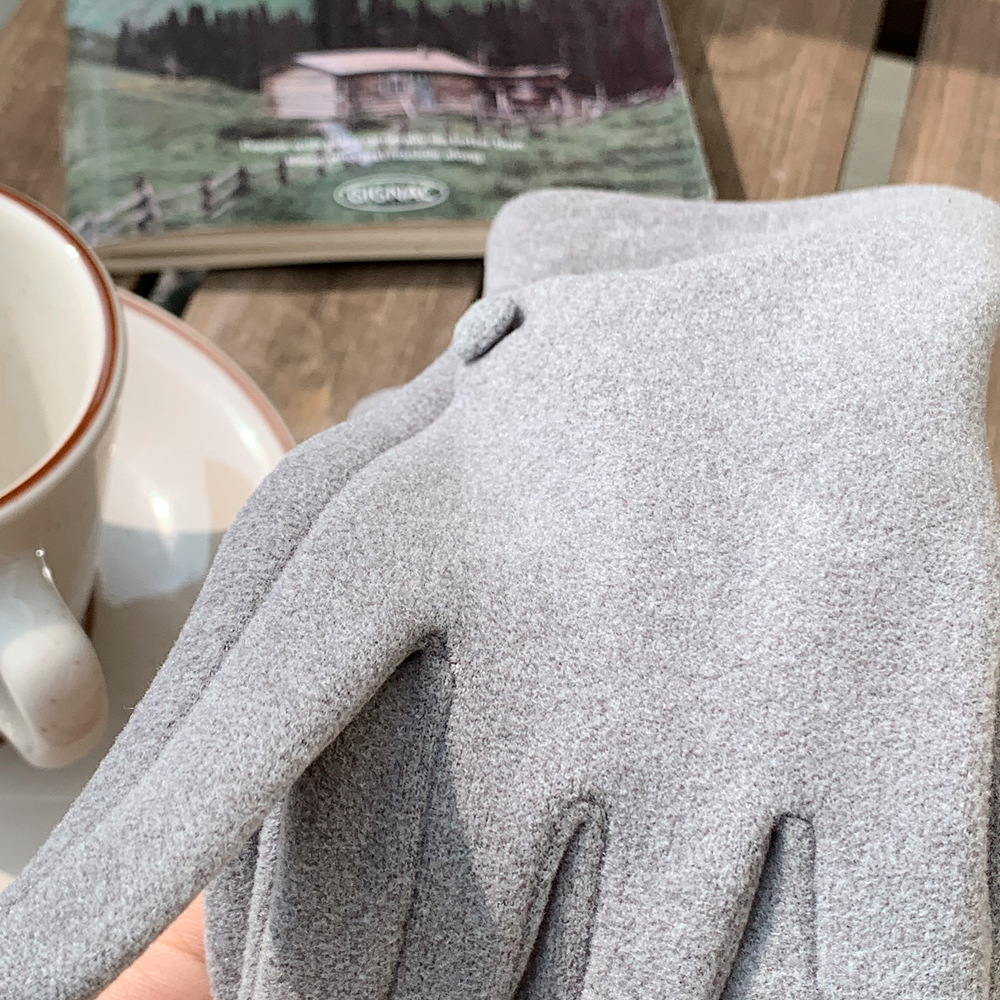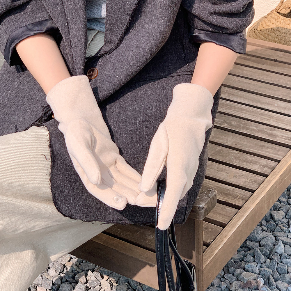 Nuevo botón de color sólido nicho de diseño guantes cálidos de otoño y invierno con guantes de moda al aire libre de dedo largo para ciclismo a prueba de frío
