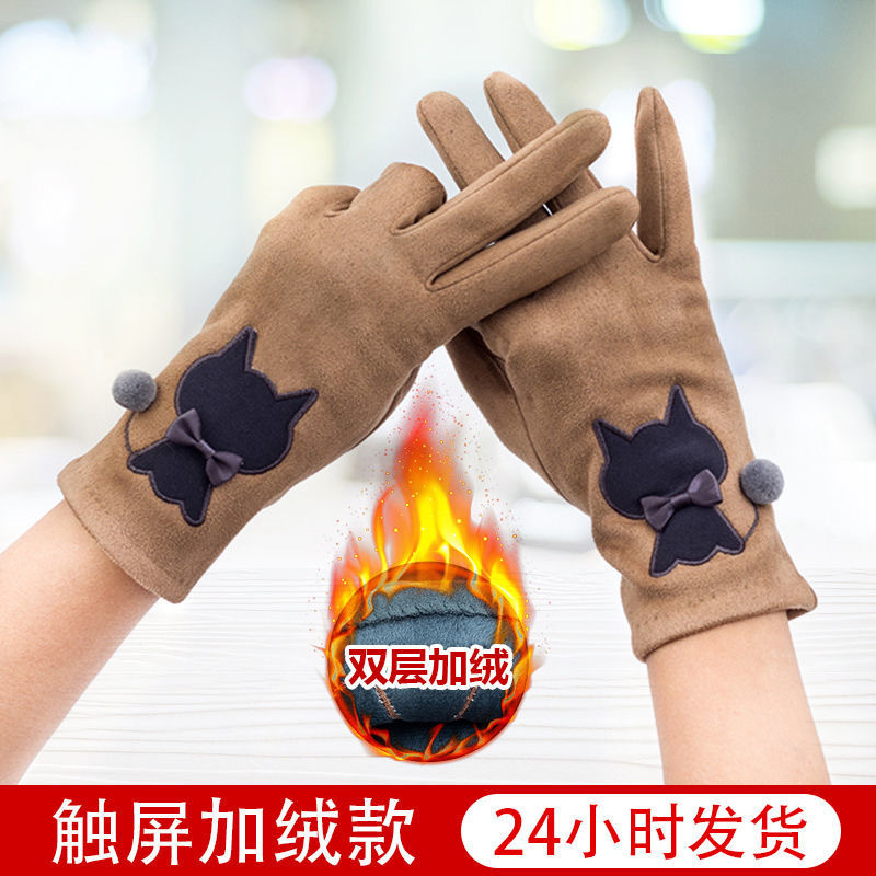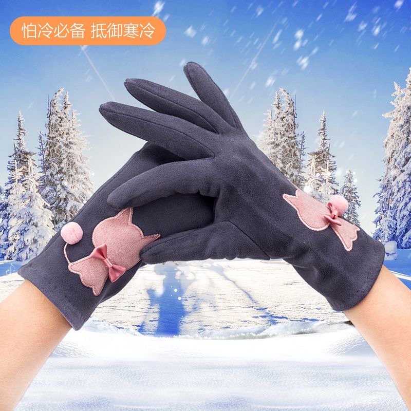 Otoño e Invierno nueva pantalla táctil forrado de lana caliente guantes de esquí lindo estudiante de gamuza guantes de montar al por mayor