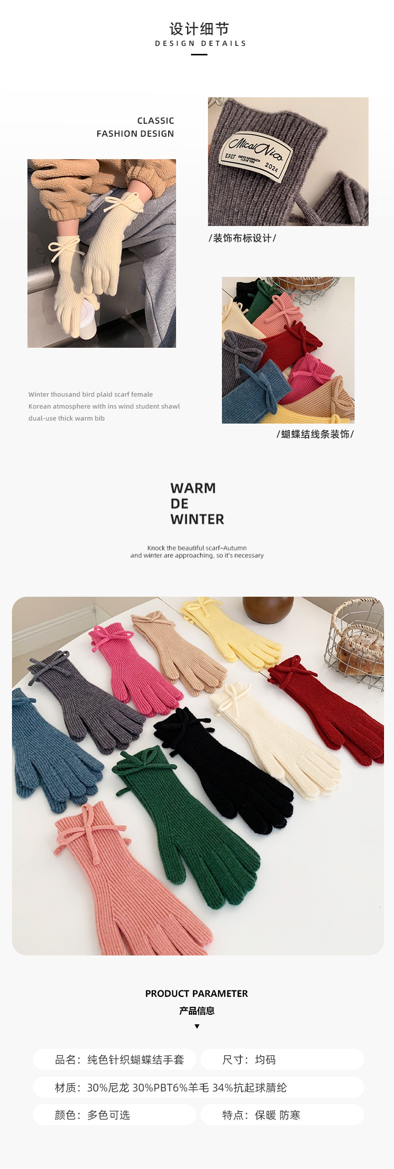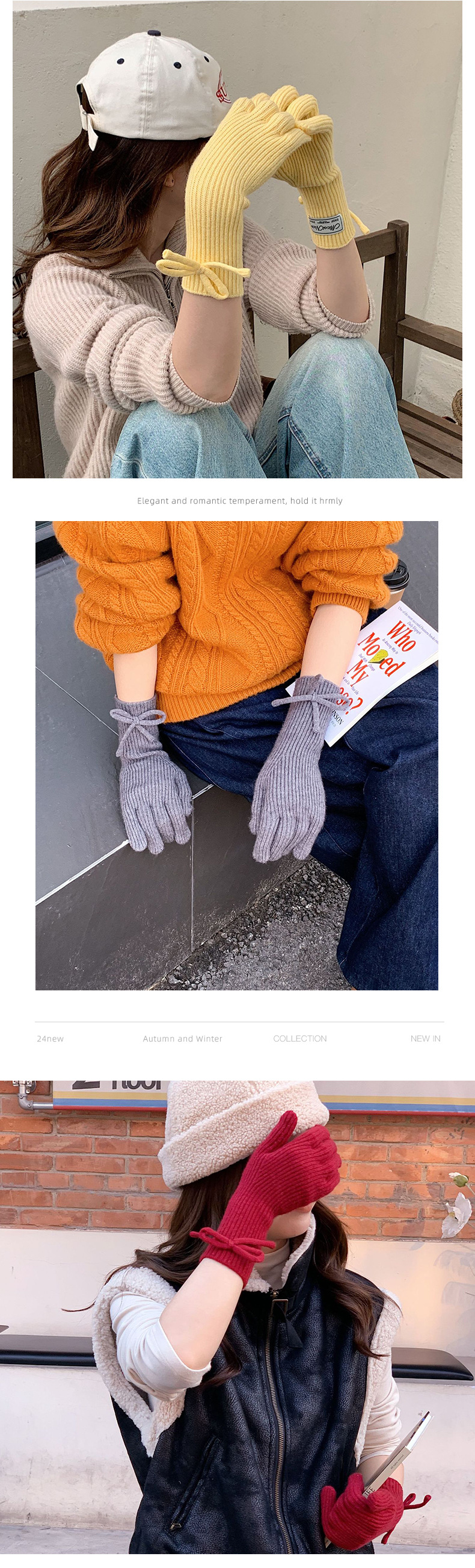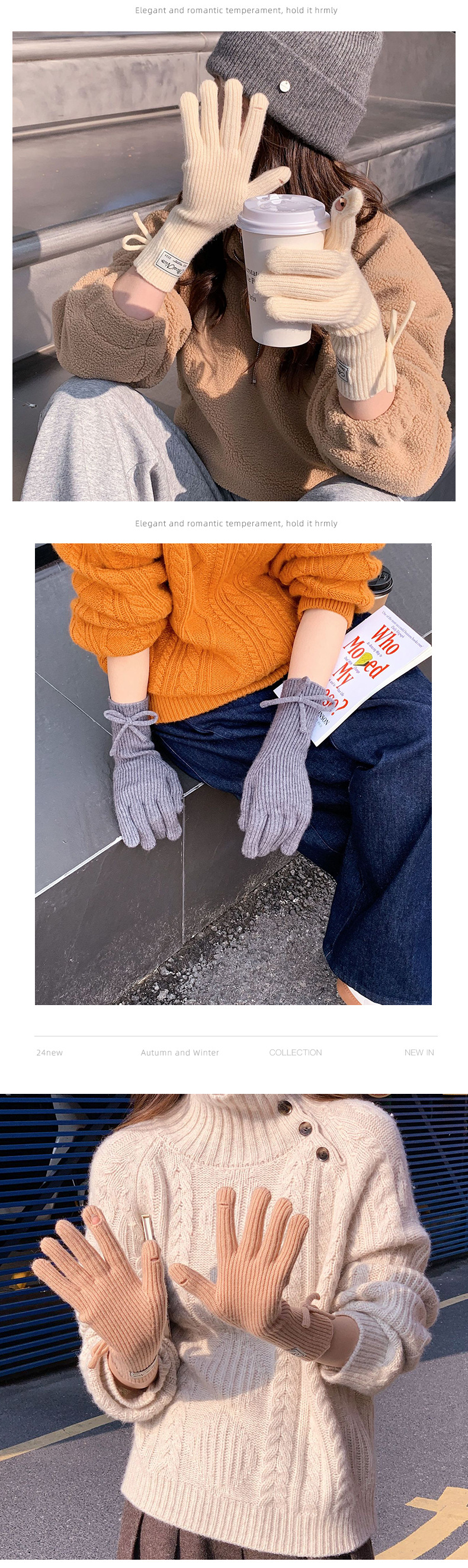 Inswind guantes de tejido de cordilla coreana de cachemira de color sólido de invierno caliente para mujeres arco de pantalla táctil guantes de dedo de moda