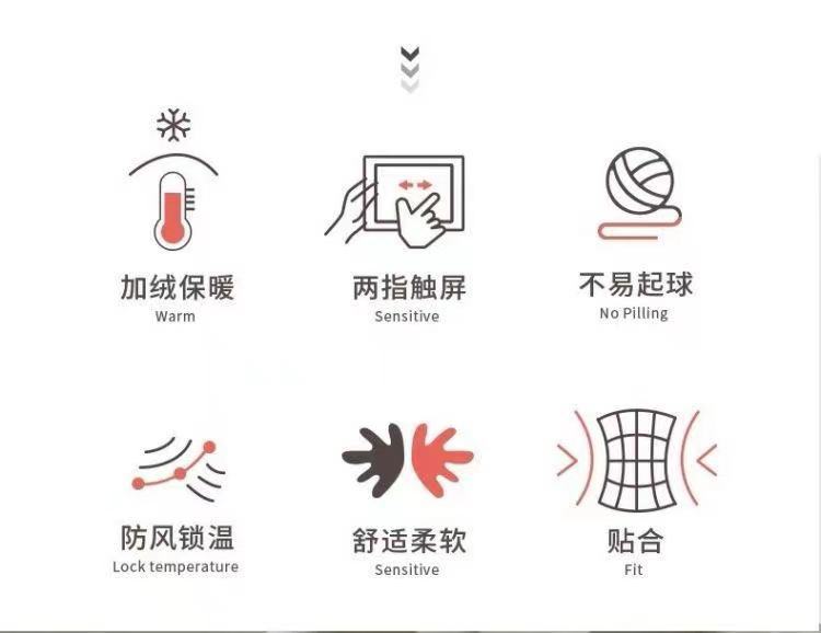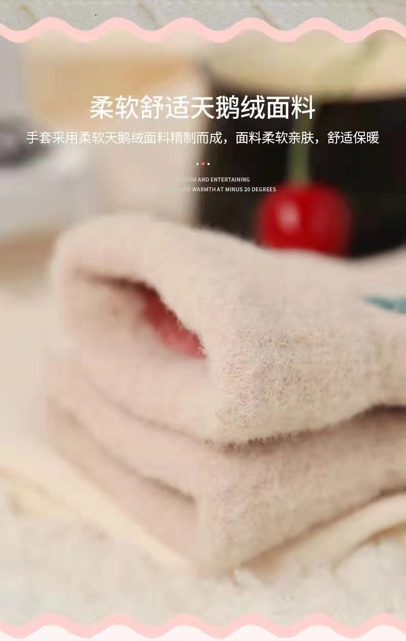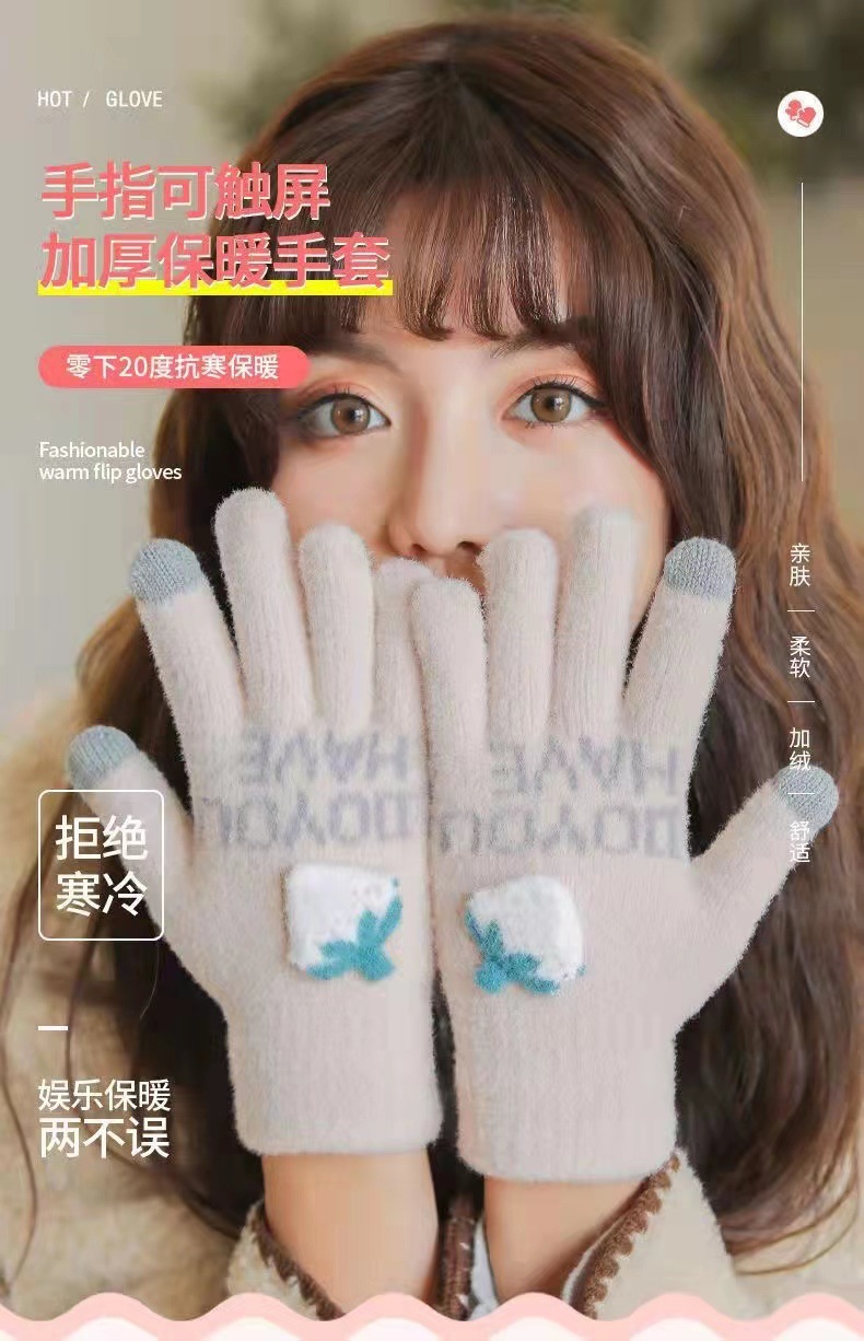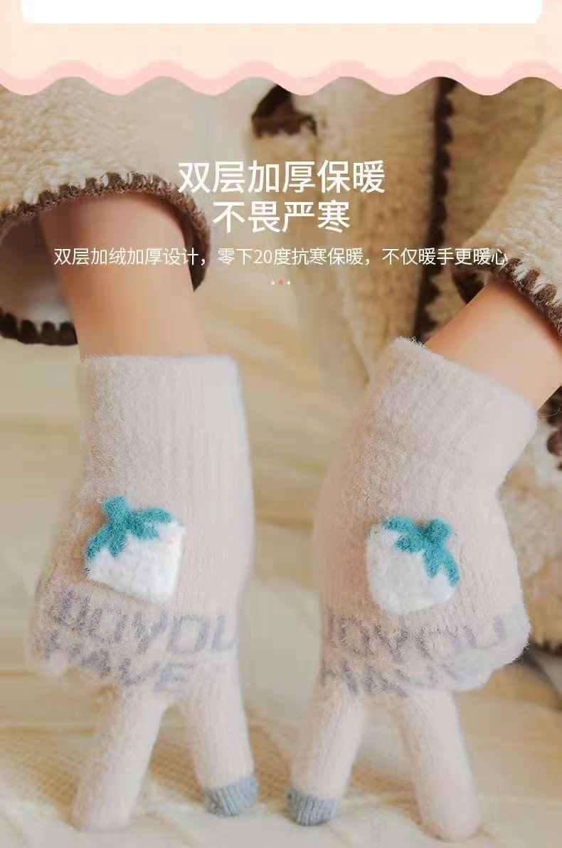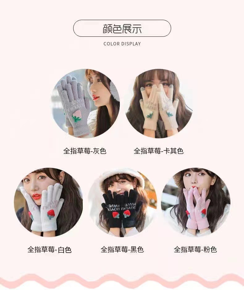 Guantes de punto con dedo, invierno, linda mujer, fresa más terciopelo, calidez, protección contra el frío, ciclismo, estudiantes, a prueba de viento, pantalla táctil