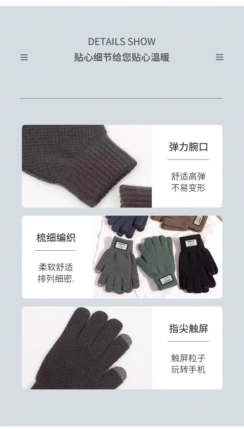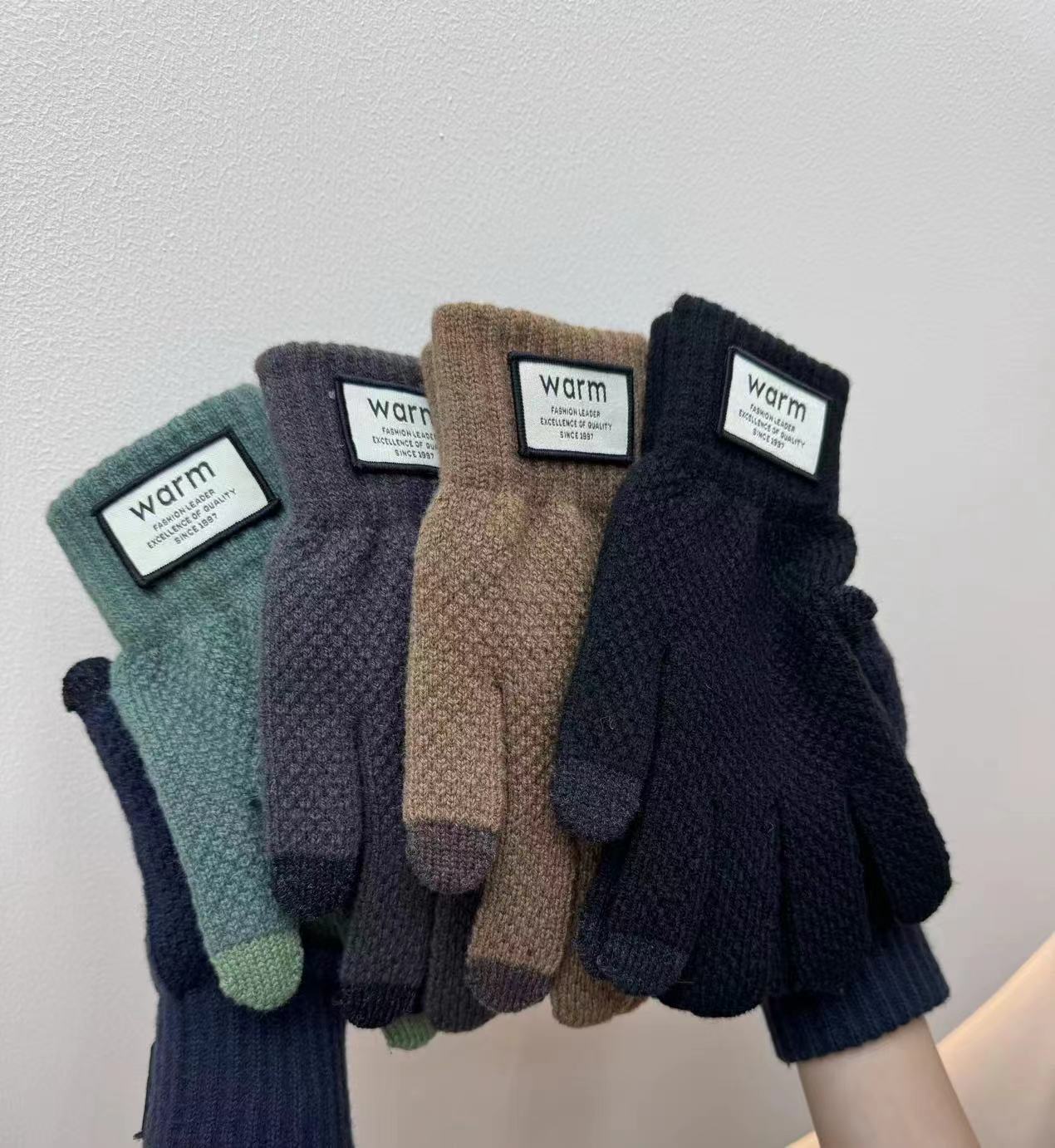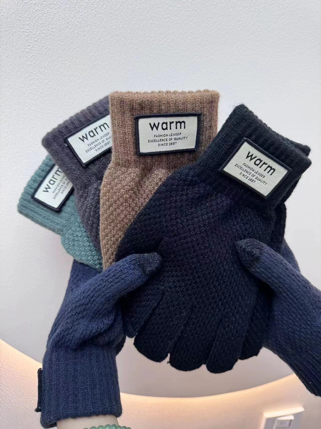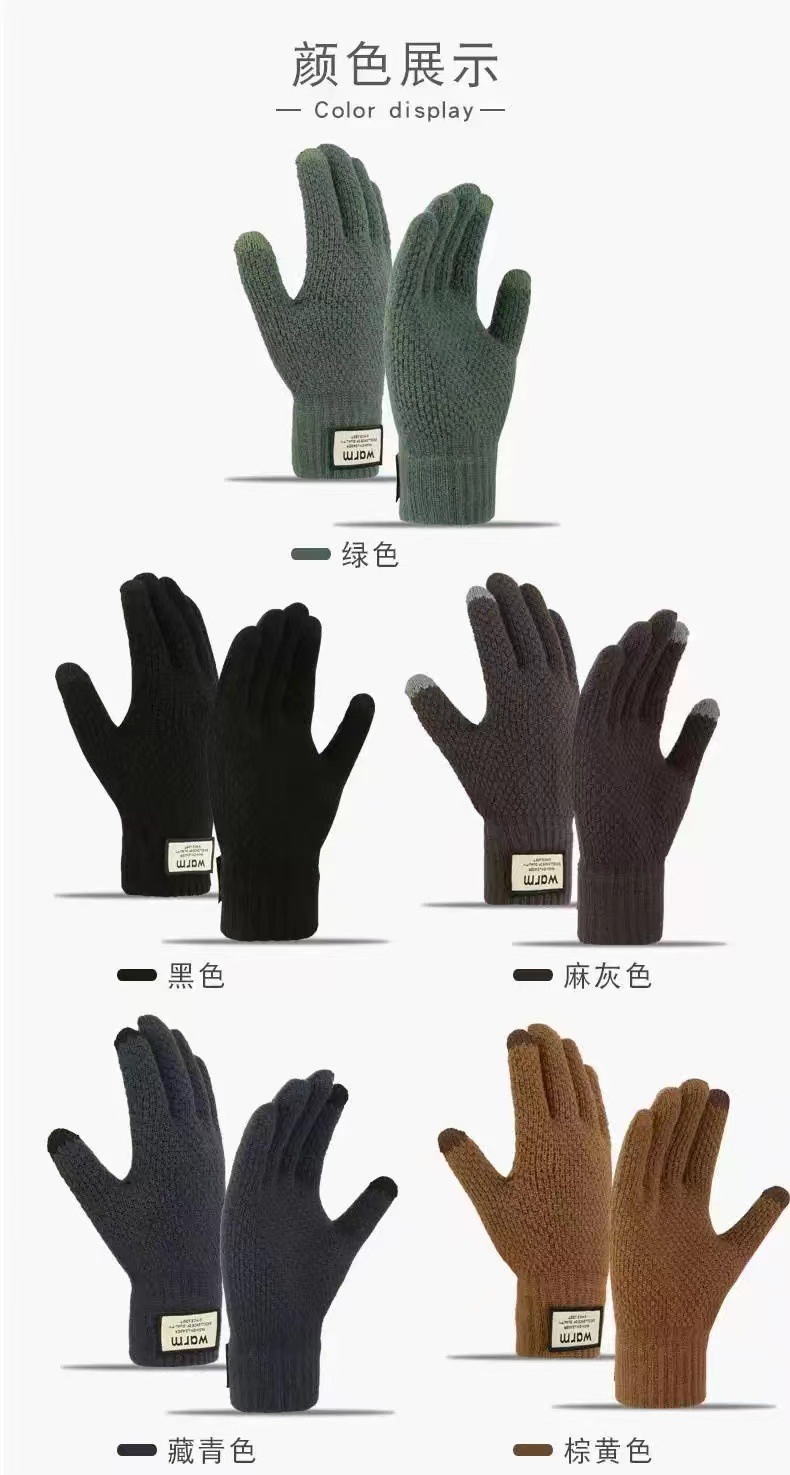 Guantes cálidos de invierno más vello grueso pantalla táctil a prueba de viento a prueba de frío ciclismo lana tejido de color sólido etiquetado guantes de hombre