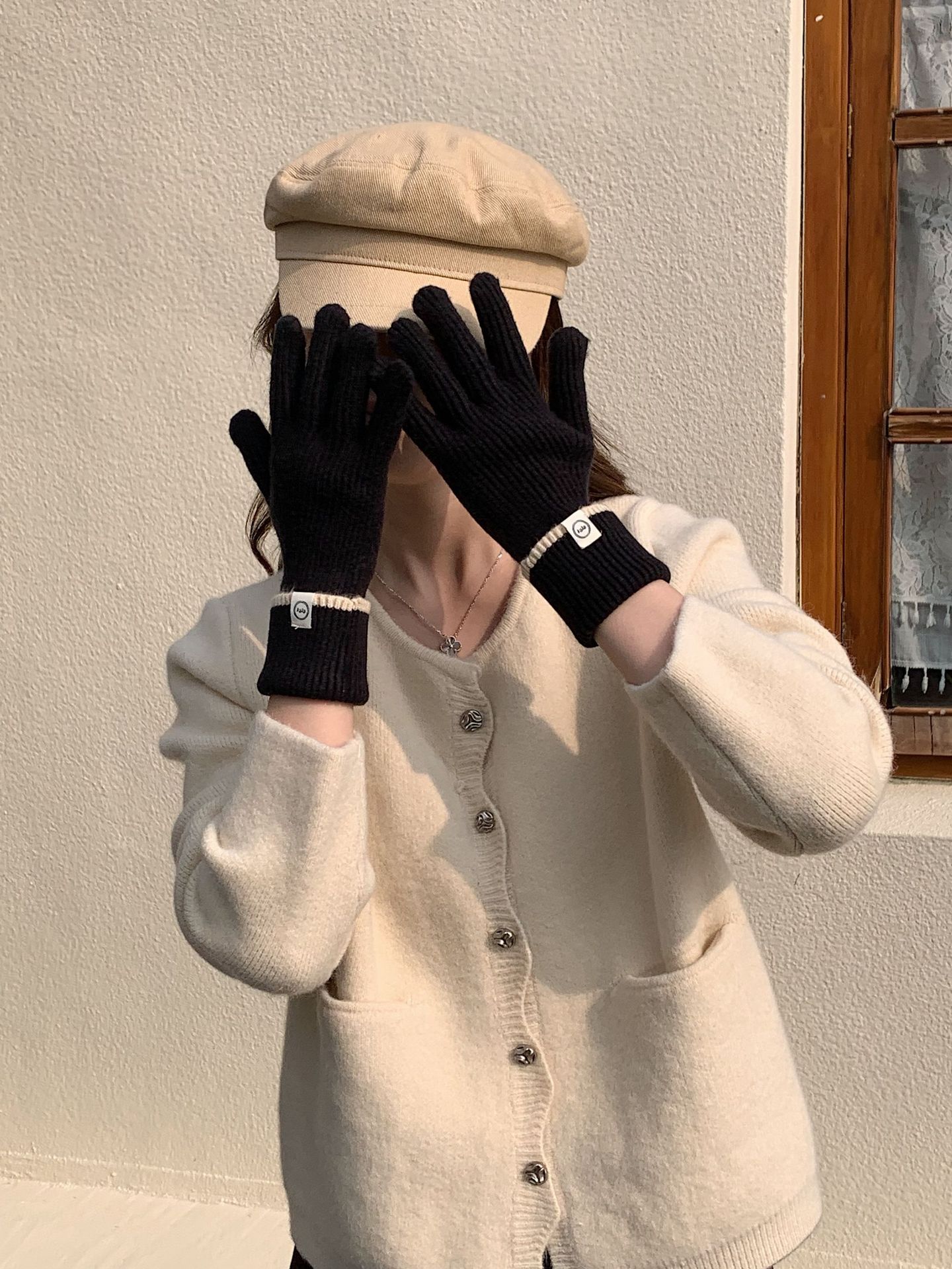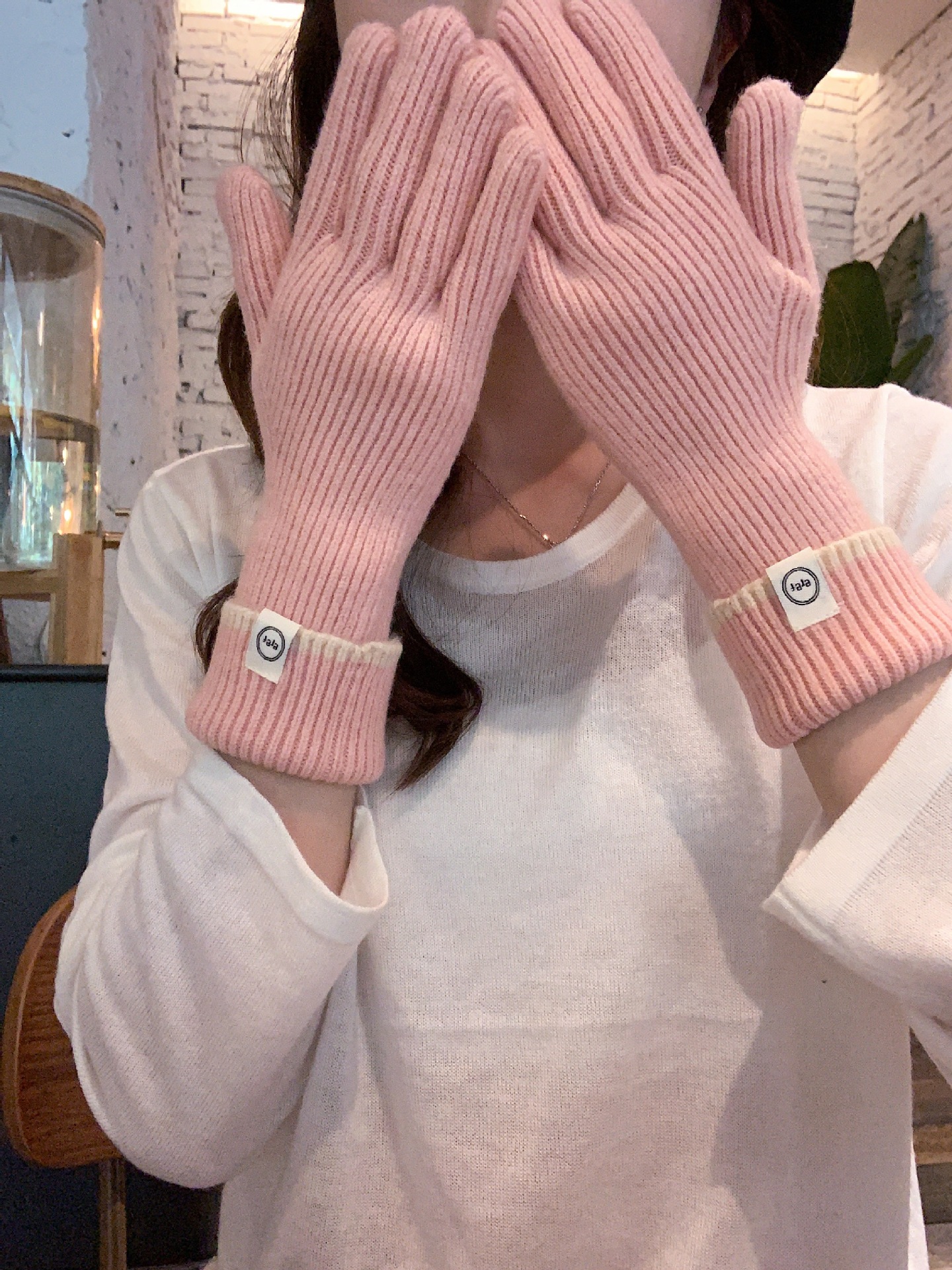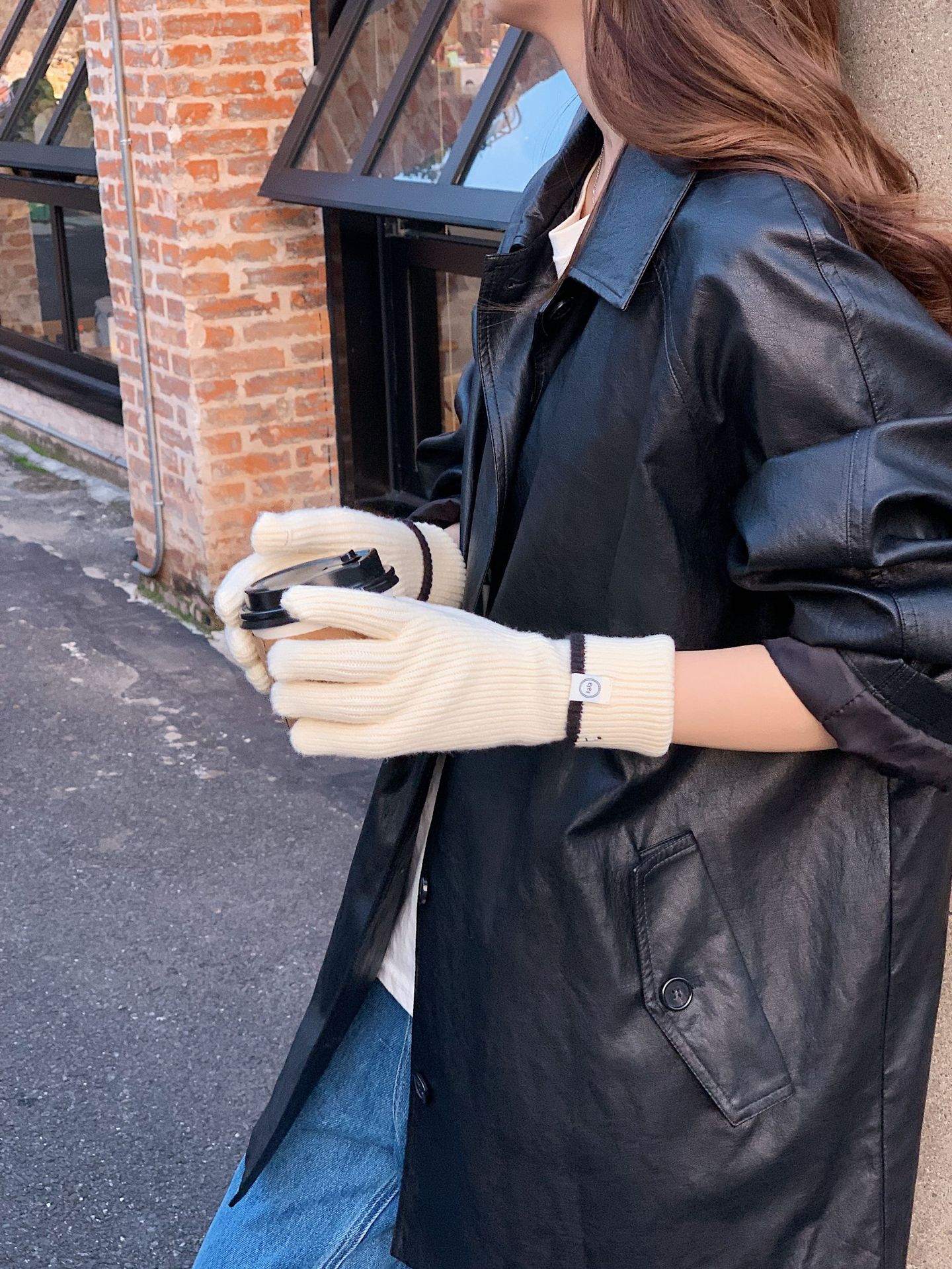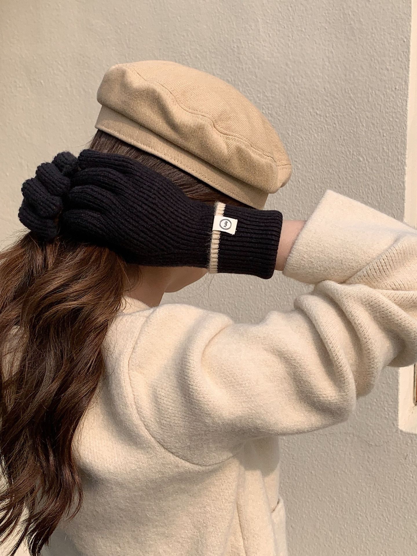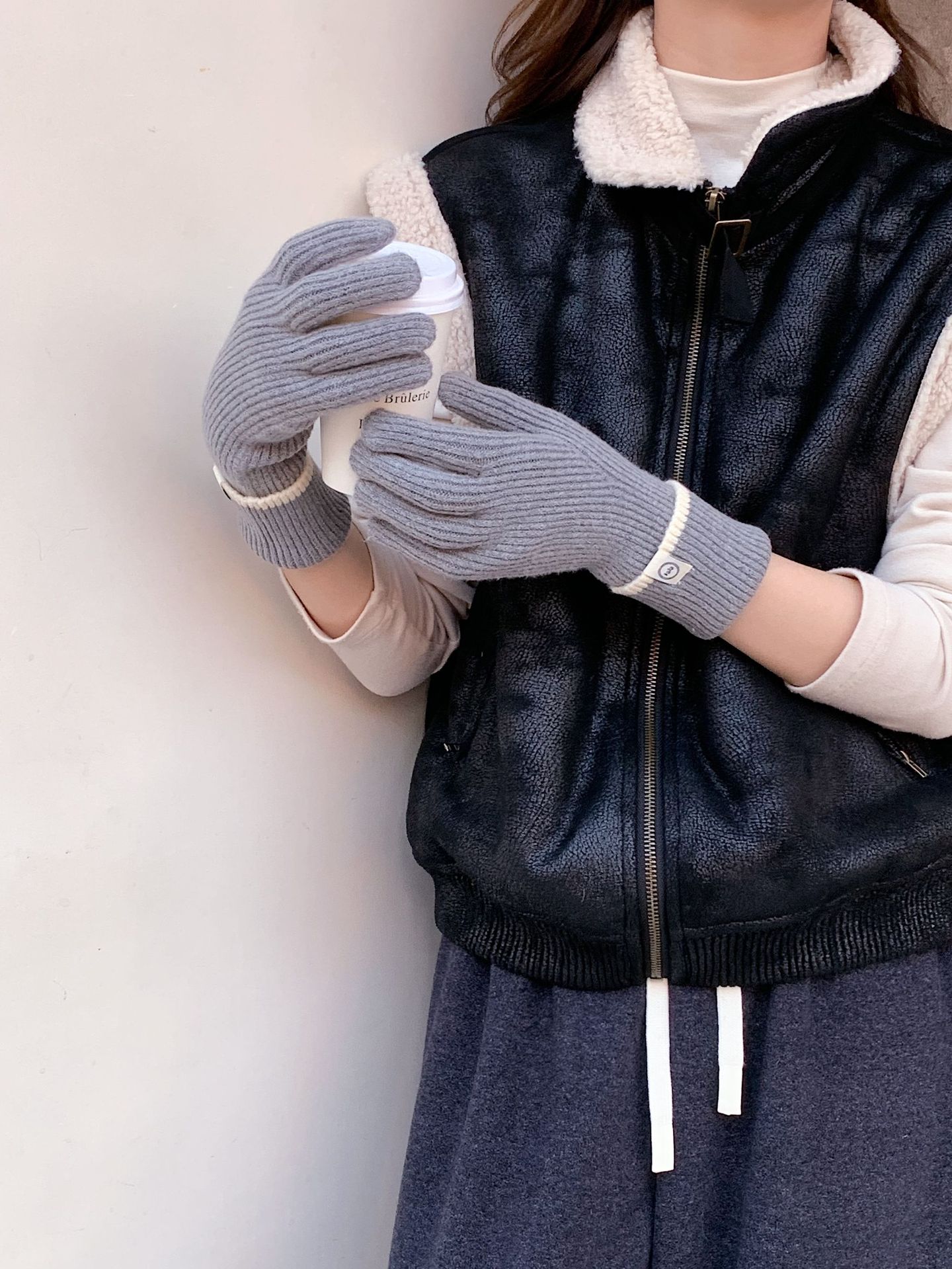 Nuevo guante coreano de moda etiquetado de lana panda guante de punto de motocicleta de otoño y invierno guante de muñeca caliente